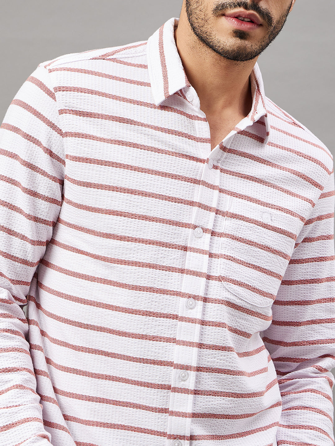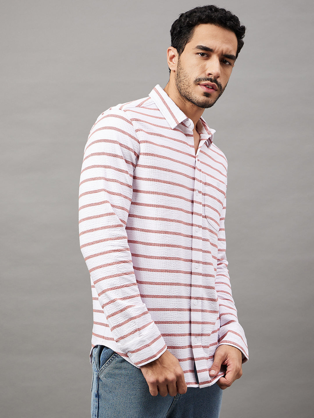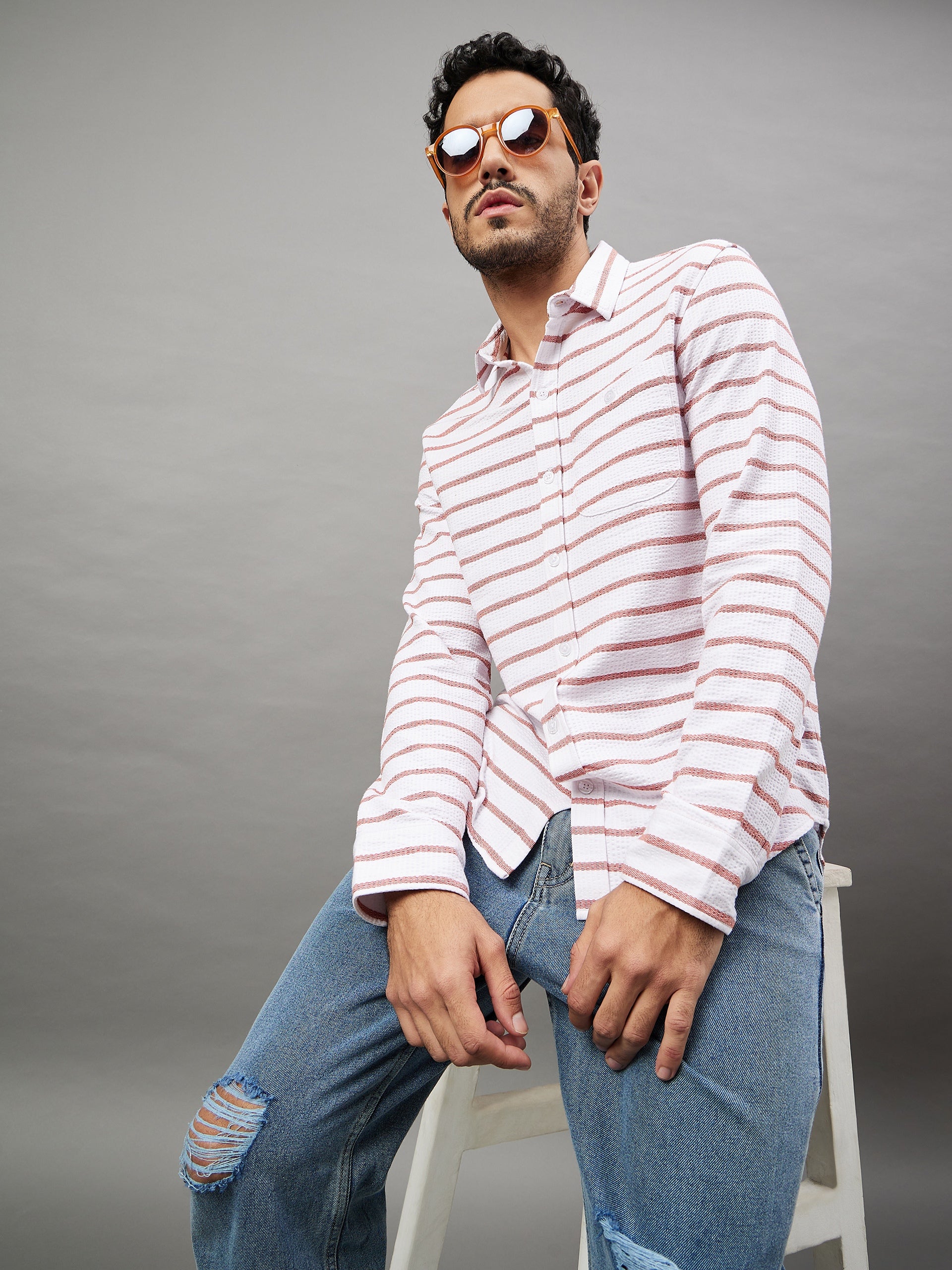 Club York Men White Striped Full Sleeve Shirt 8943