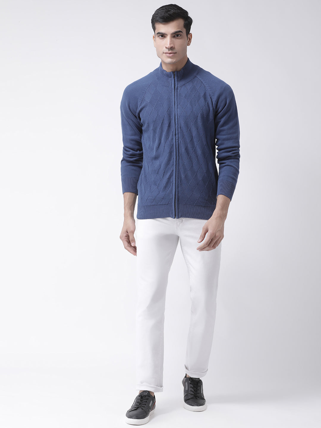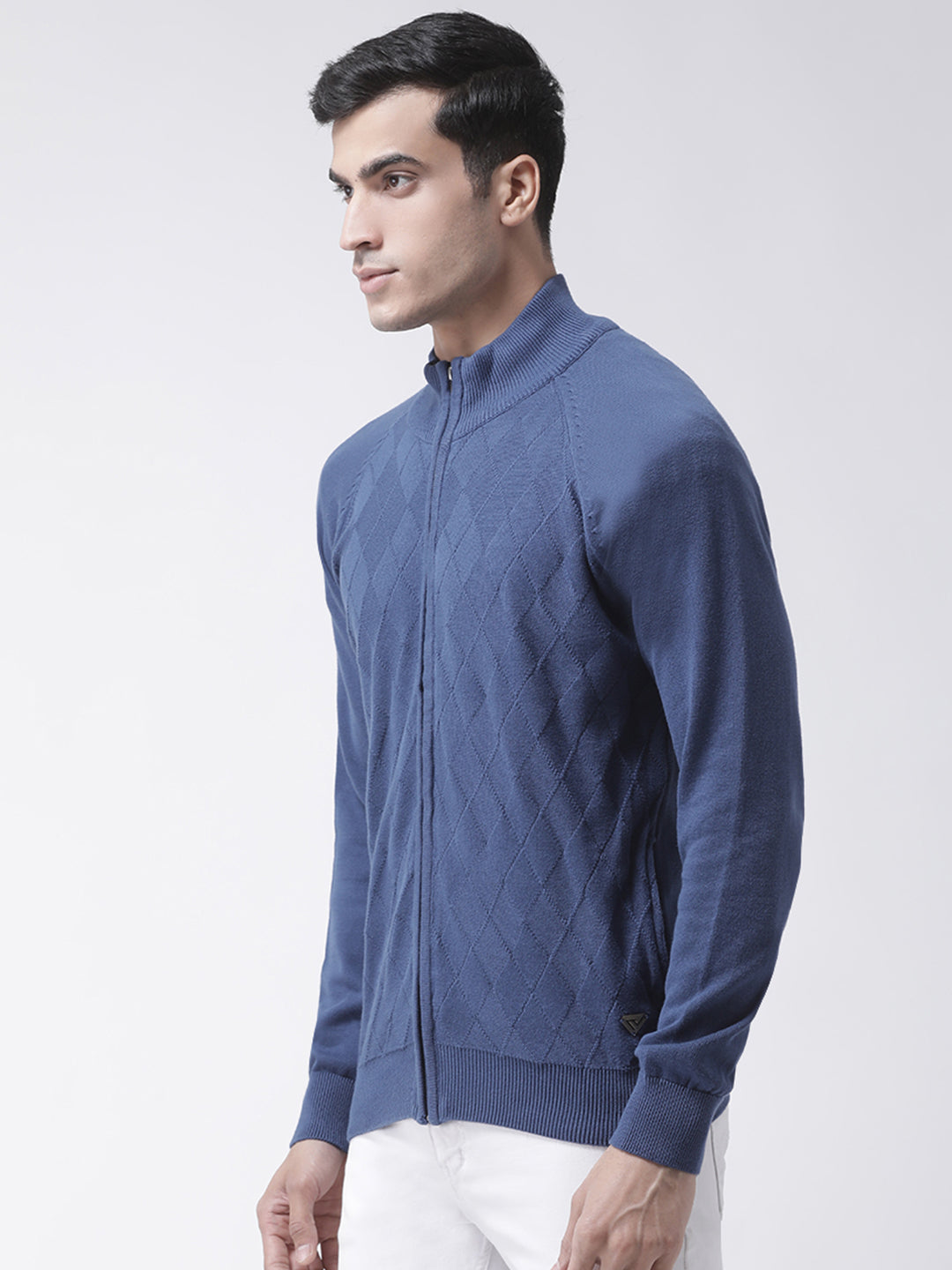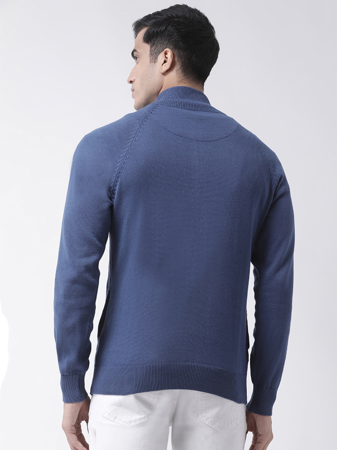 Club York Mens Blue Raglan Sleeve Self Design High Neck With Front Full Zipper Sweater 4526