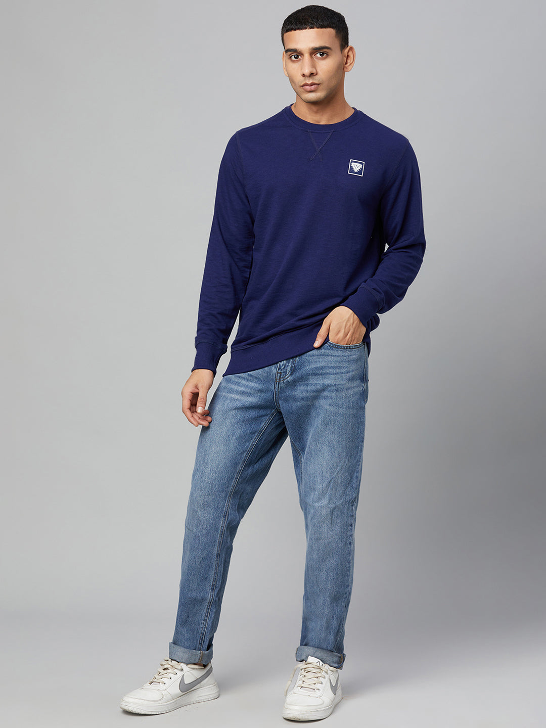 Navy Solid Full Sleeve Round Neck Sweatshirt 1269