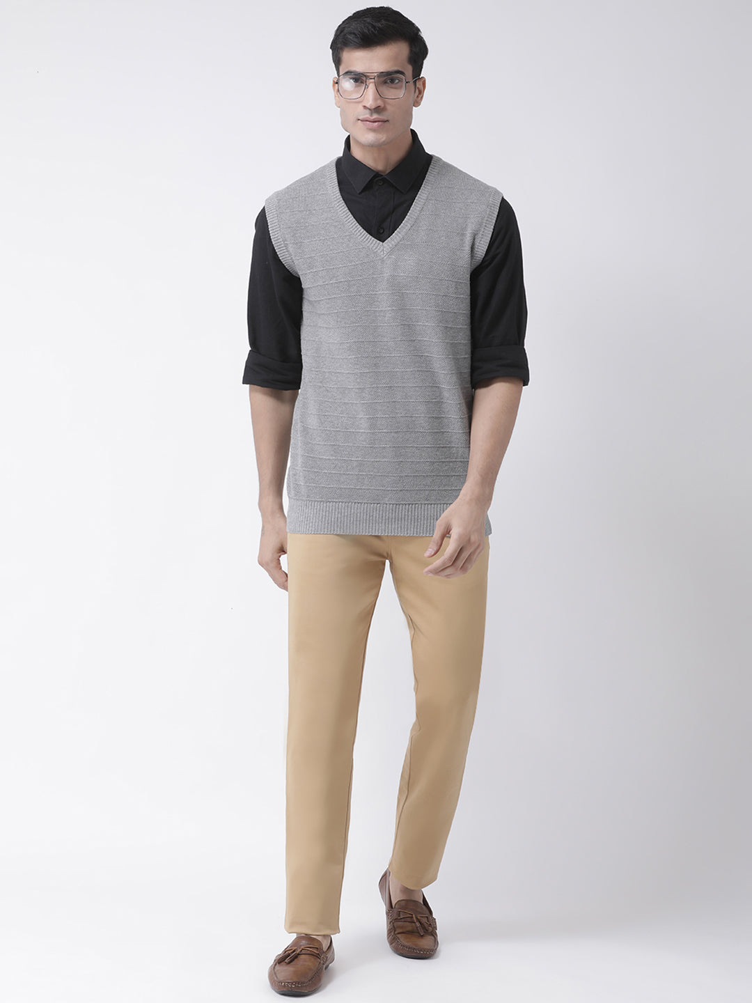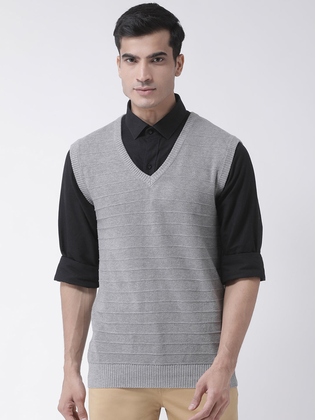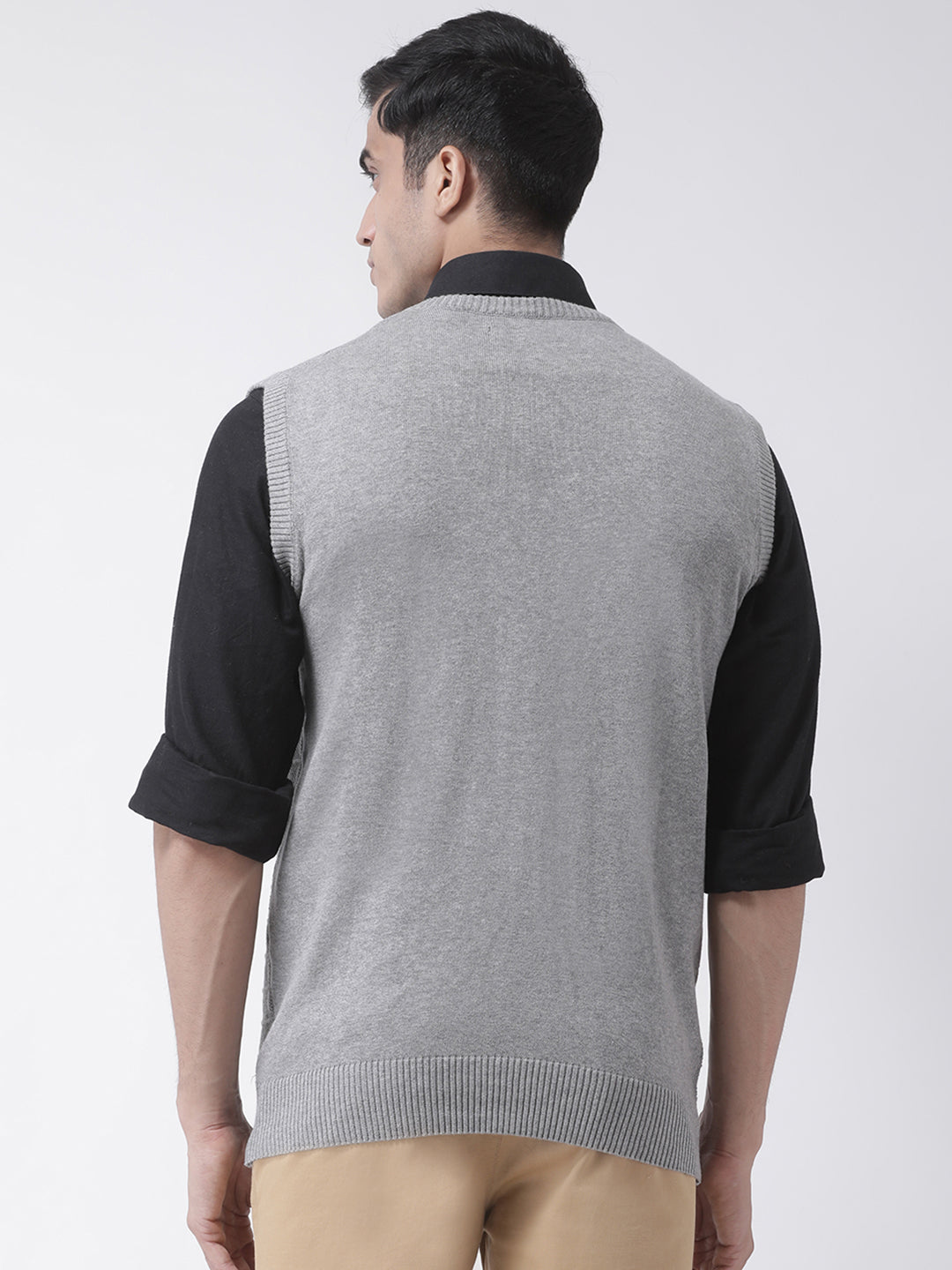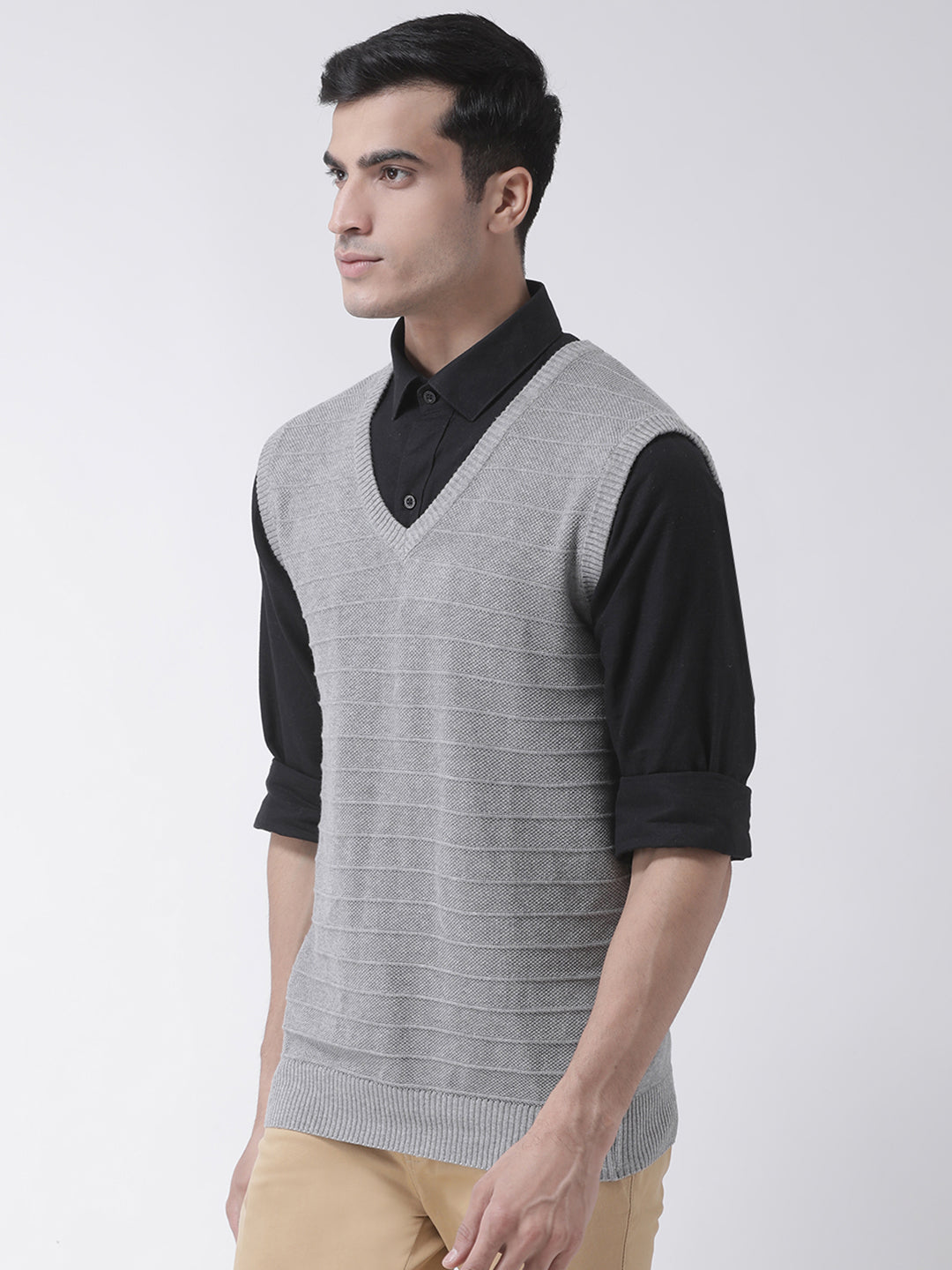 Club York Mens Grey Sleeveless Self Design V Neck Sweater 4420