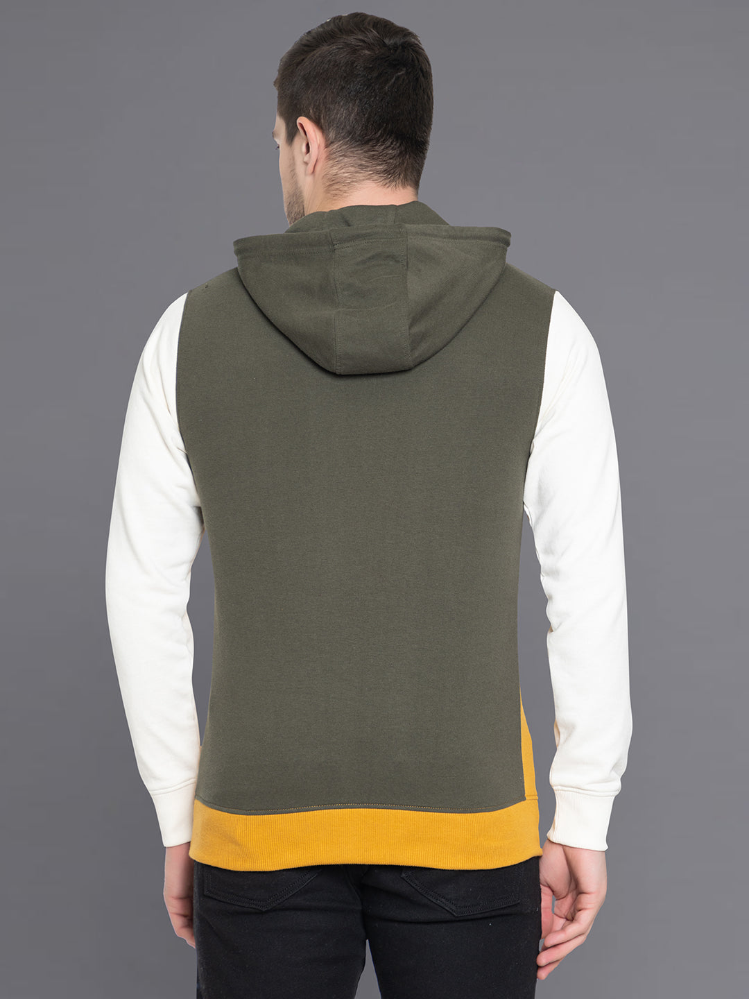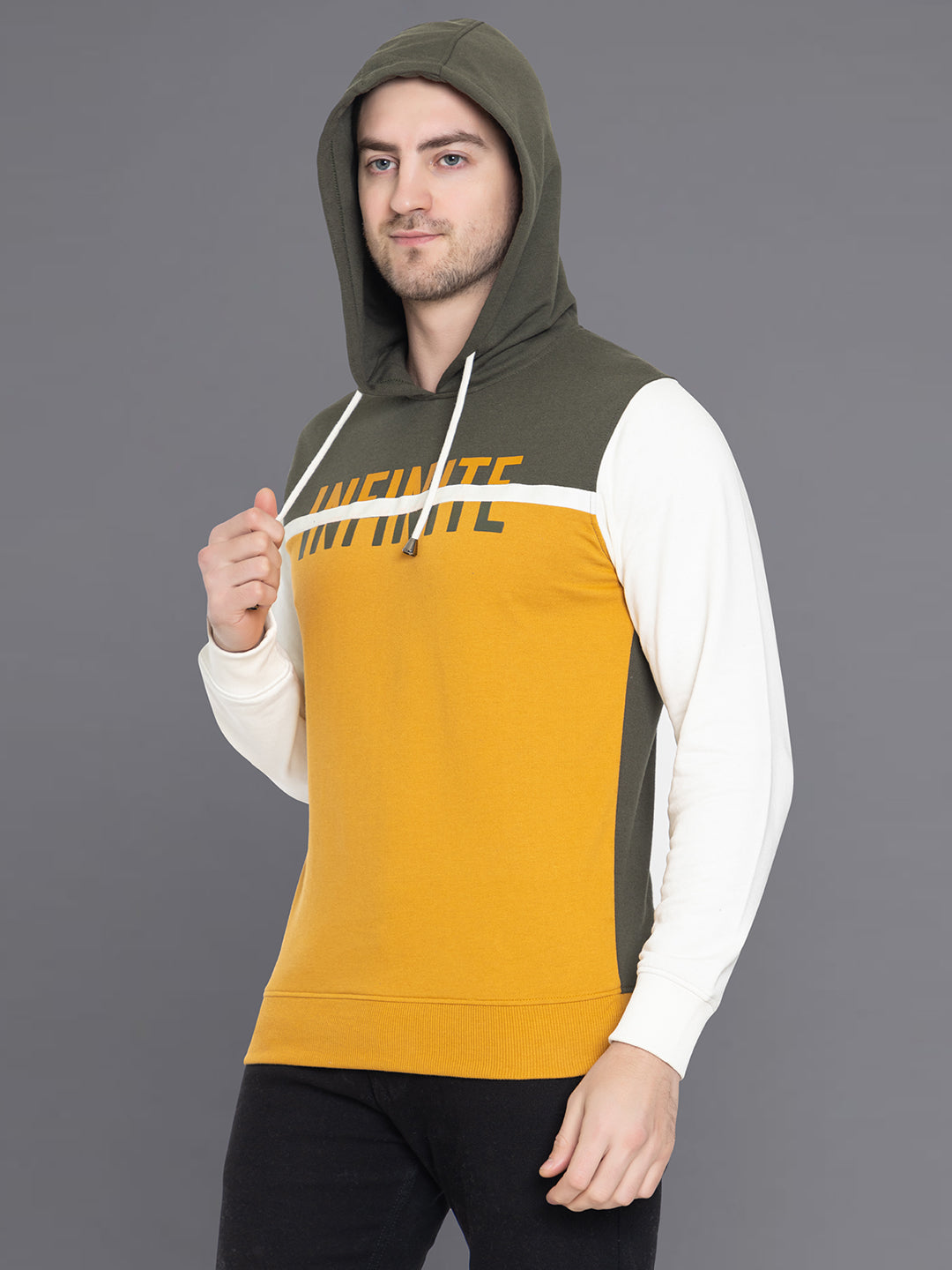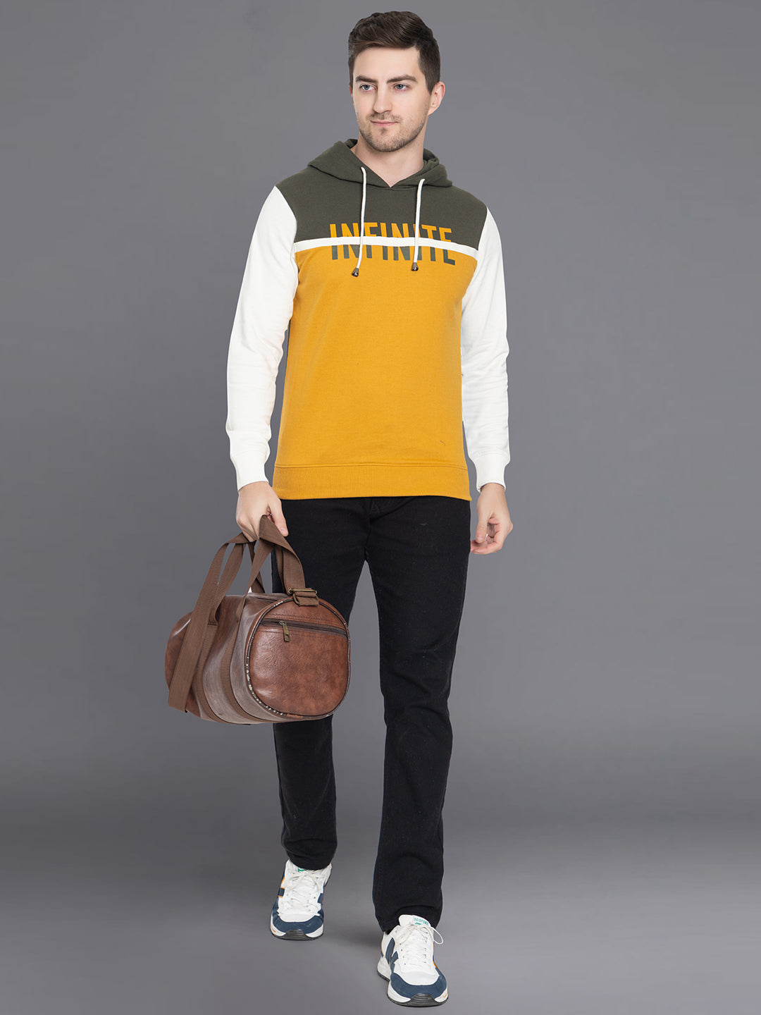 Club York Mens Mustard Full Sleeve Colorblocked Hooded Sweatshirt 2191