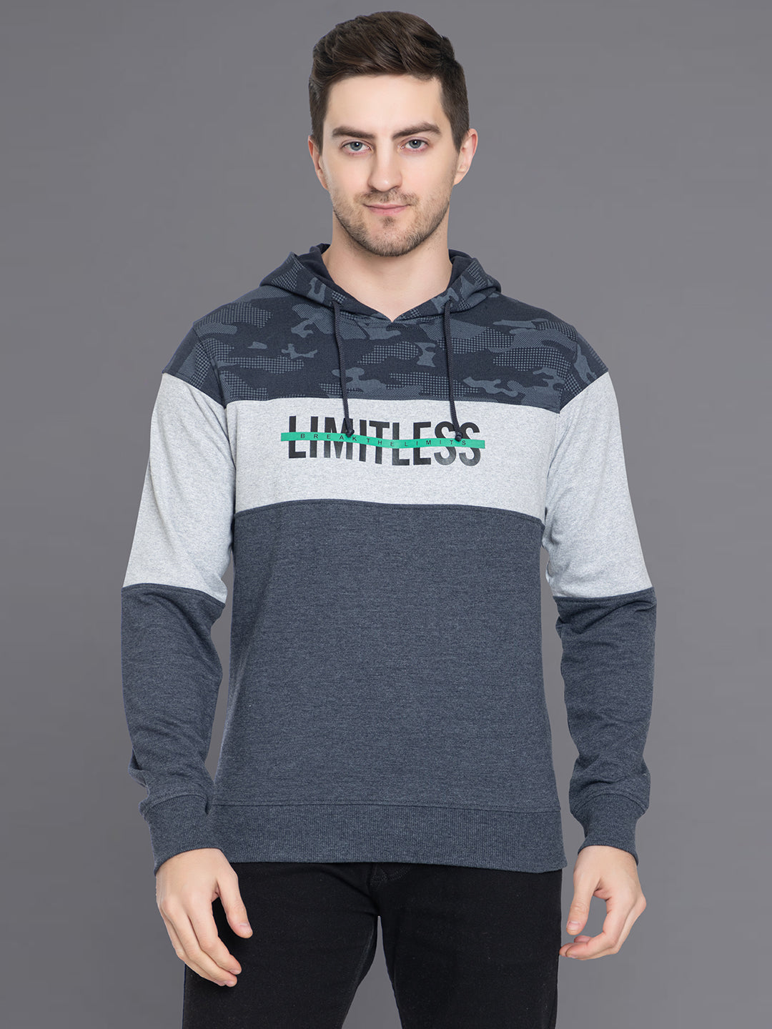 Royal Blue Printed Full Sleeve Hooded Sweatshirt 2463