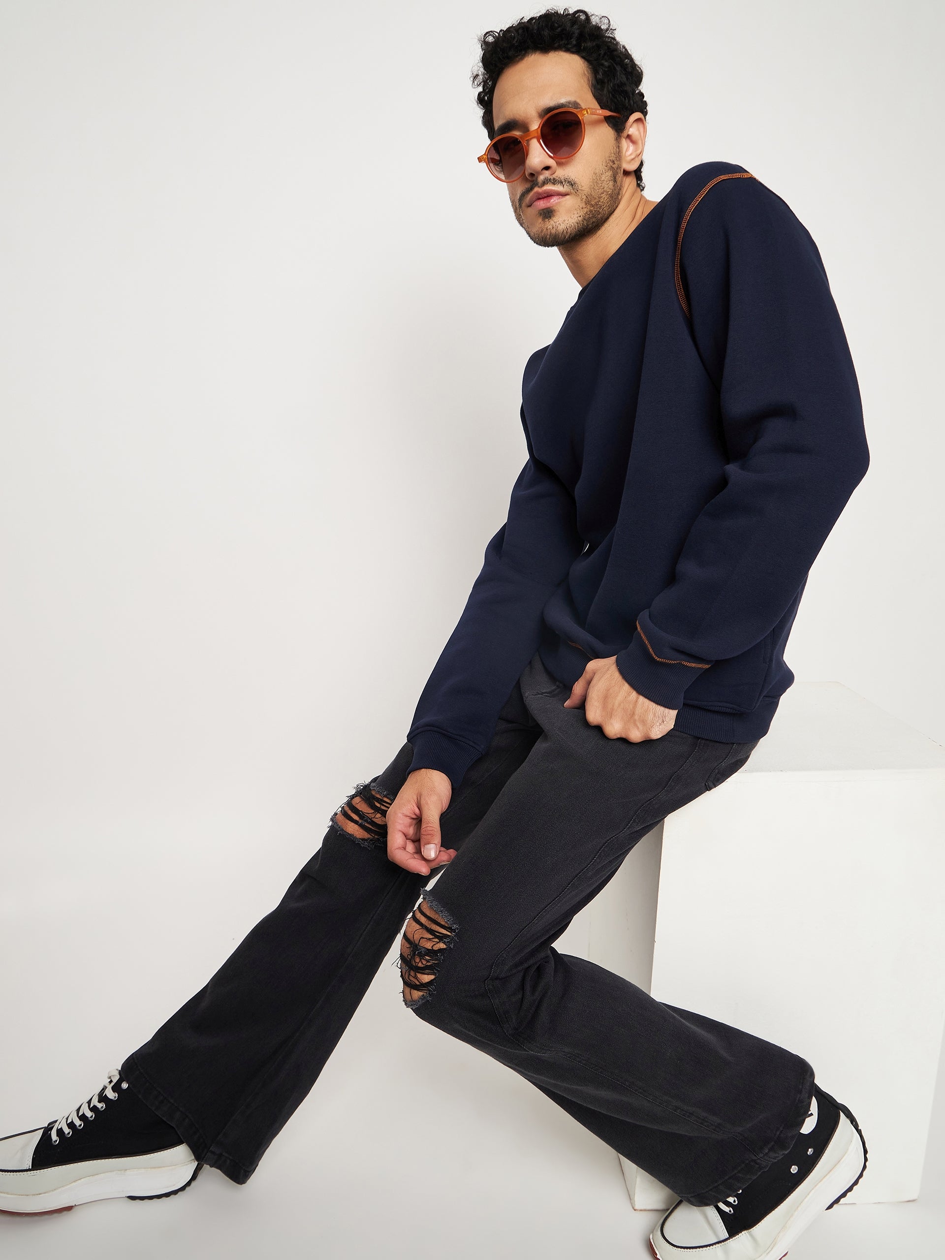 Navy Solid Full Sleeve Round Neck Sweatshirt 1269