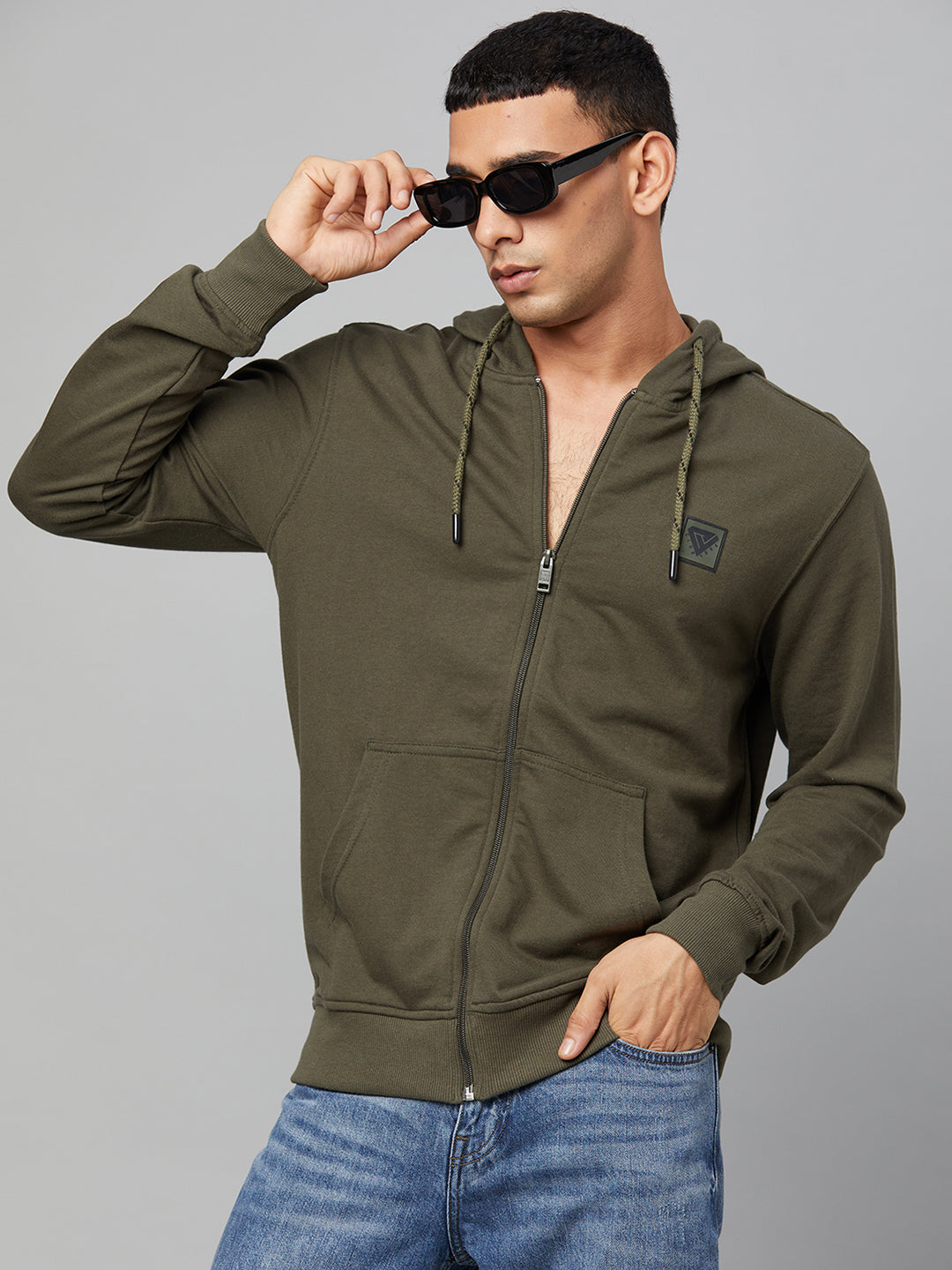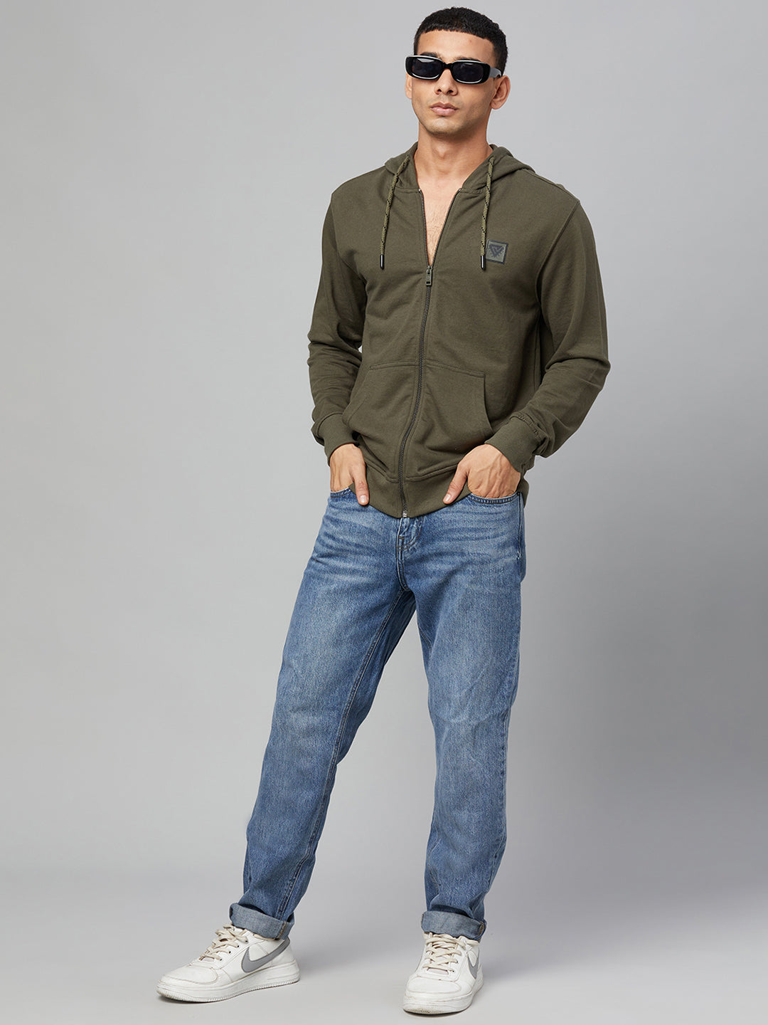 Olive Green Solid Full Sleeve Mock Neck Sweatshirt 3388