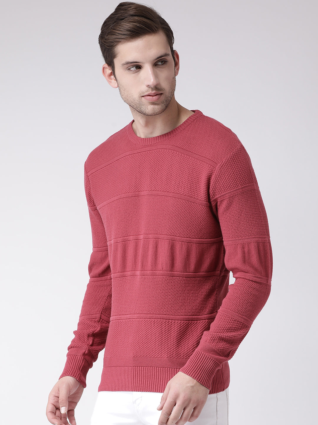 Club York Mens Pink Full Sleeve Self Design Round Neck Sweater 4860