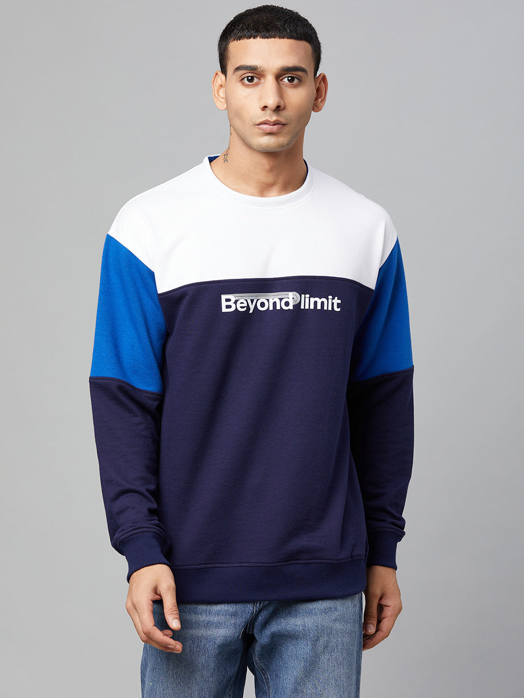 White Navy Blue Striped Polo Neck Sweatshirt 8675
