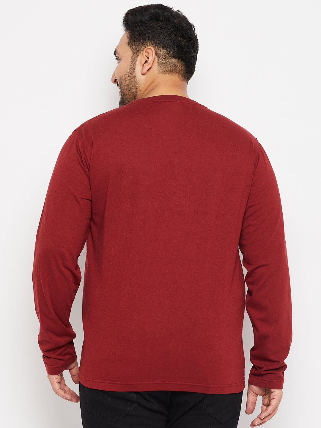 Wine Solid V Neck Plus Size T-Shirt 8807
