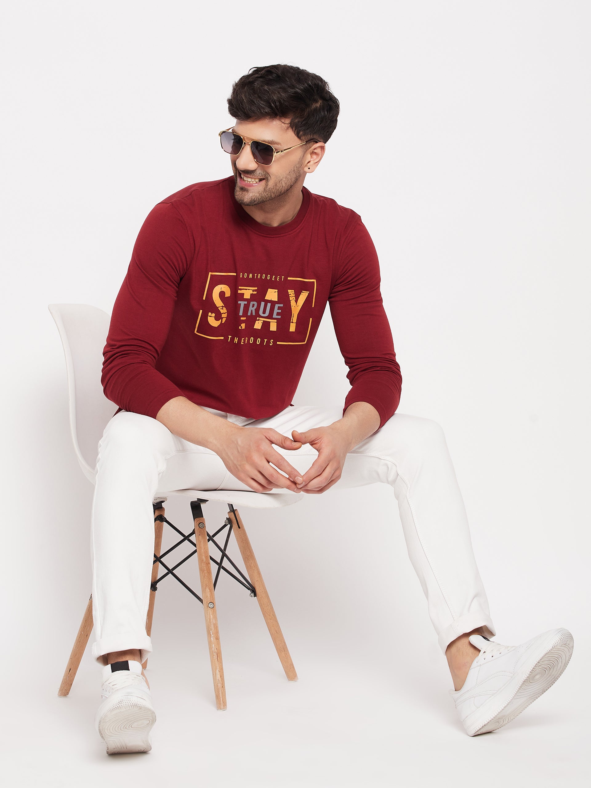 Club York Typography Printed Long Sleeves Cotton T Shirt 9075