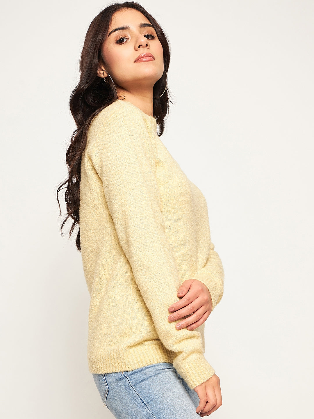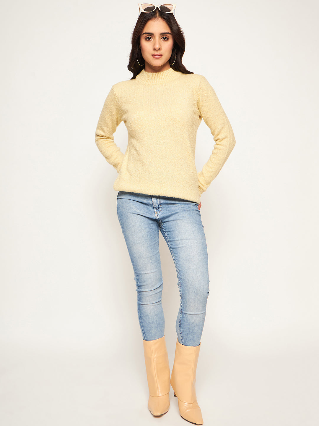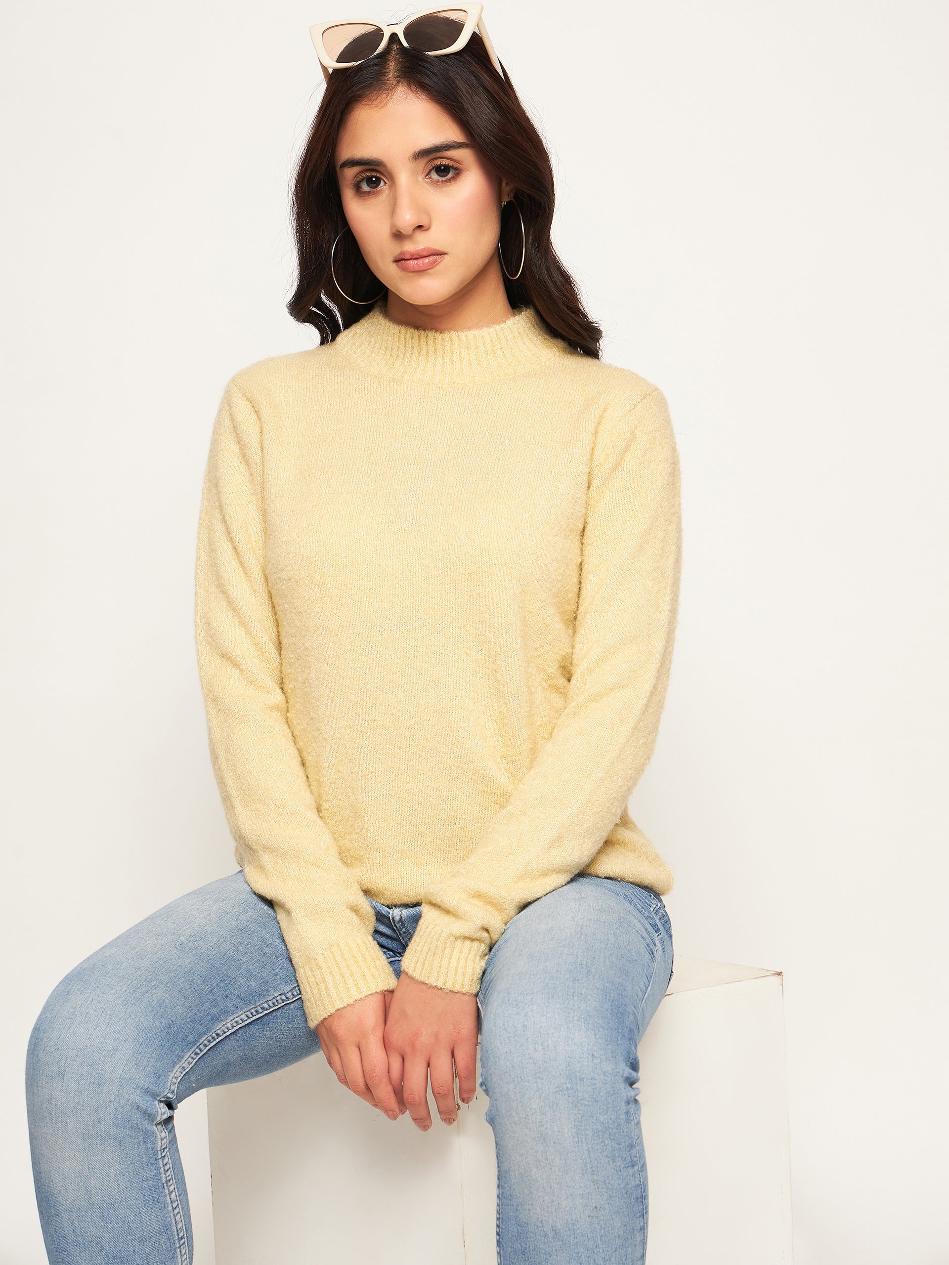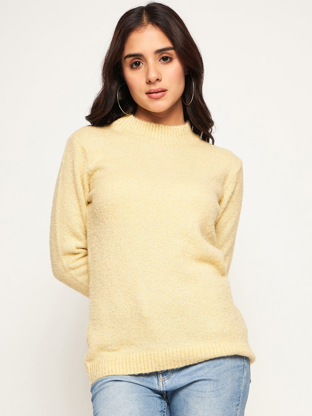 Club York Women Beige High Neck Full Sleeve Solid Sweater 5522