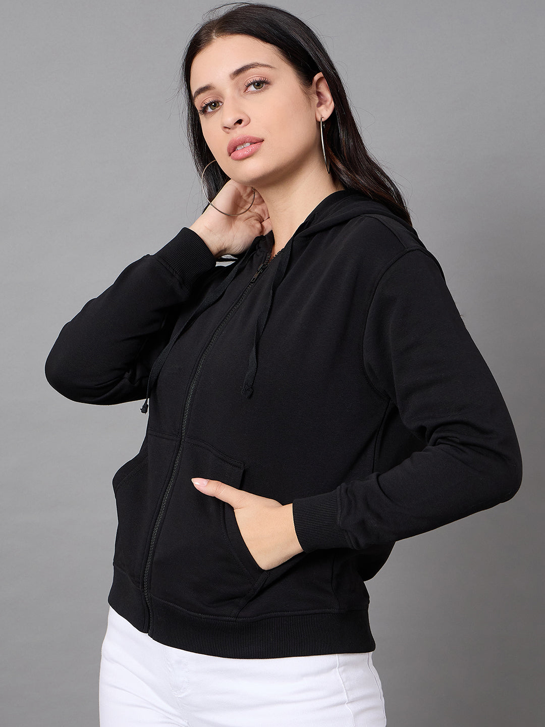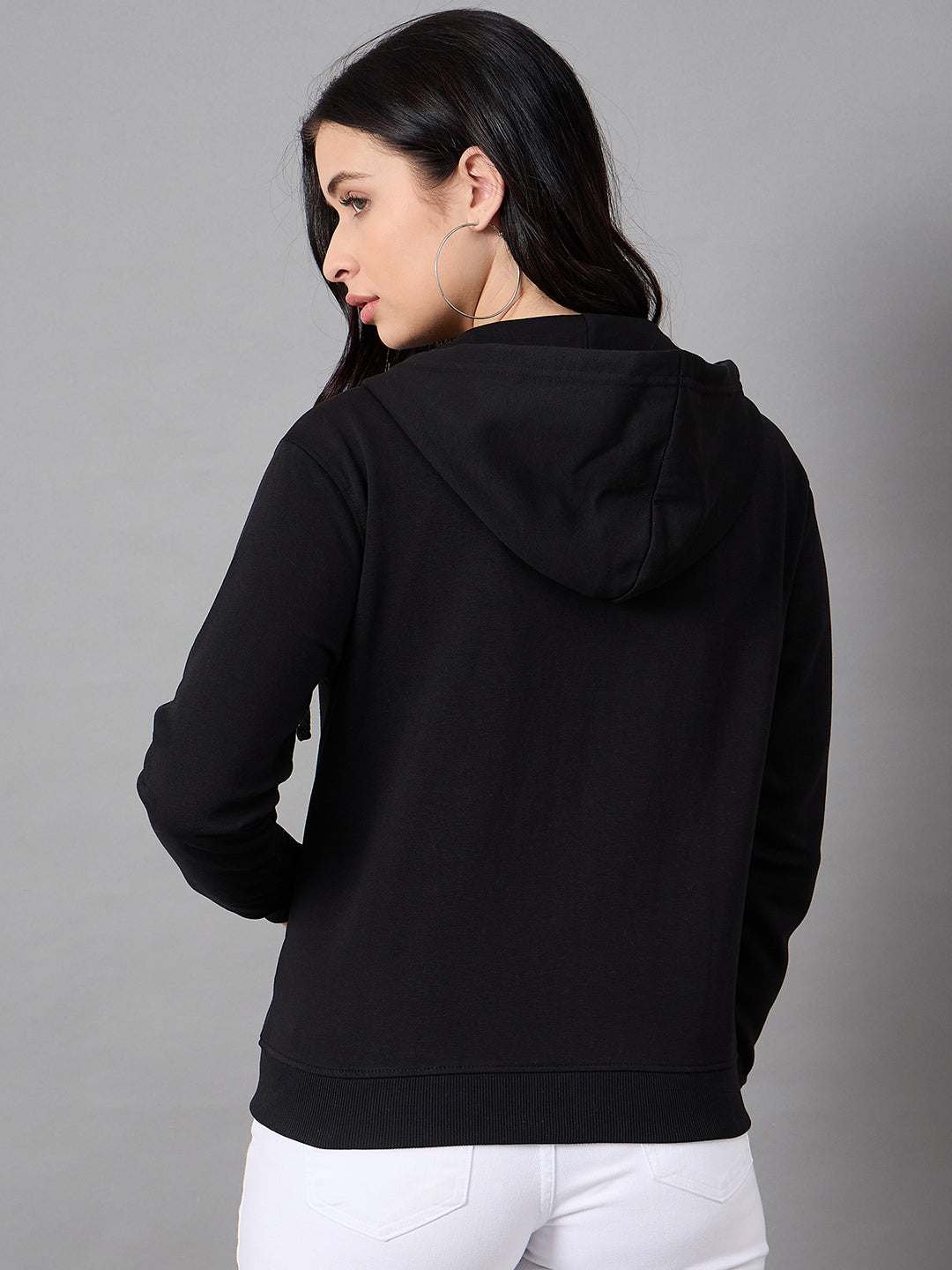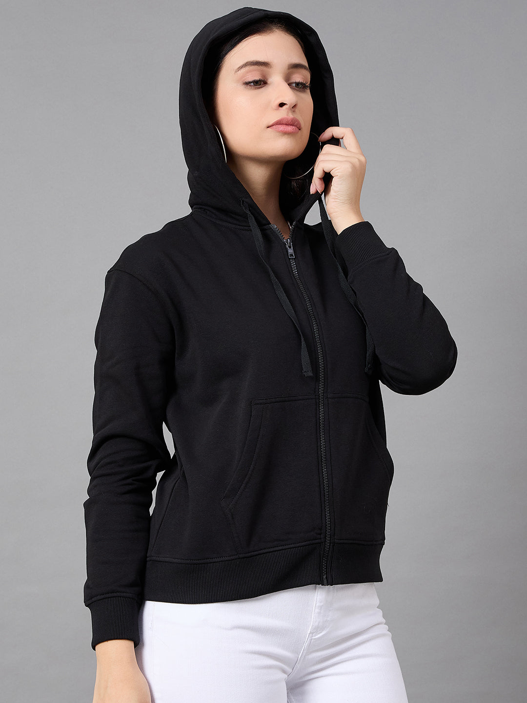 Club York Women Black Full Sleeve Hooded Solid Sweatshirt 8964