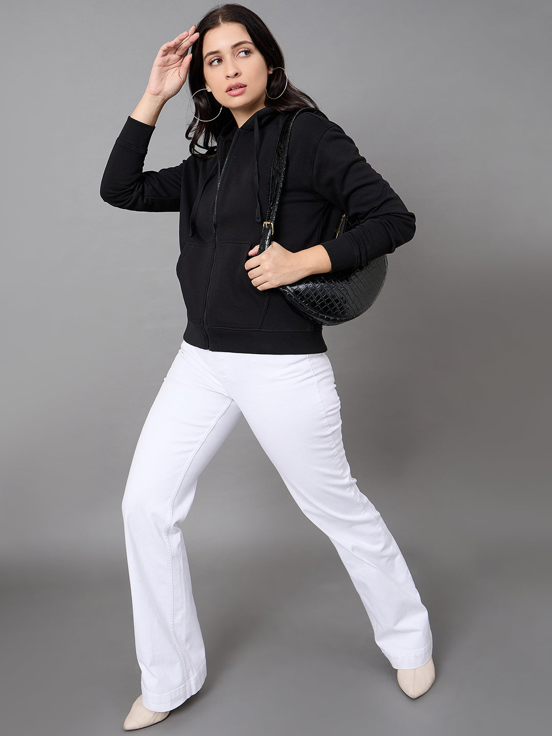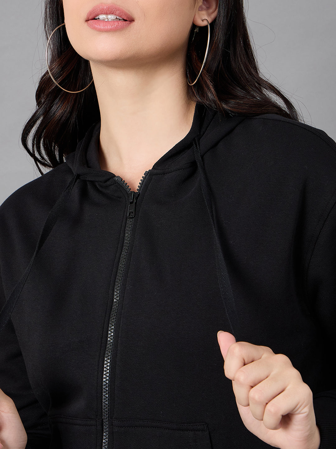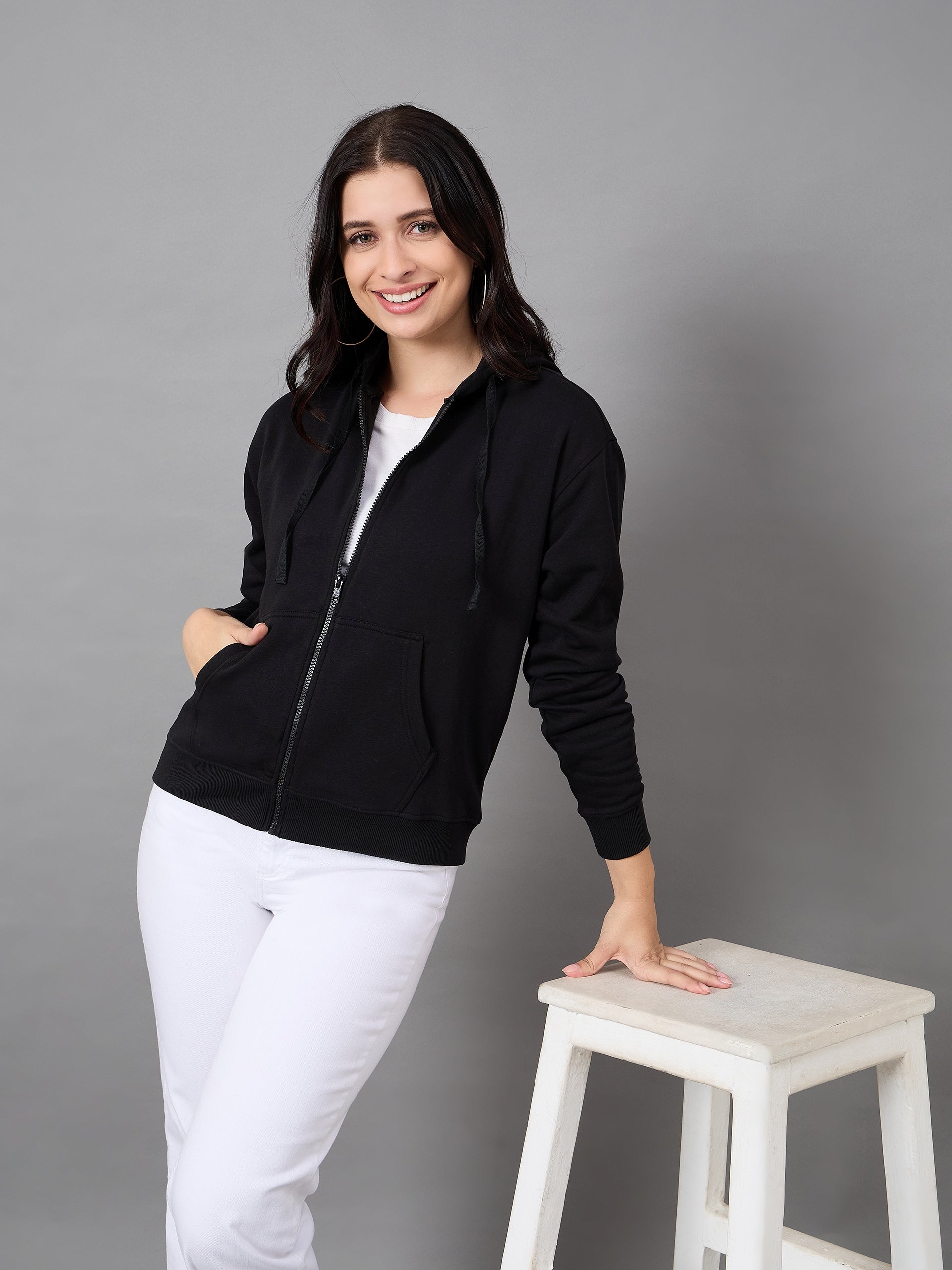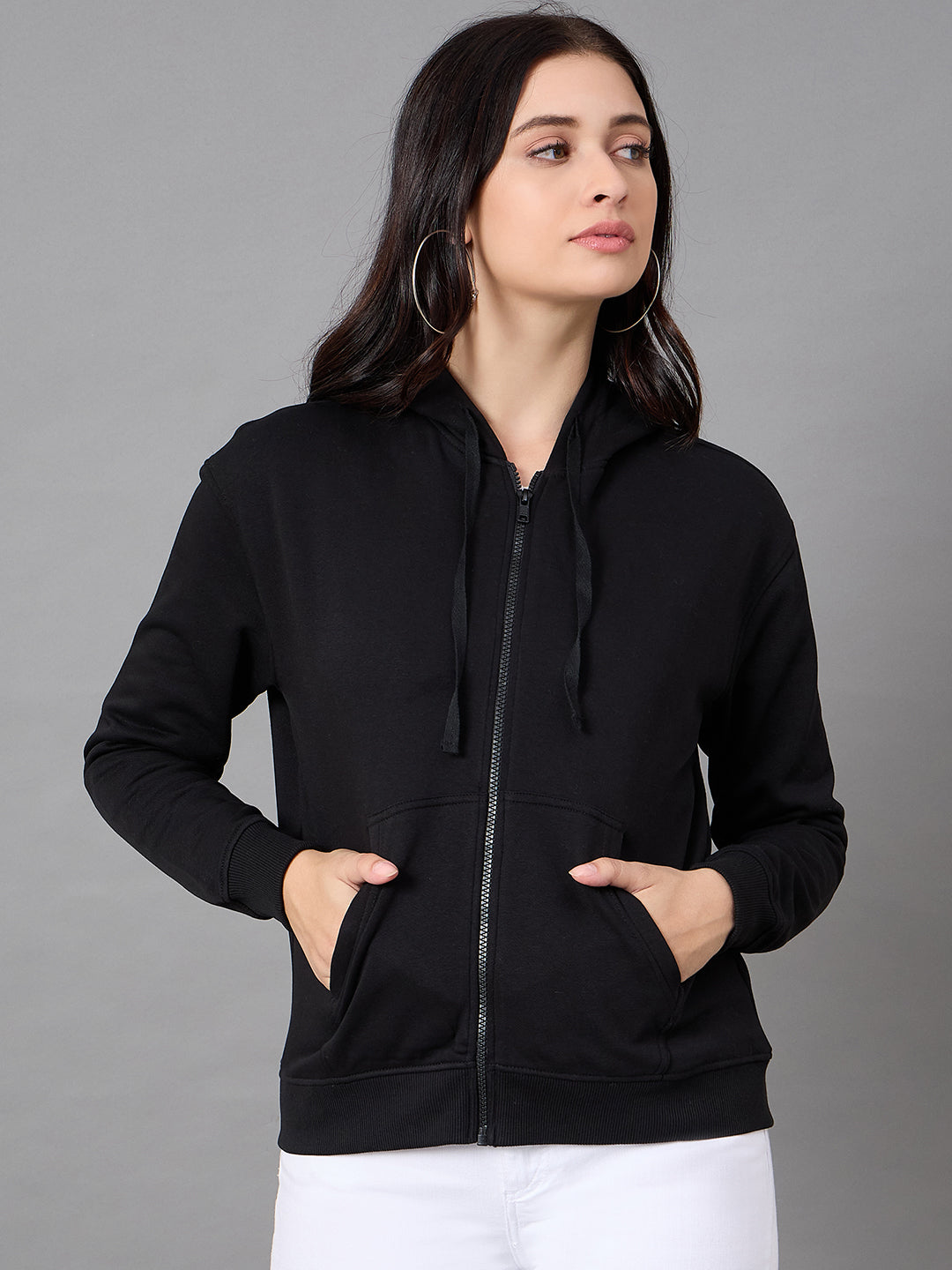 Club York Women Black Full Sleeve Hooded Solid Sweatshirt 8964