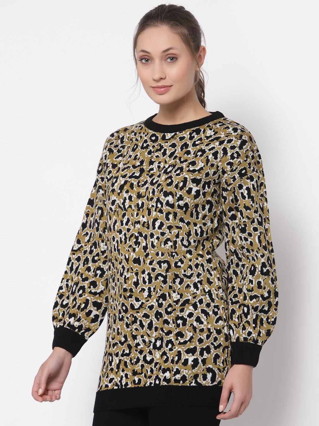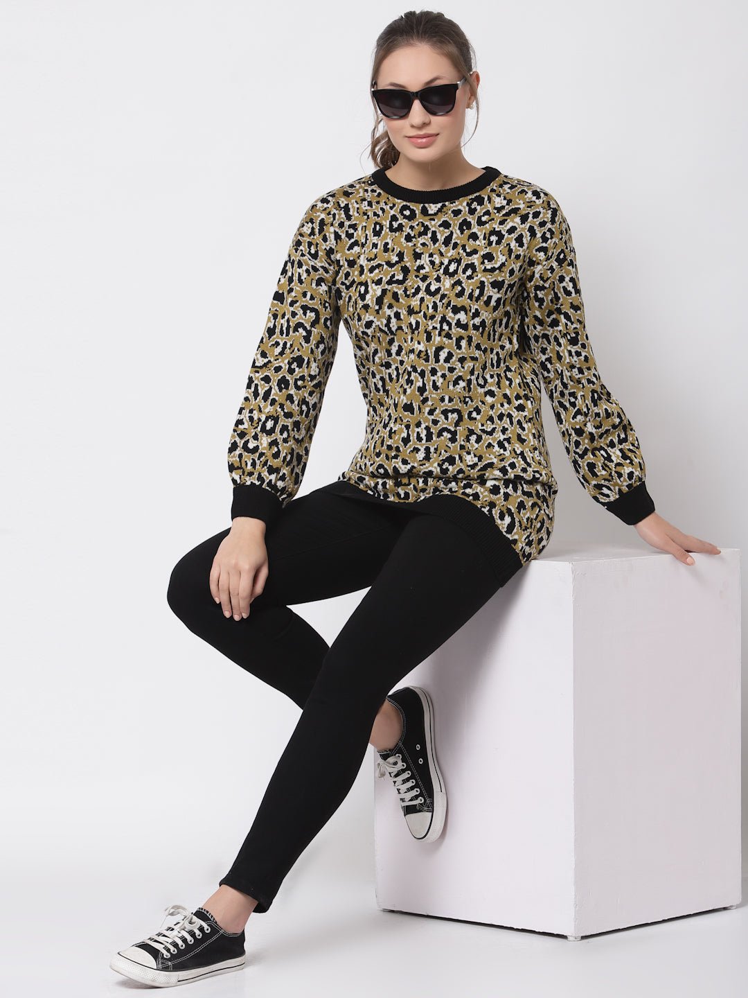 Club York Women Black Full Sleeve Printed Round Neck Sweater Cycw587 5125