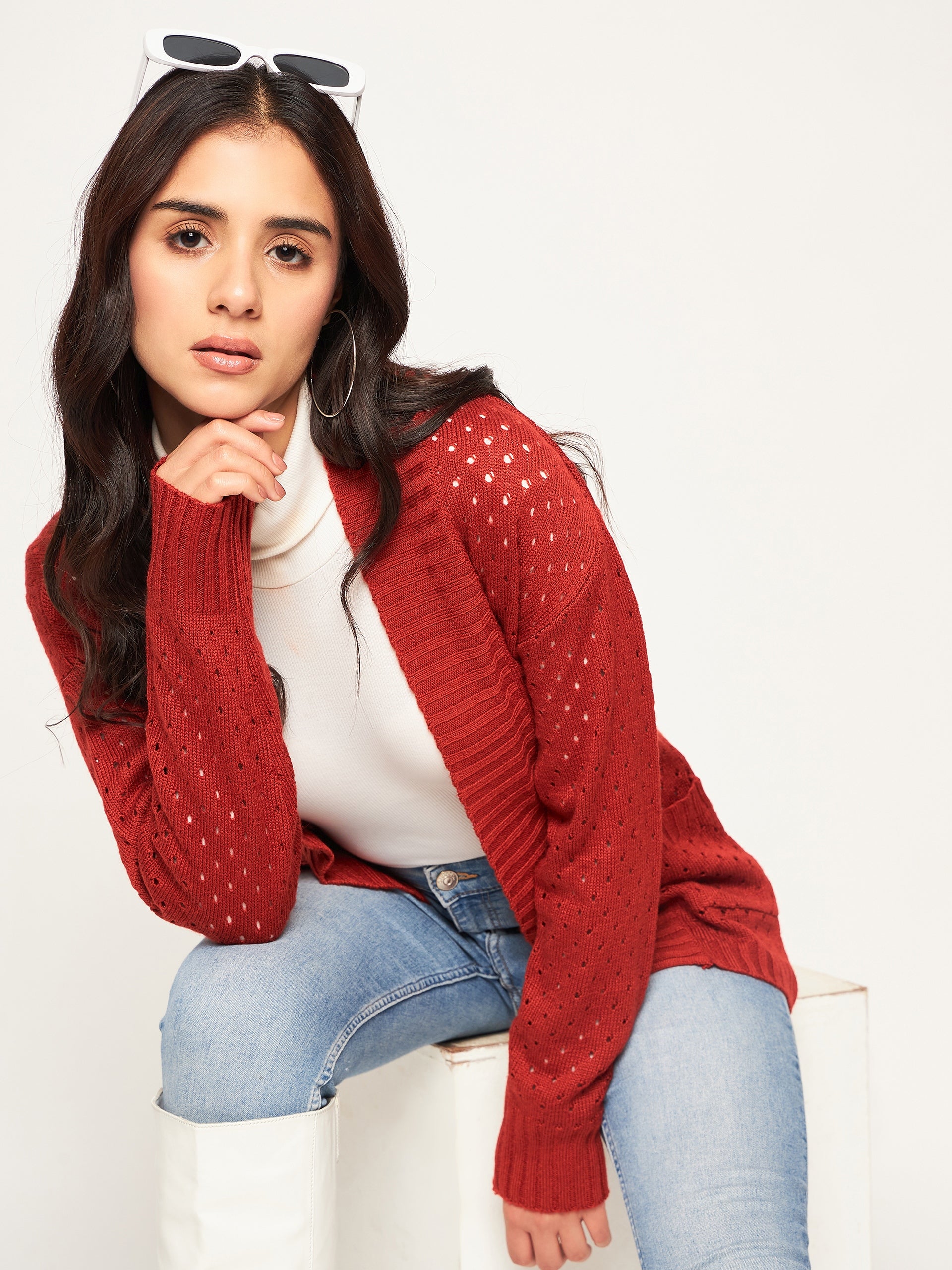 Pink Solid V-Neck Cardigan With Front Pocket 6056