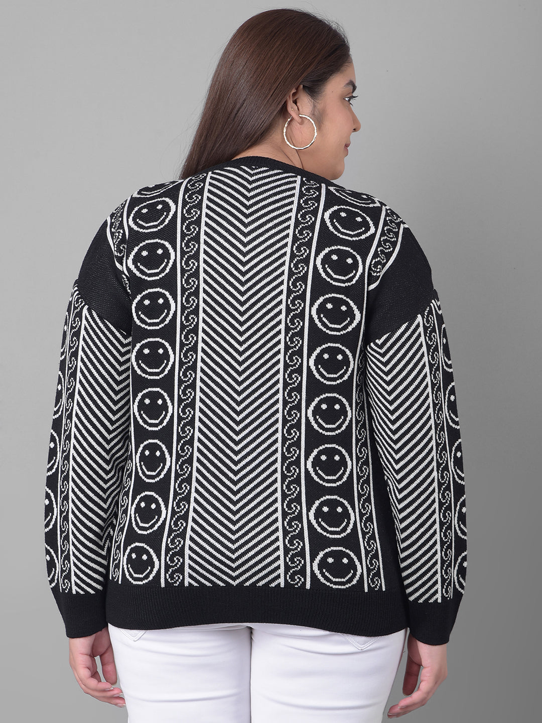 Black Printed Round Neck Sweater 5125