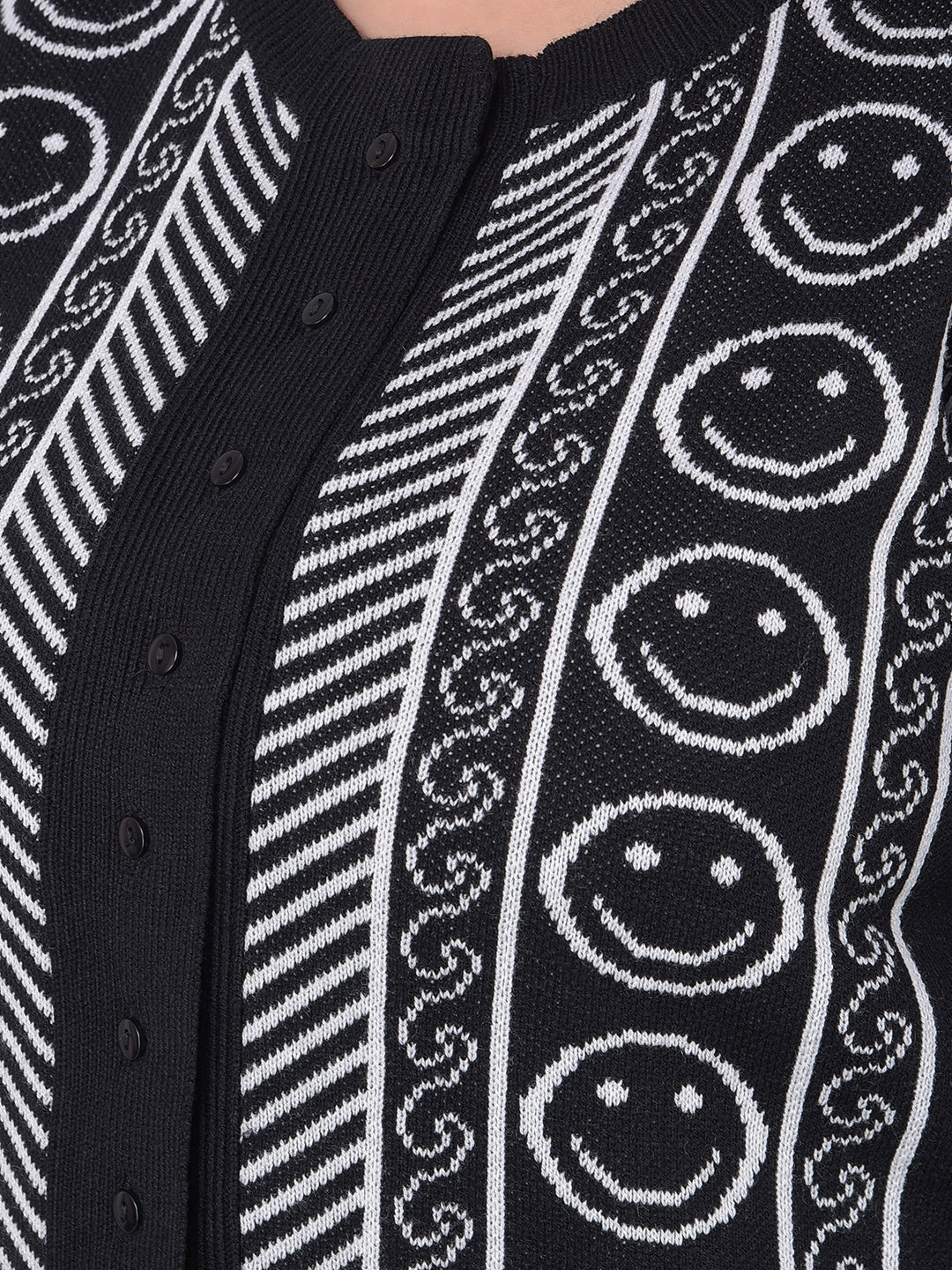 Club York Women Black Round Neck Full Sleeve Printed Cardigan 4469