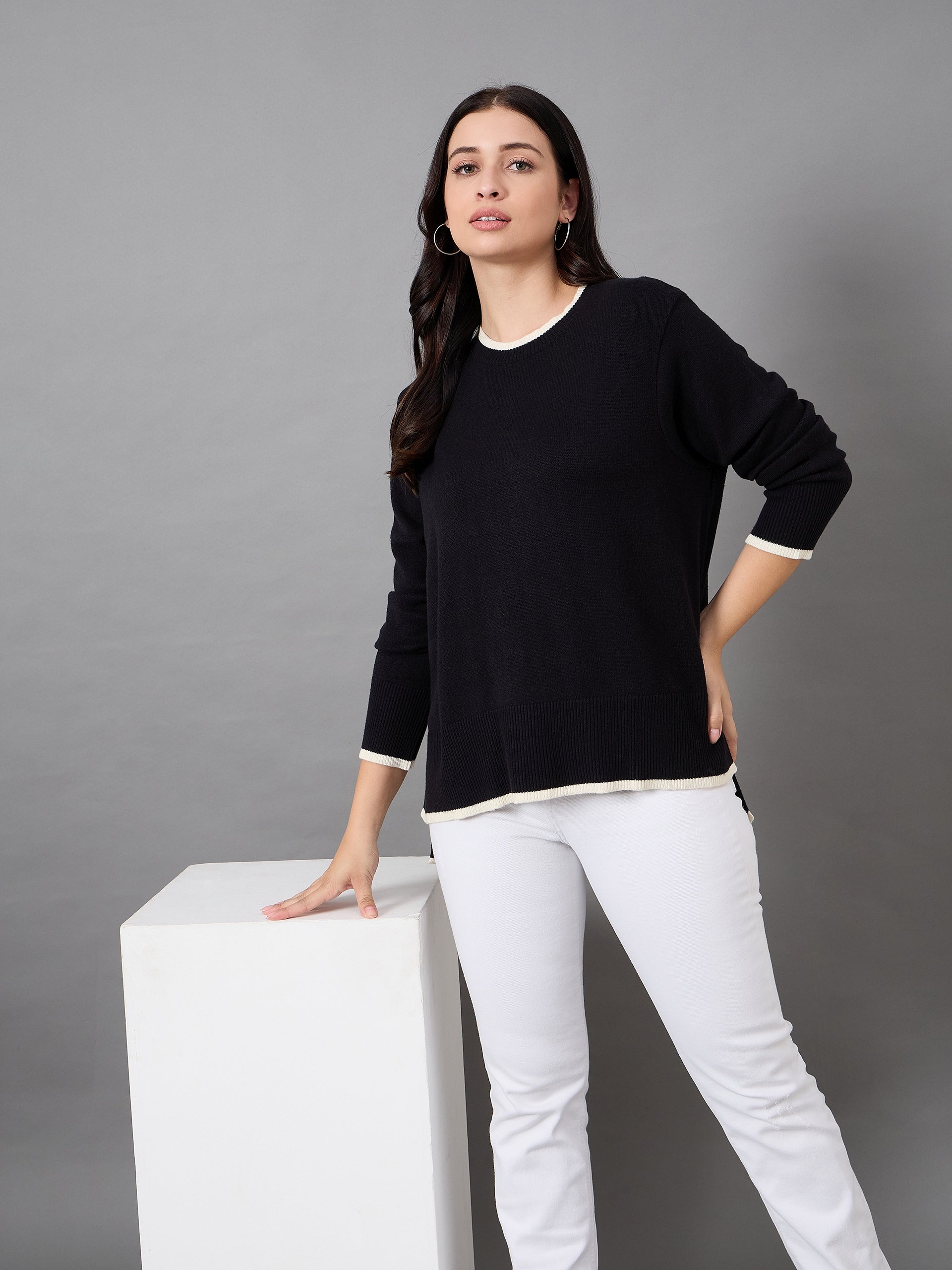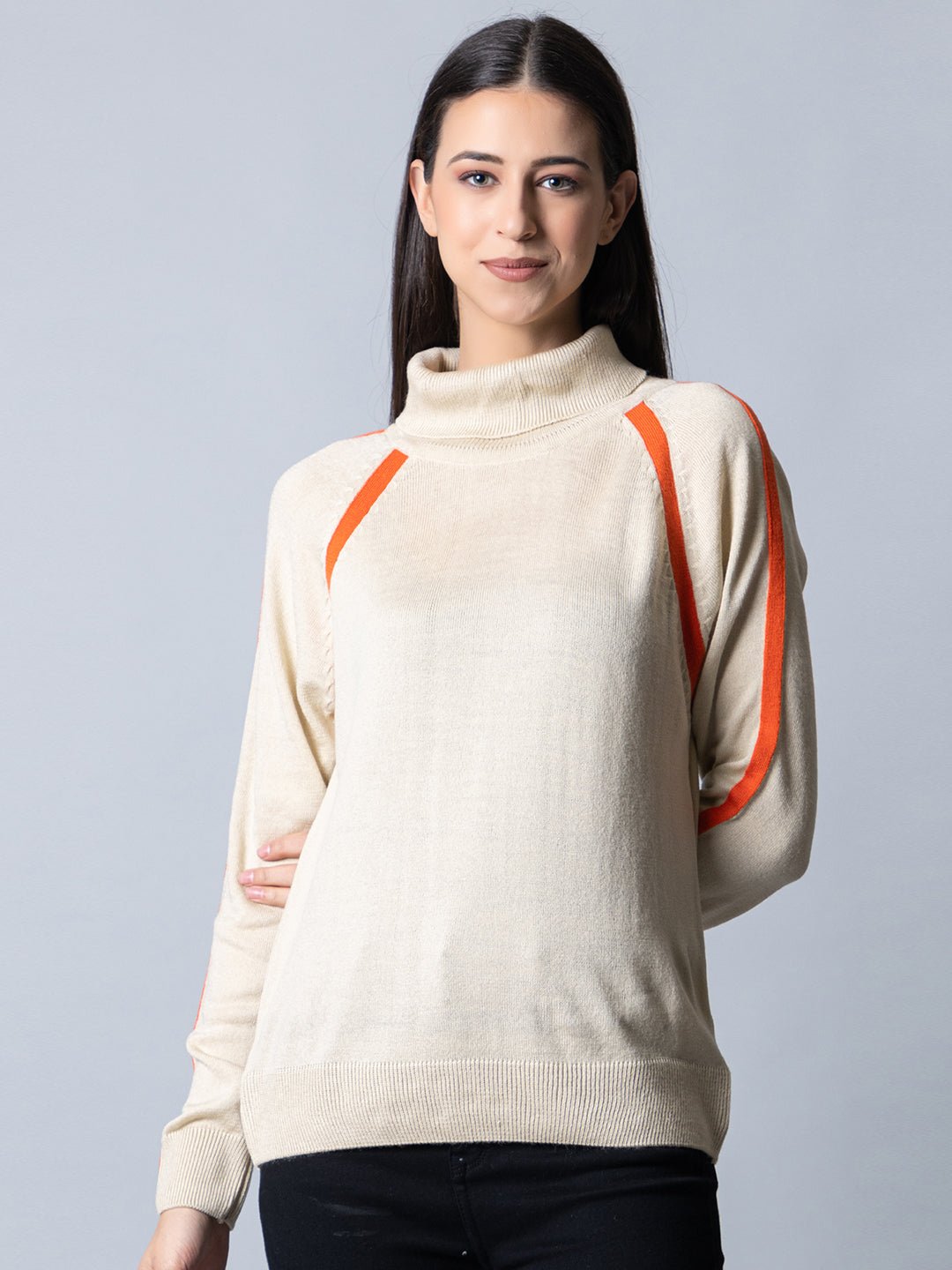 Ecru Melange High Neck Colorblocked Sweater 9647