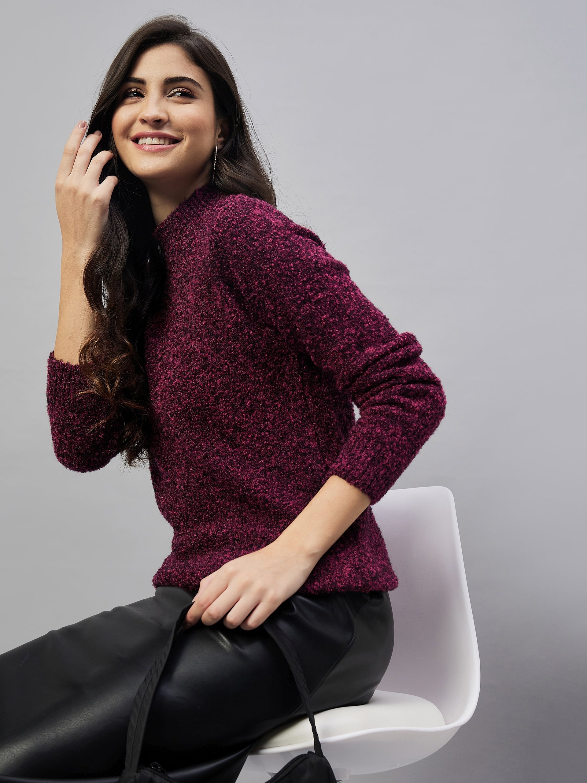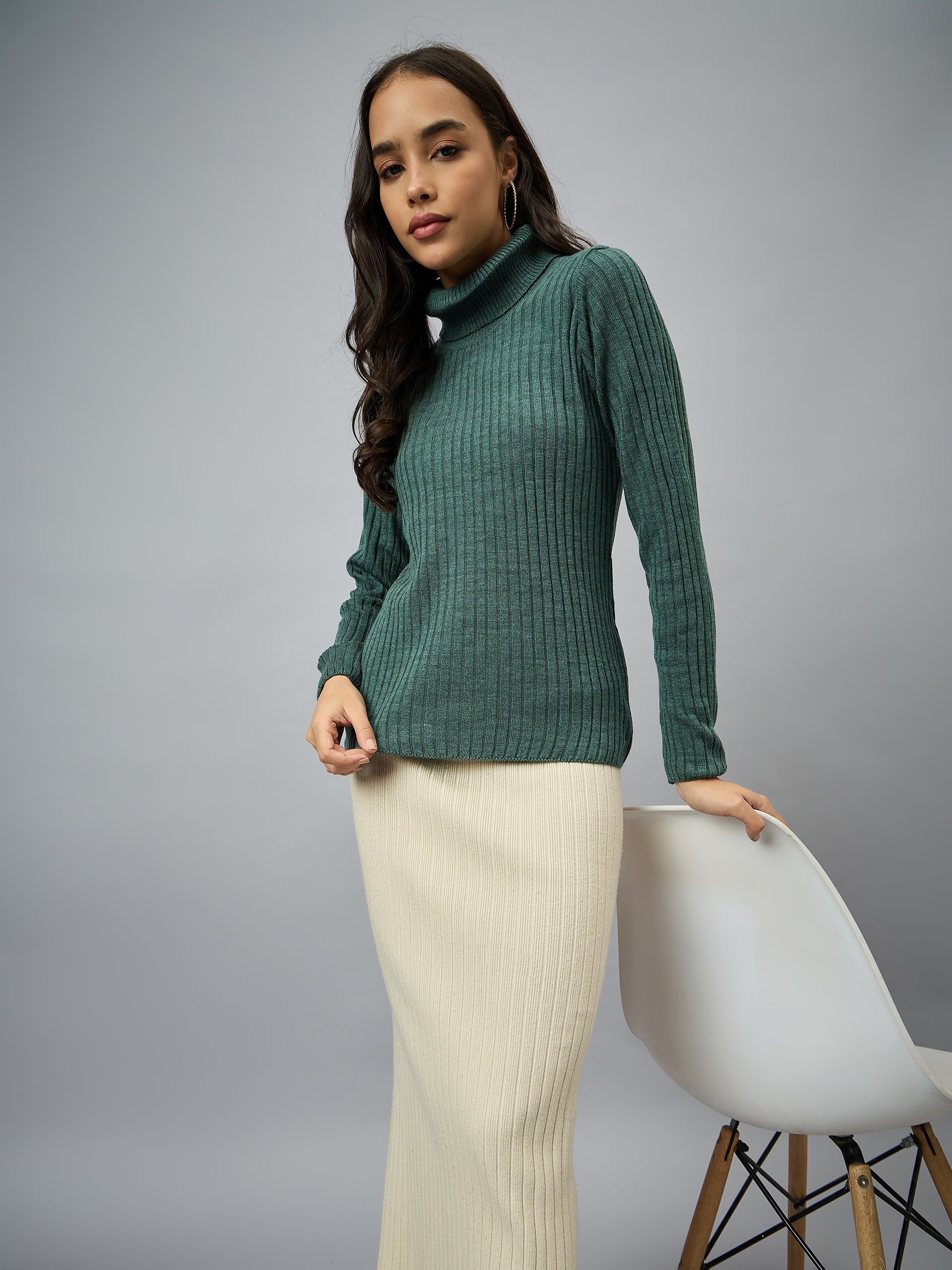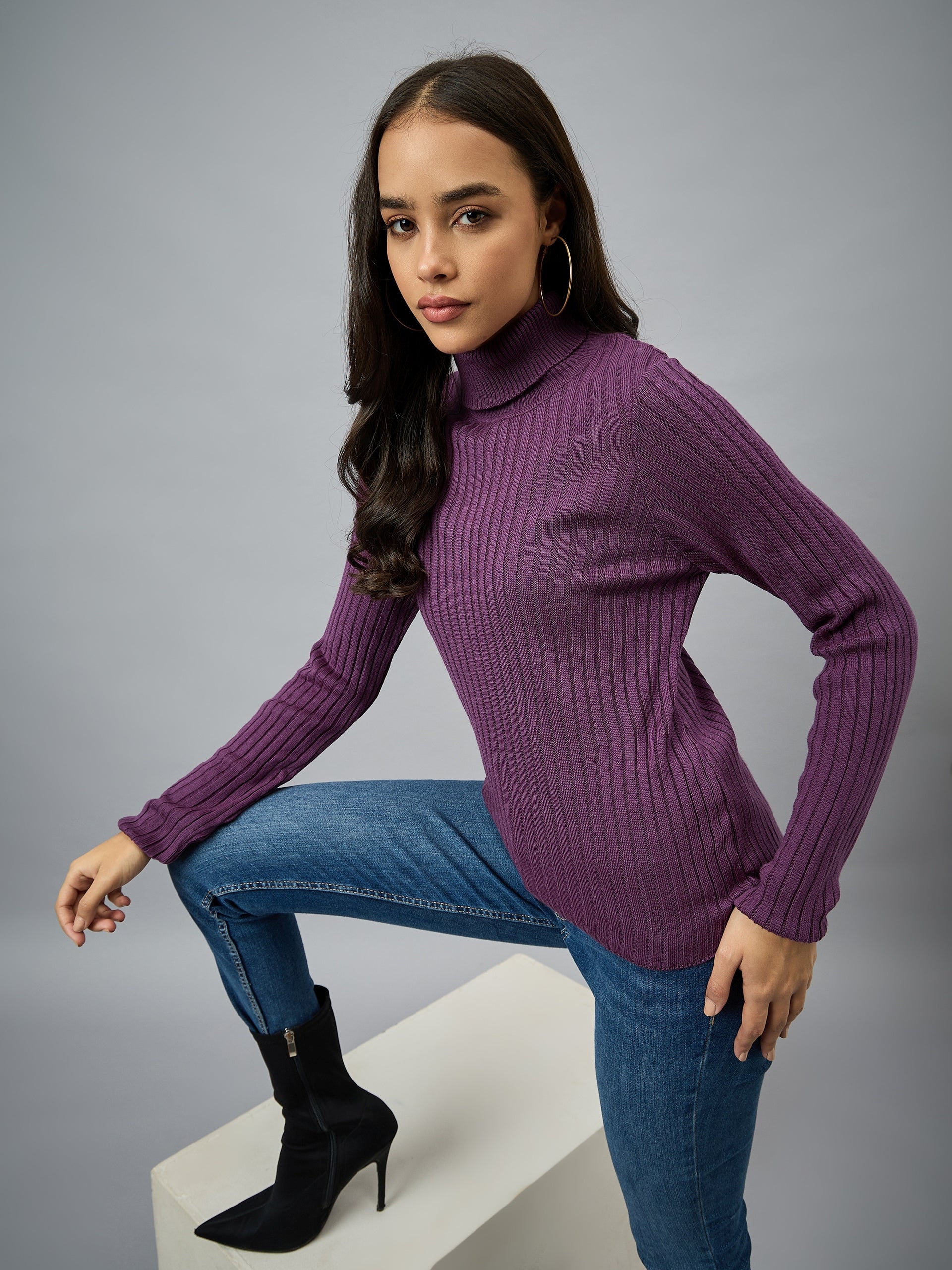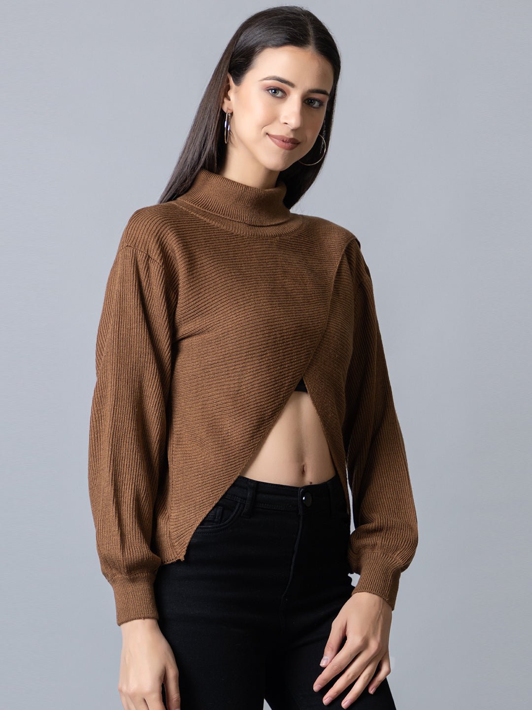 Club York Women Brown Full Sleeve High Neck Ribbed Sweater Cycw617 4051