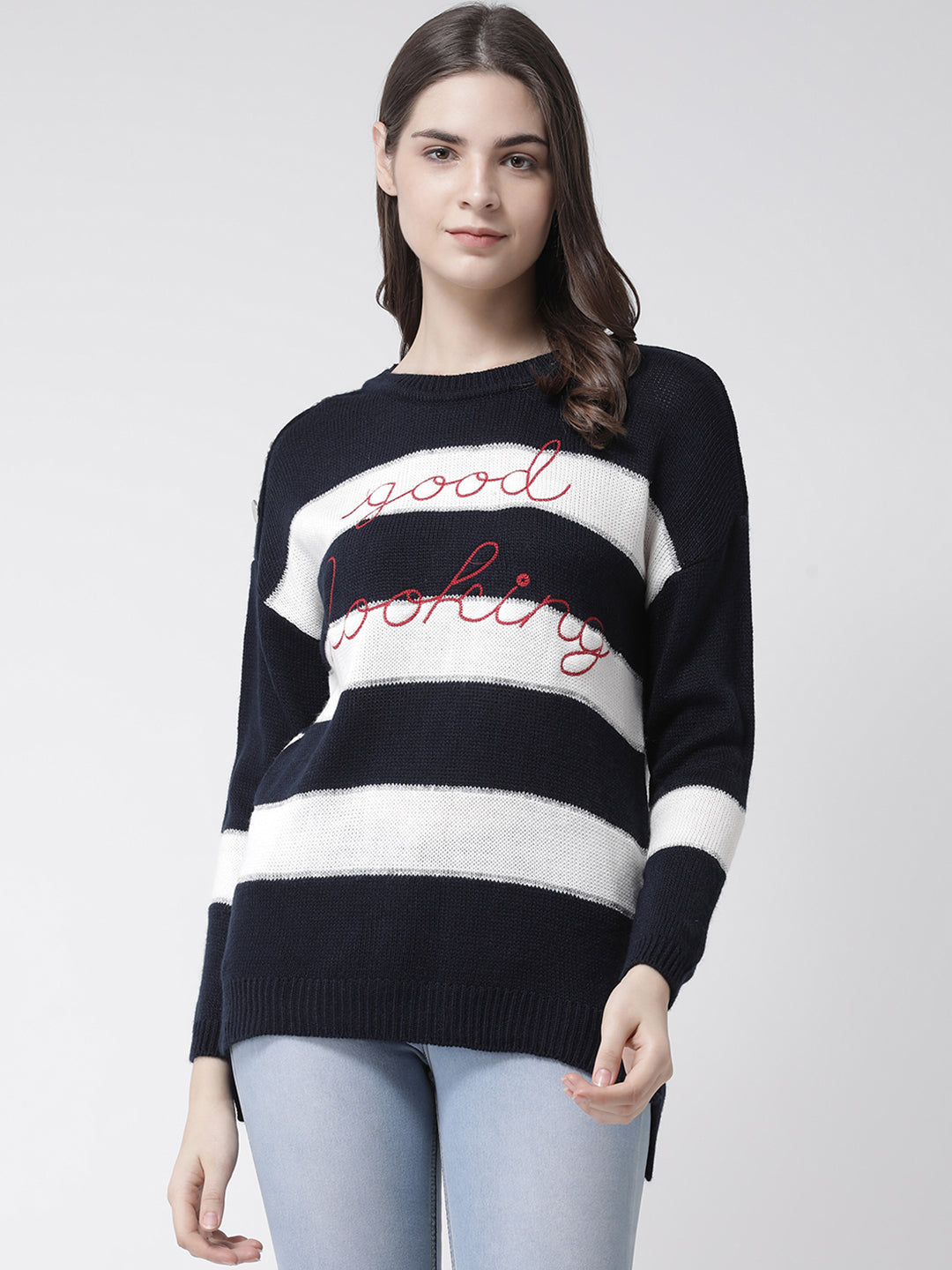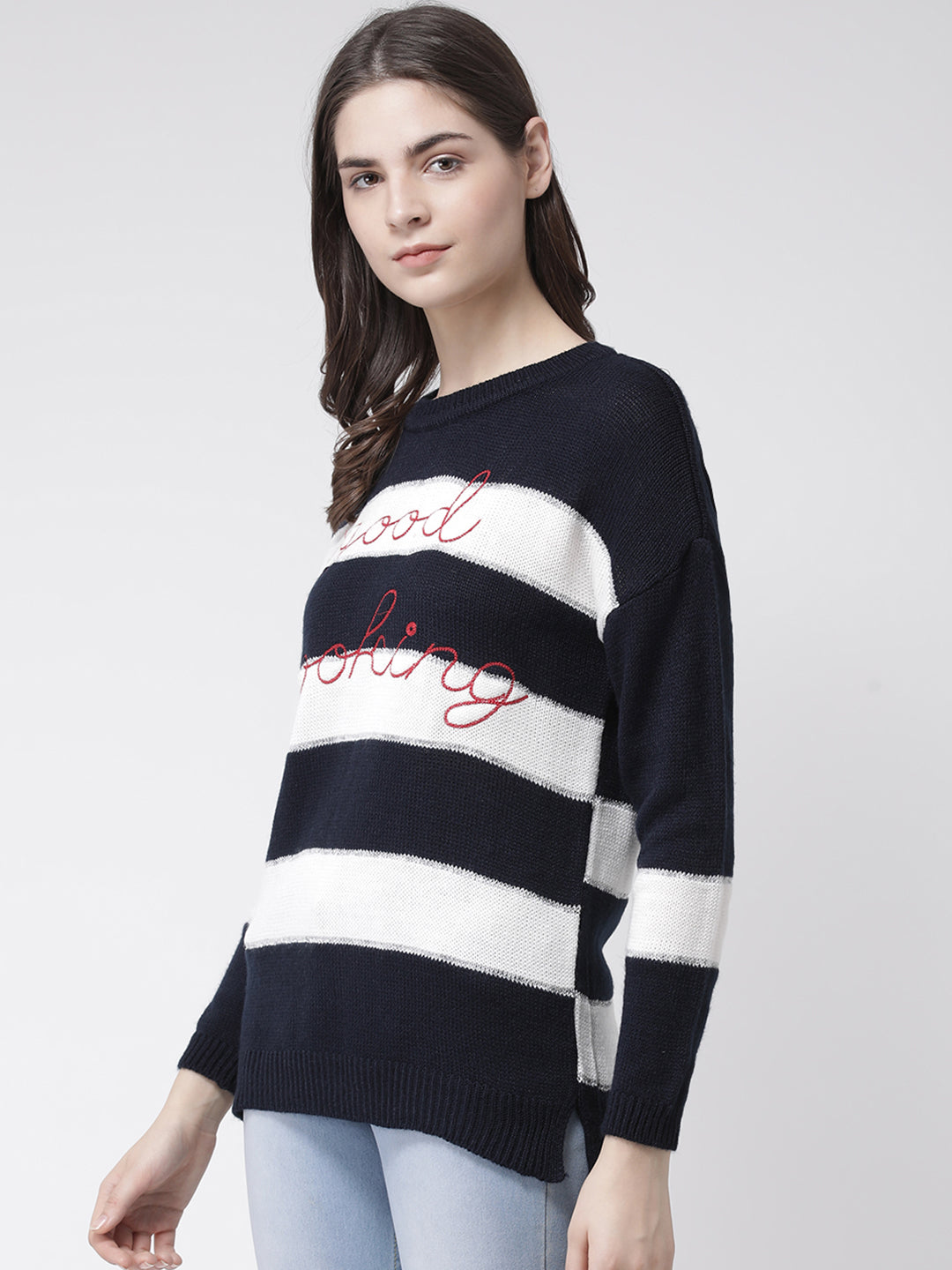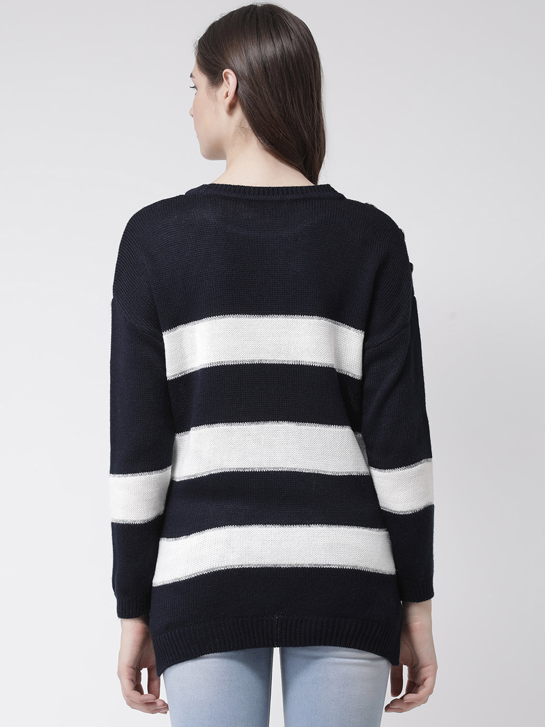 Club York Women Navy Blue Striped Pullover Sweater 5346