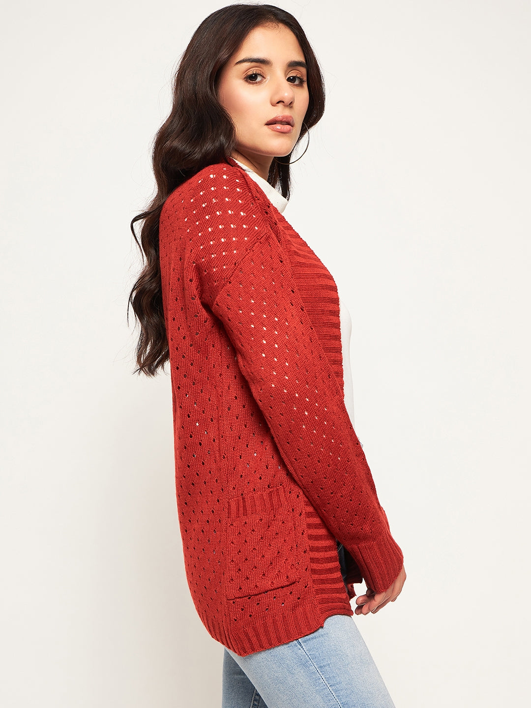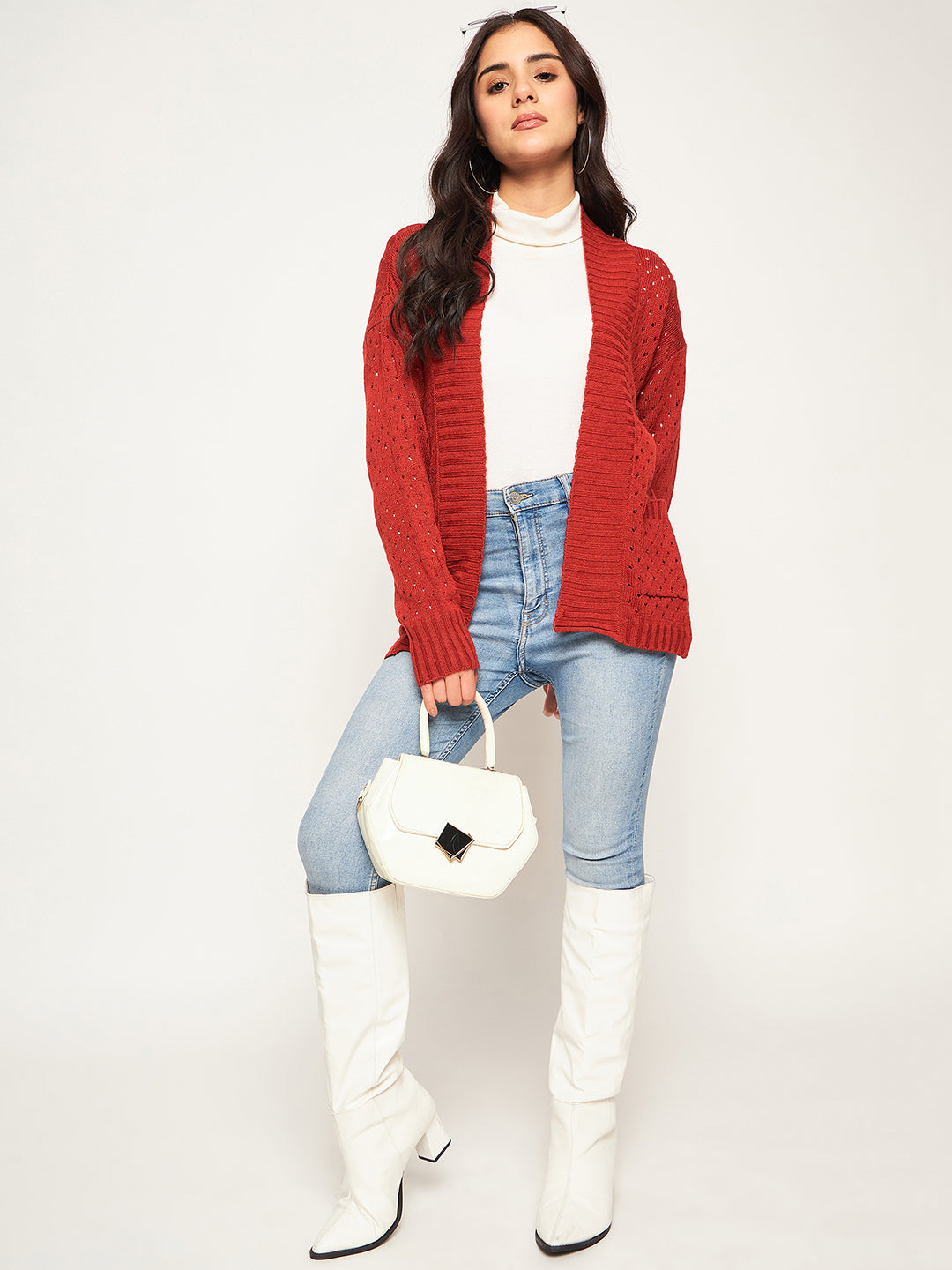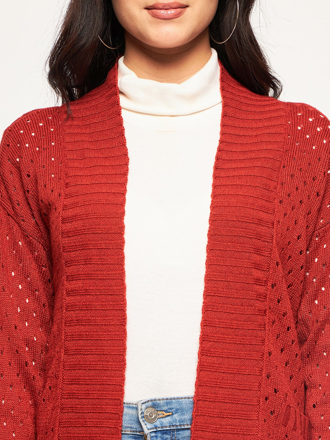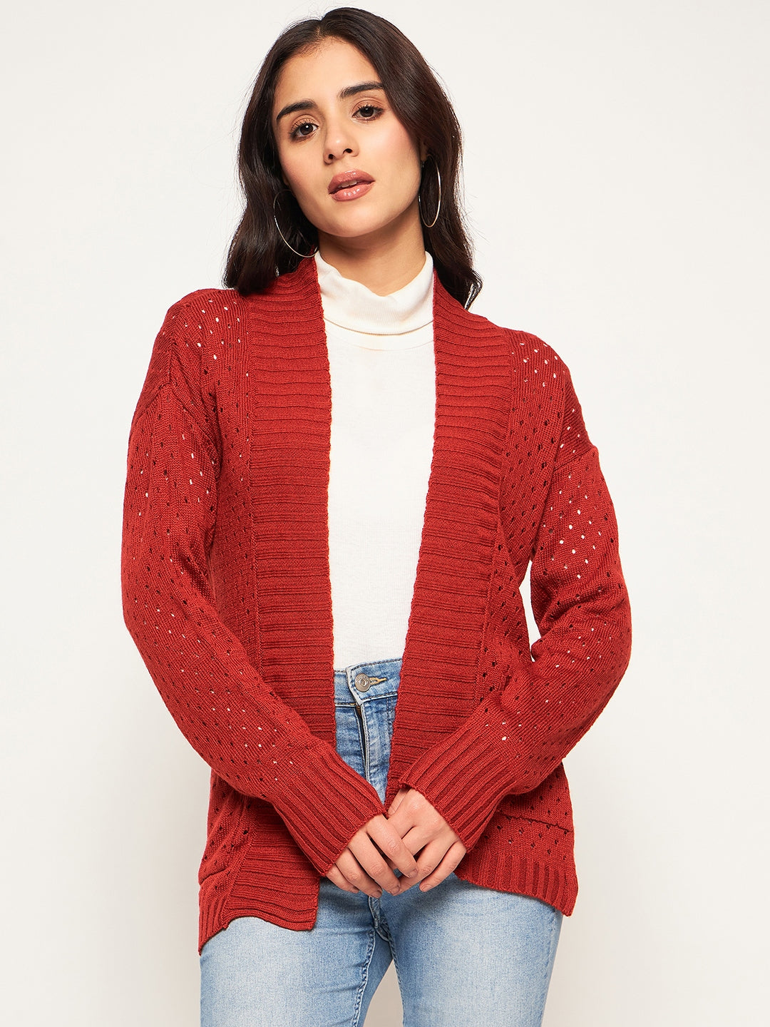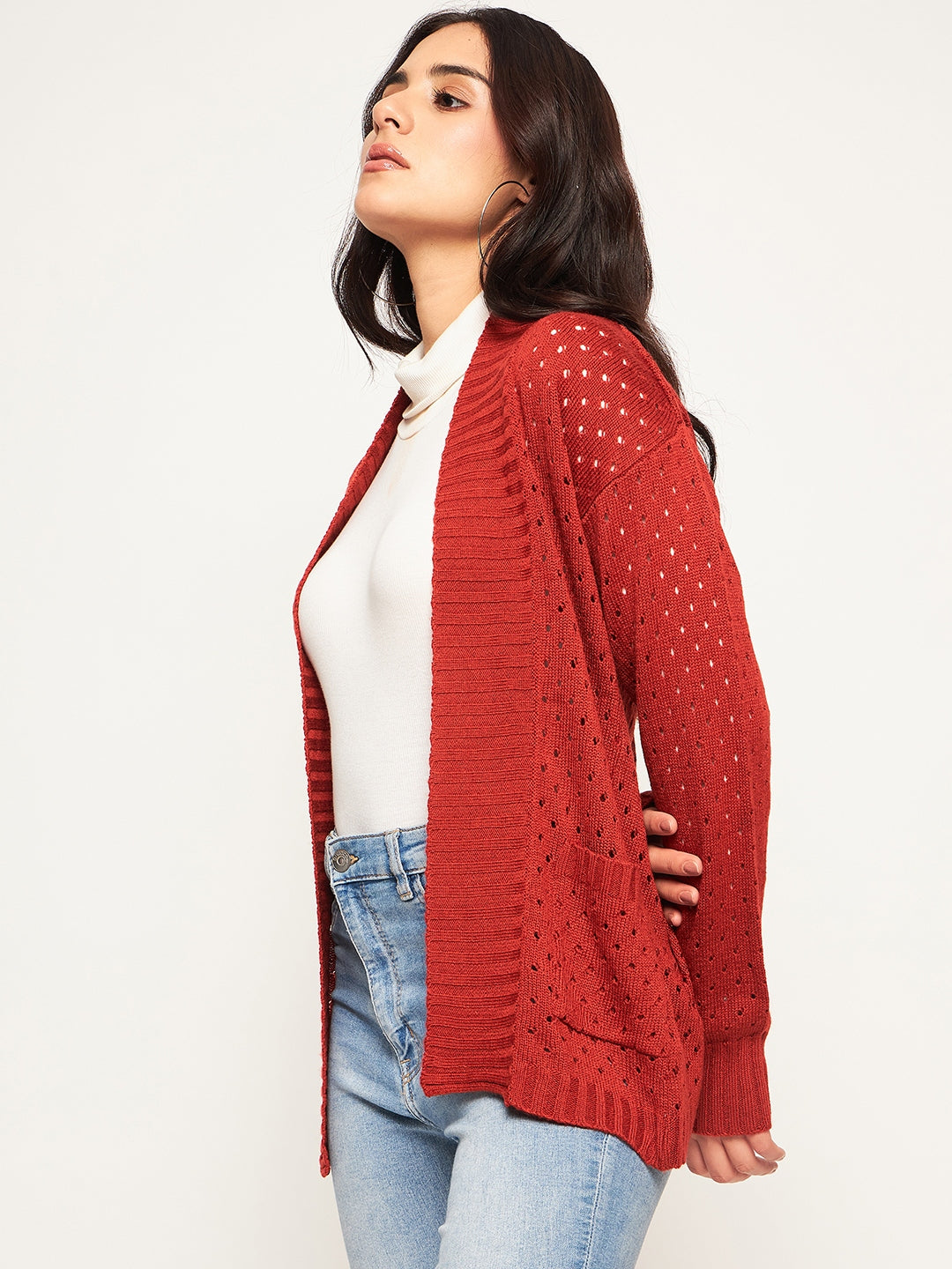 Club York Women Orange Front Open Full Sleeve Self Design Shrug 7820