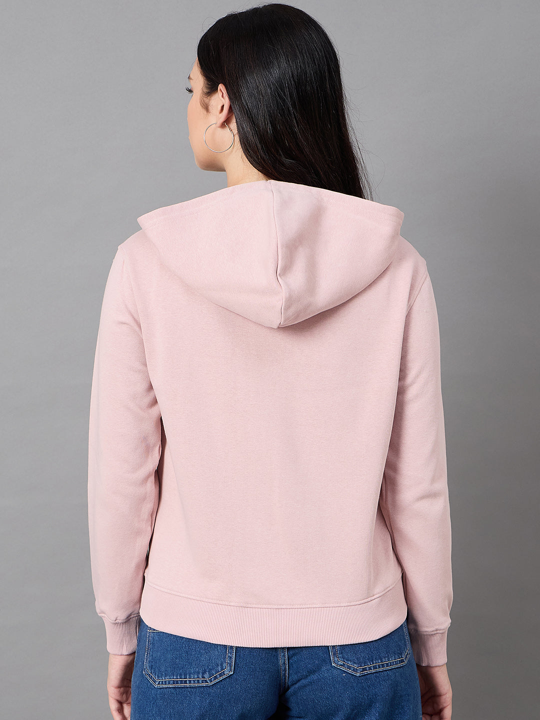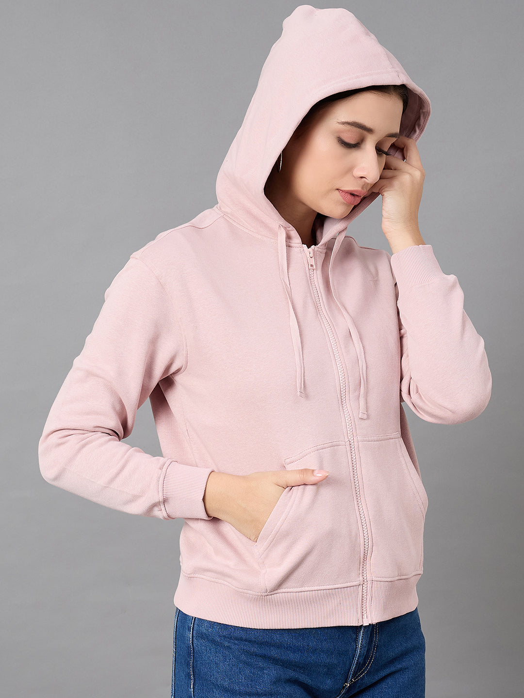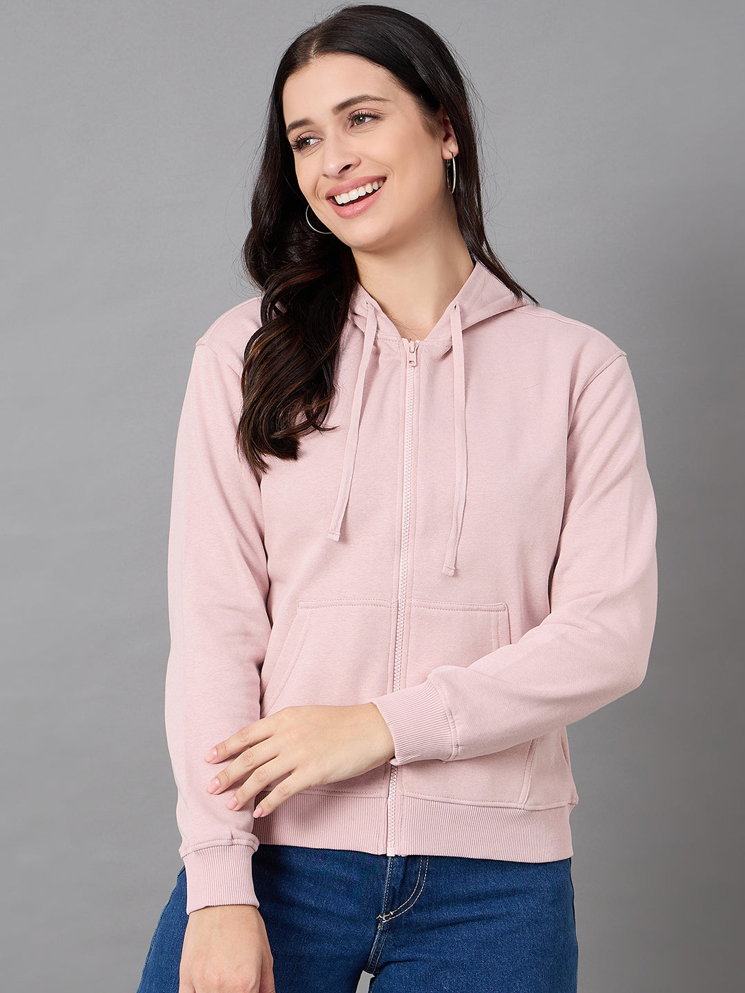 Club York Women Pink Full Sleeve Hooded Solid Sweatshirt 4413
