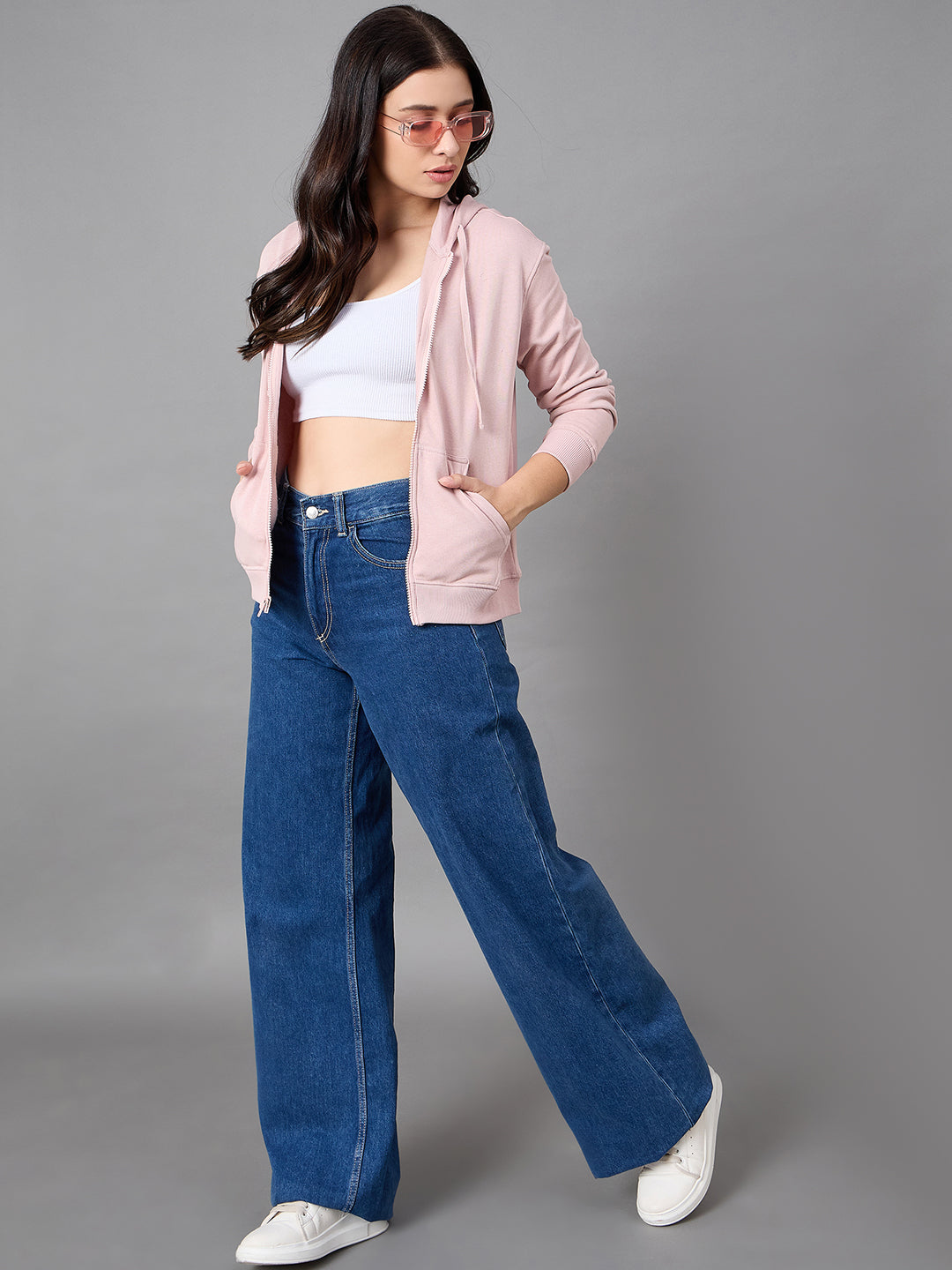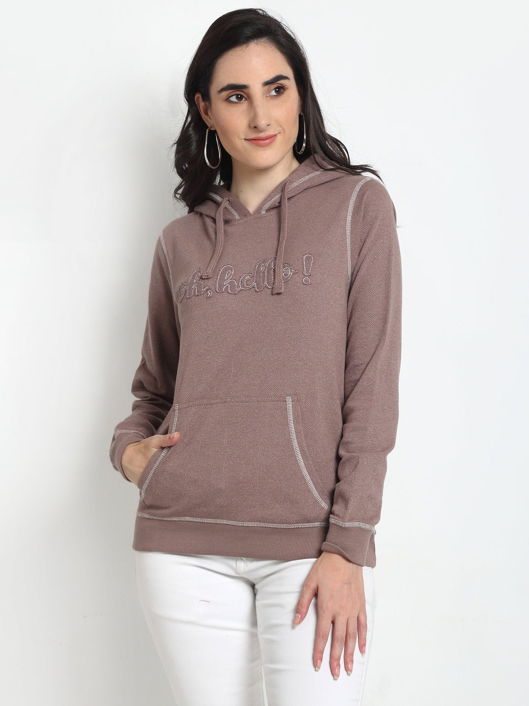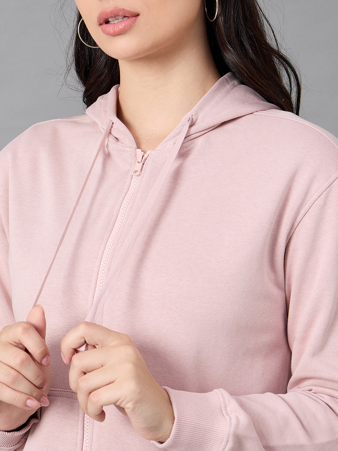 Club York Women Pink Full Sleeve Hooded Solid Sweatshirt 4413
