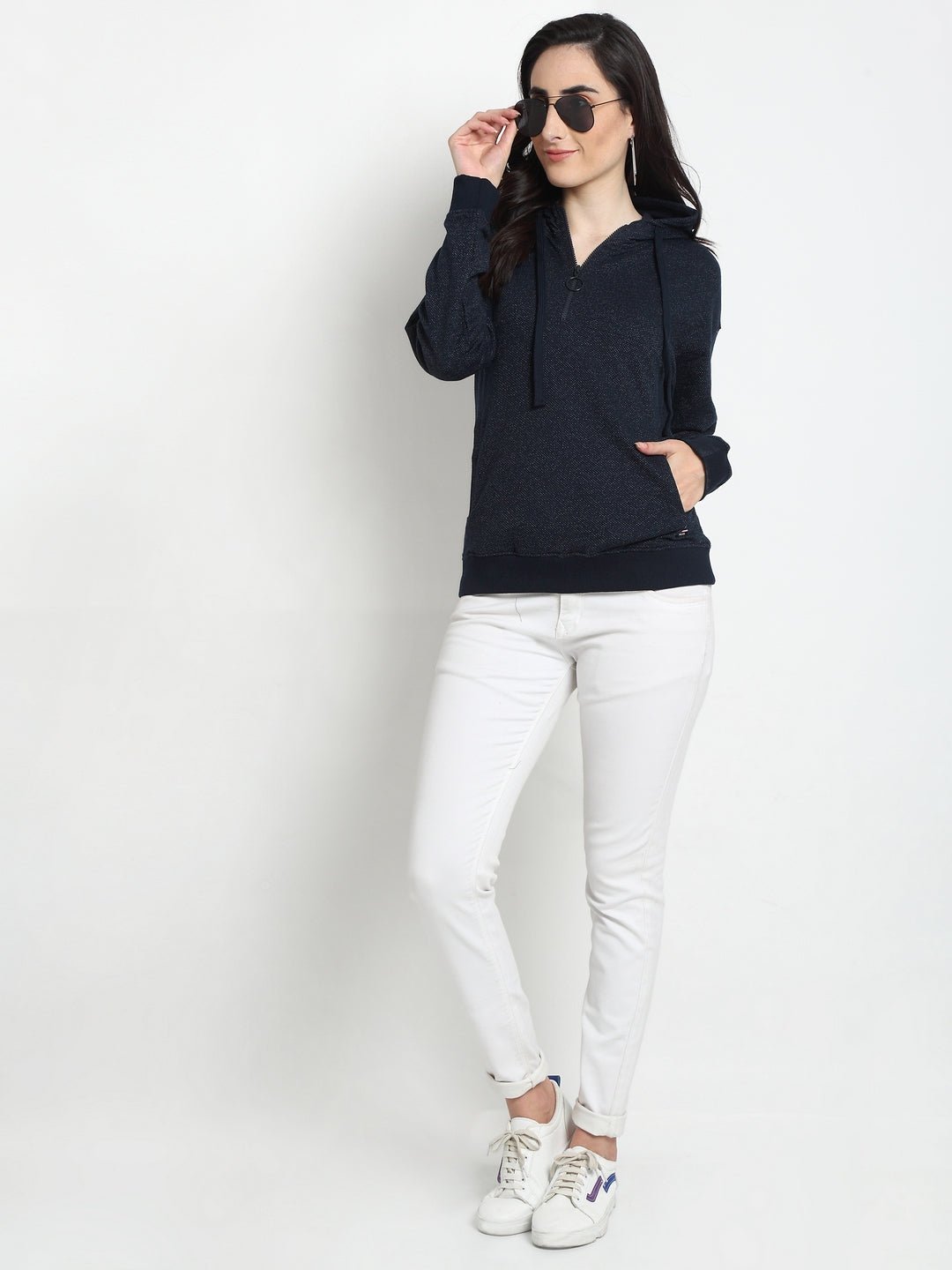 Navy Blue Solid Half Zipper Hooded Sweatshirt 8405