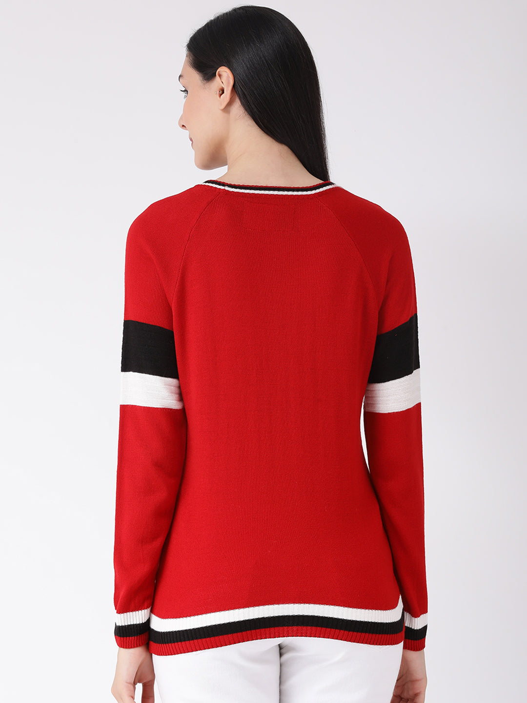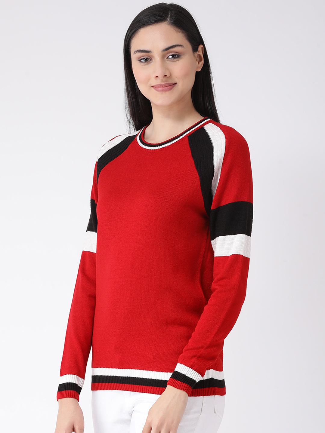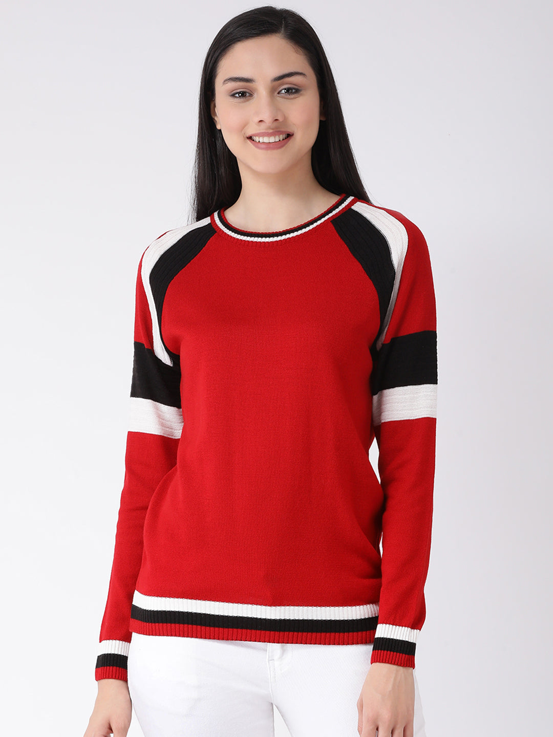 Ecru Melange High Neck Colorblocked Sweater 9647