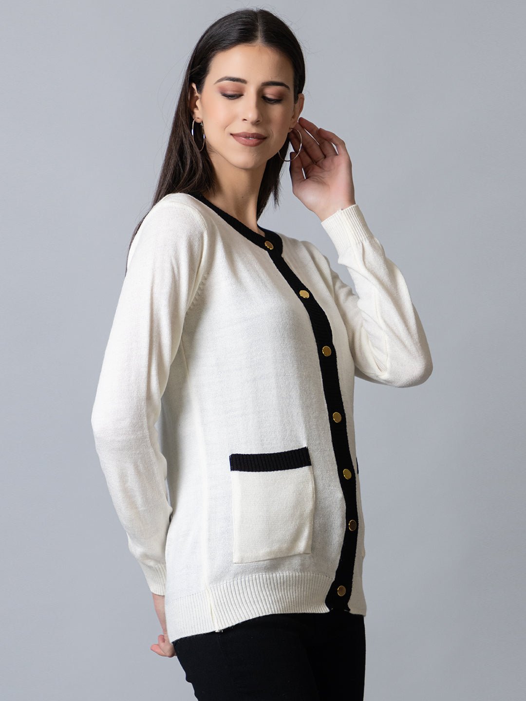 Club York Women White Full Sleeve Round Neck Soild Cardigan Cycw611 8794