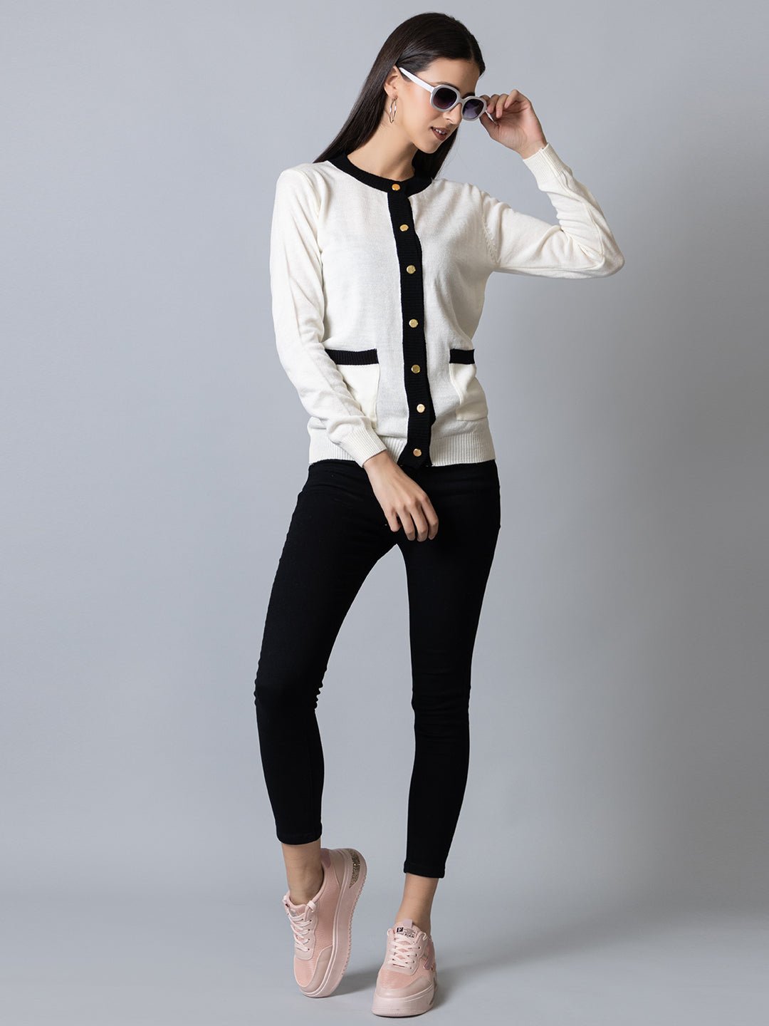 Off White Colorblocked Cardigan 6098