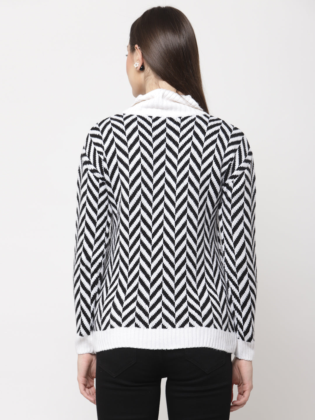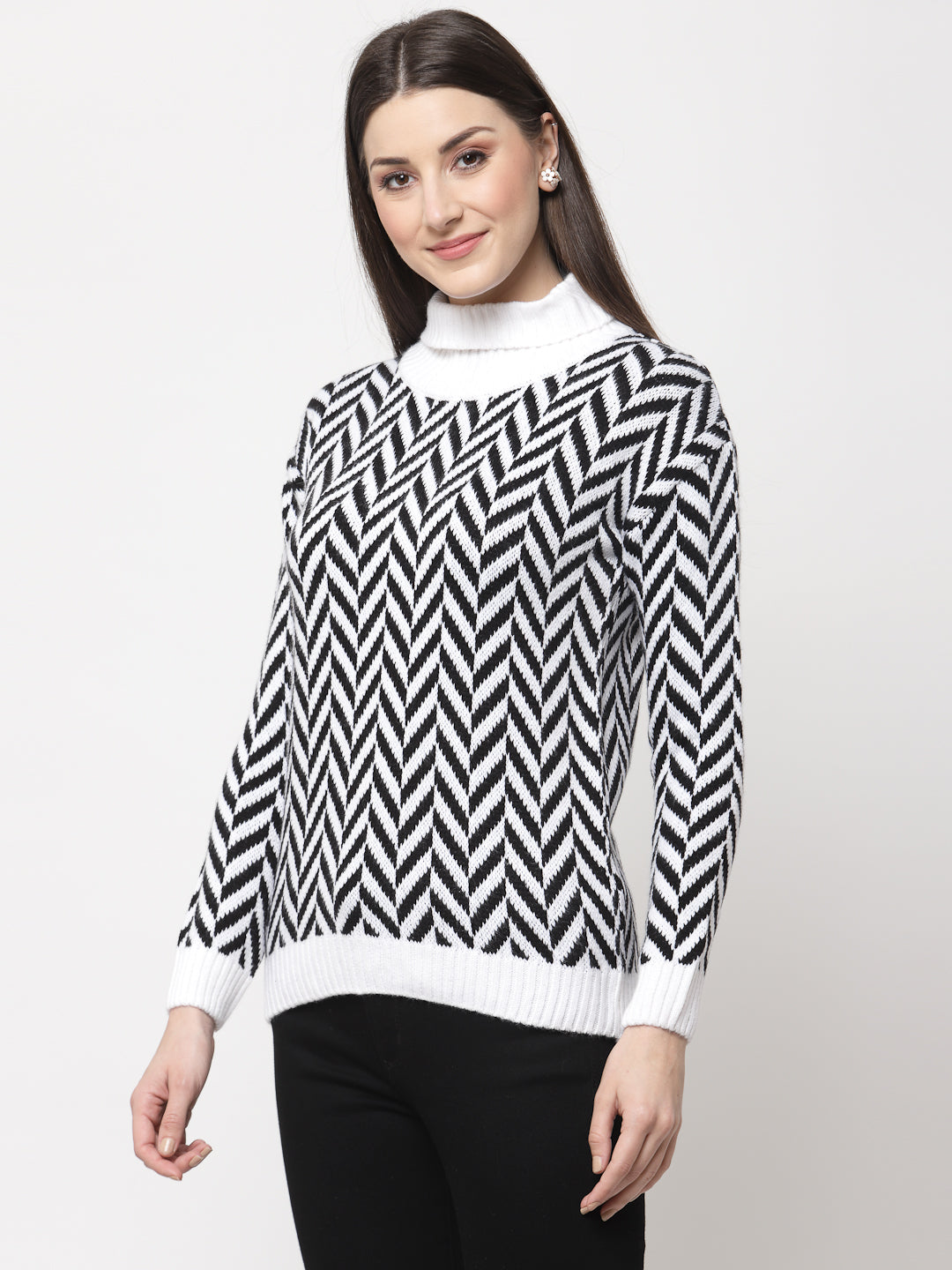 Club York Women White Self Design High Neck Acrylic Pullover 2153