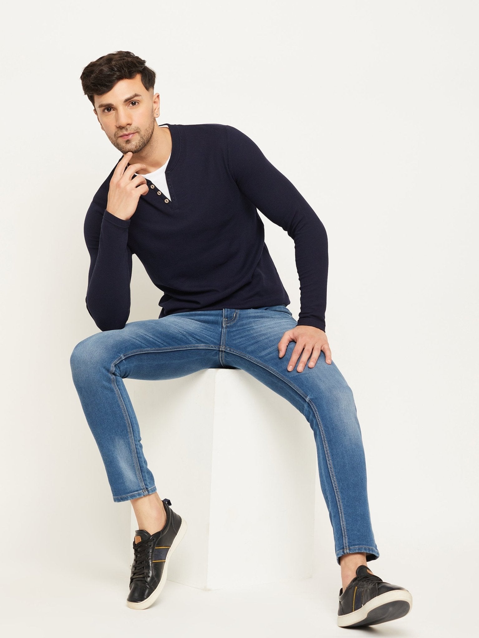 Navy Blue Colorblocked Round Neck T-Shirt 1227