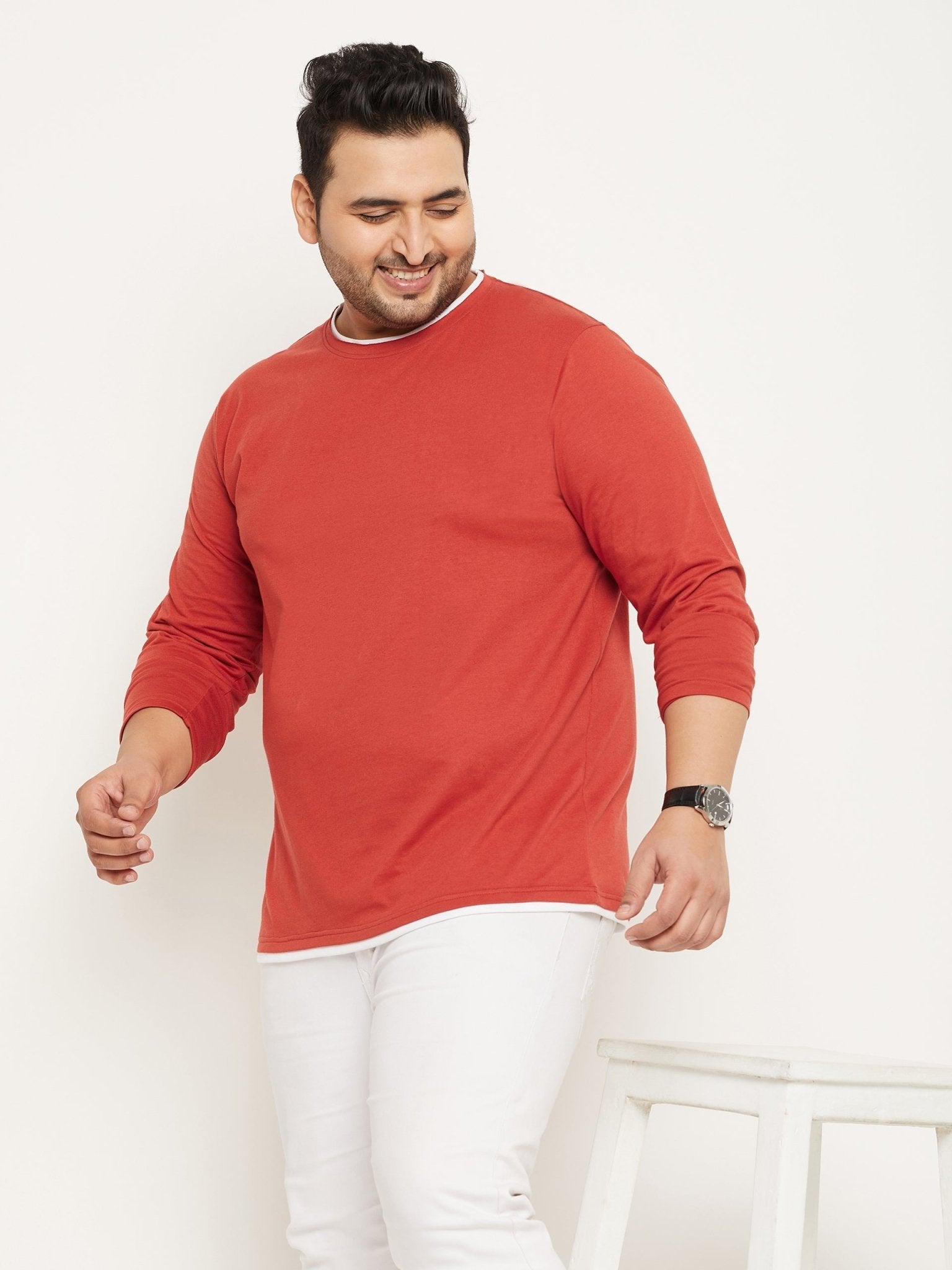 Wine Solid V Neck Plus Size T-Shirt 8807