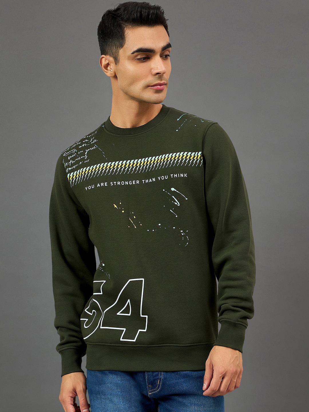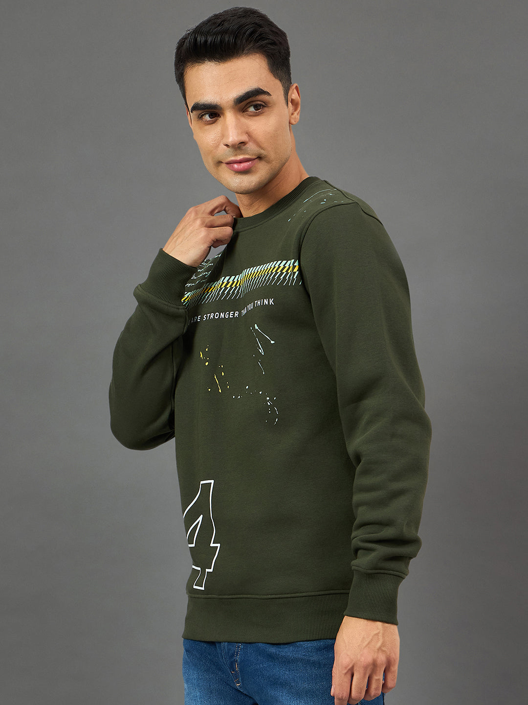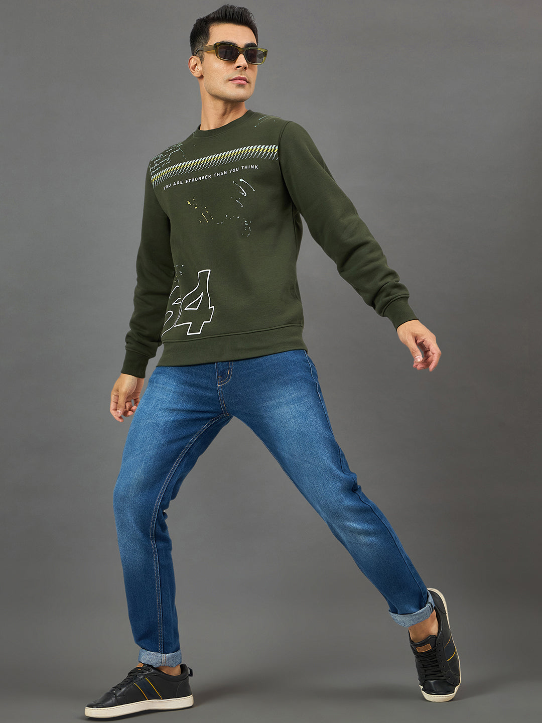 Olive Green Printed Full Sleeve Round Neck Sweatshirt 3240