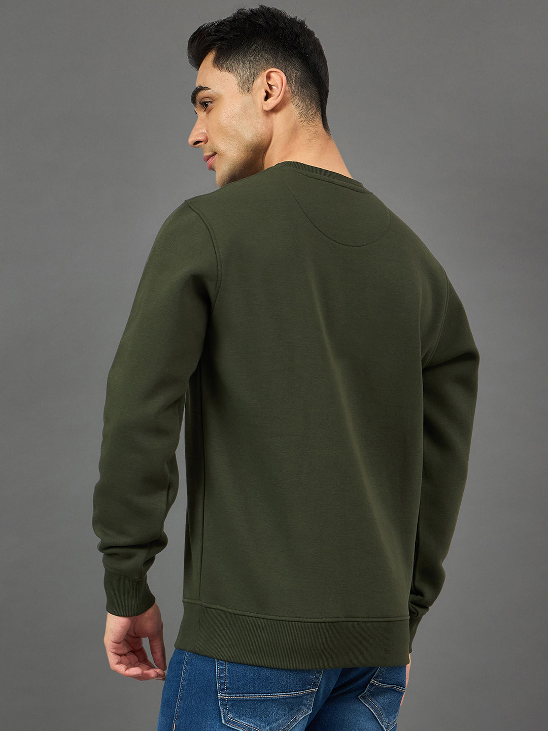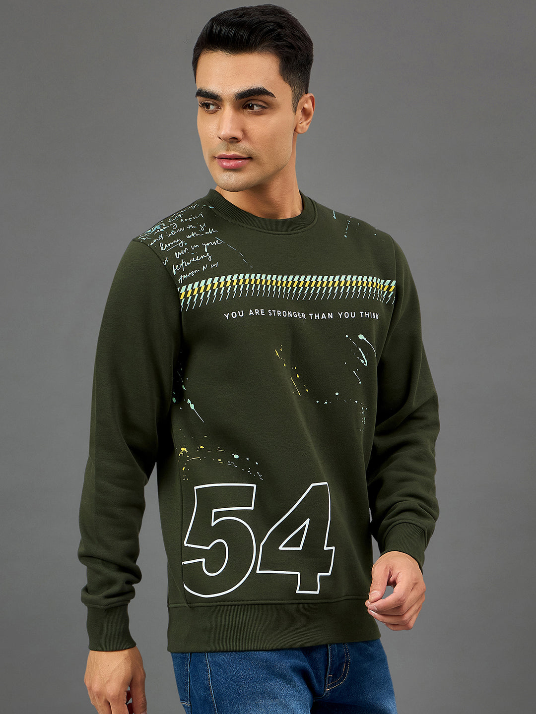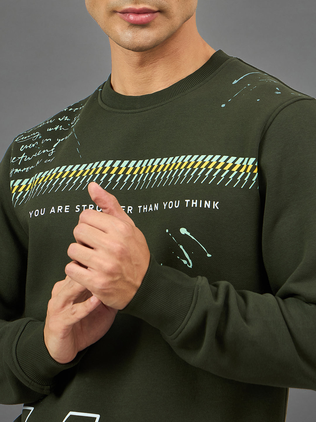 Olive Green Printed Full Sleeve Round Neck Sweatshirt 3240