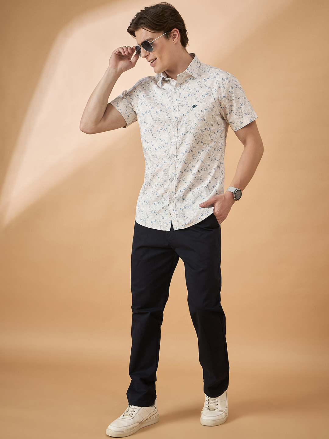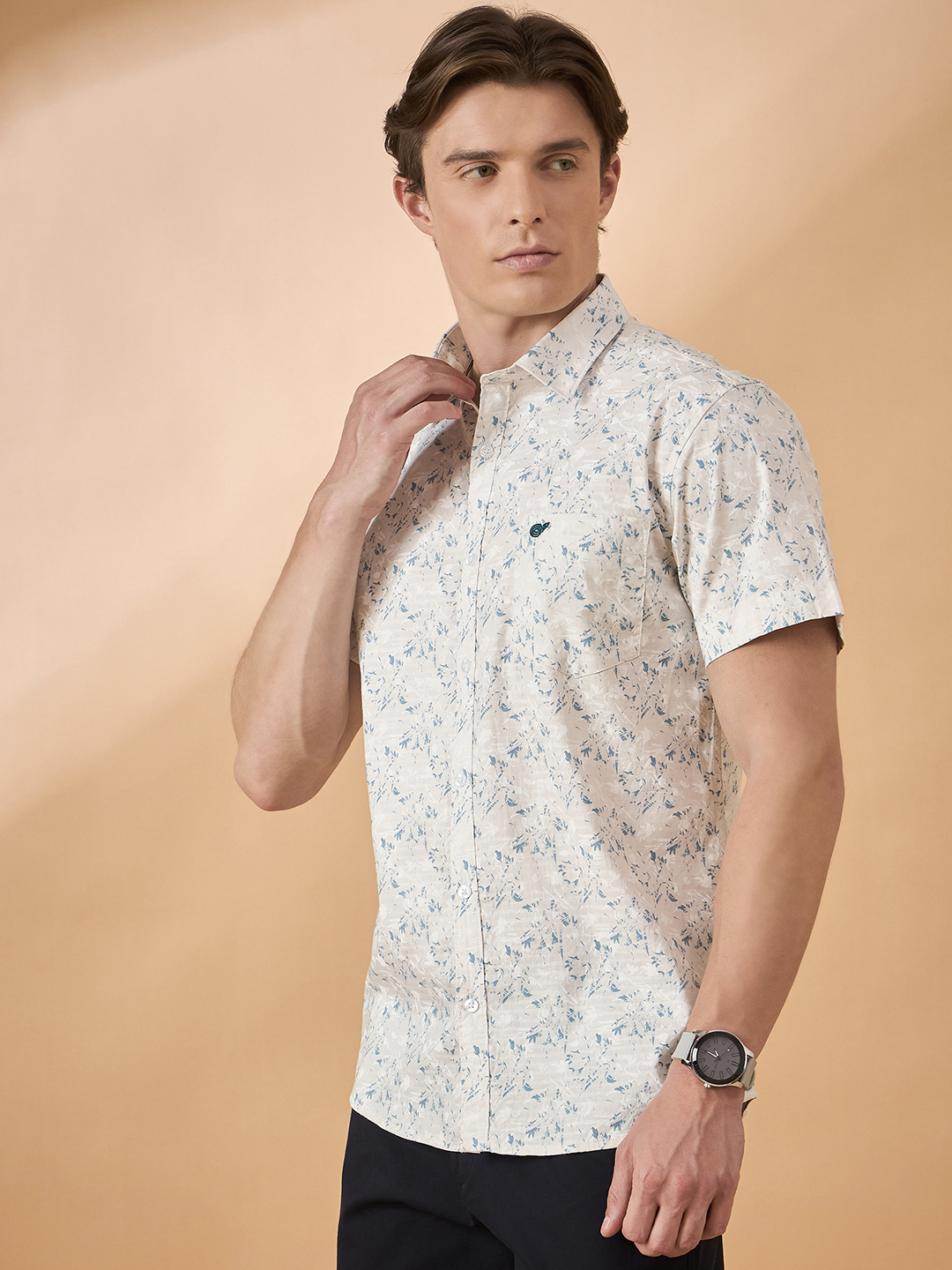 Stylish Striped Off White Greenish Half Sleeve Shirt