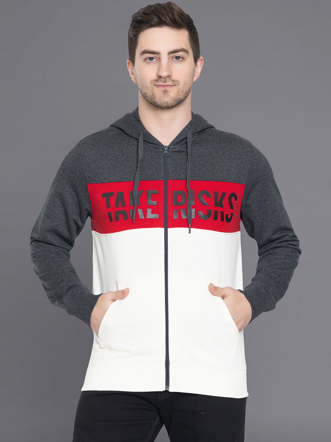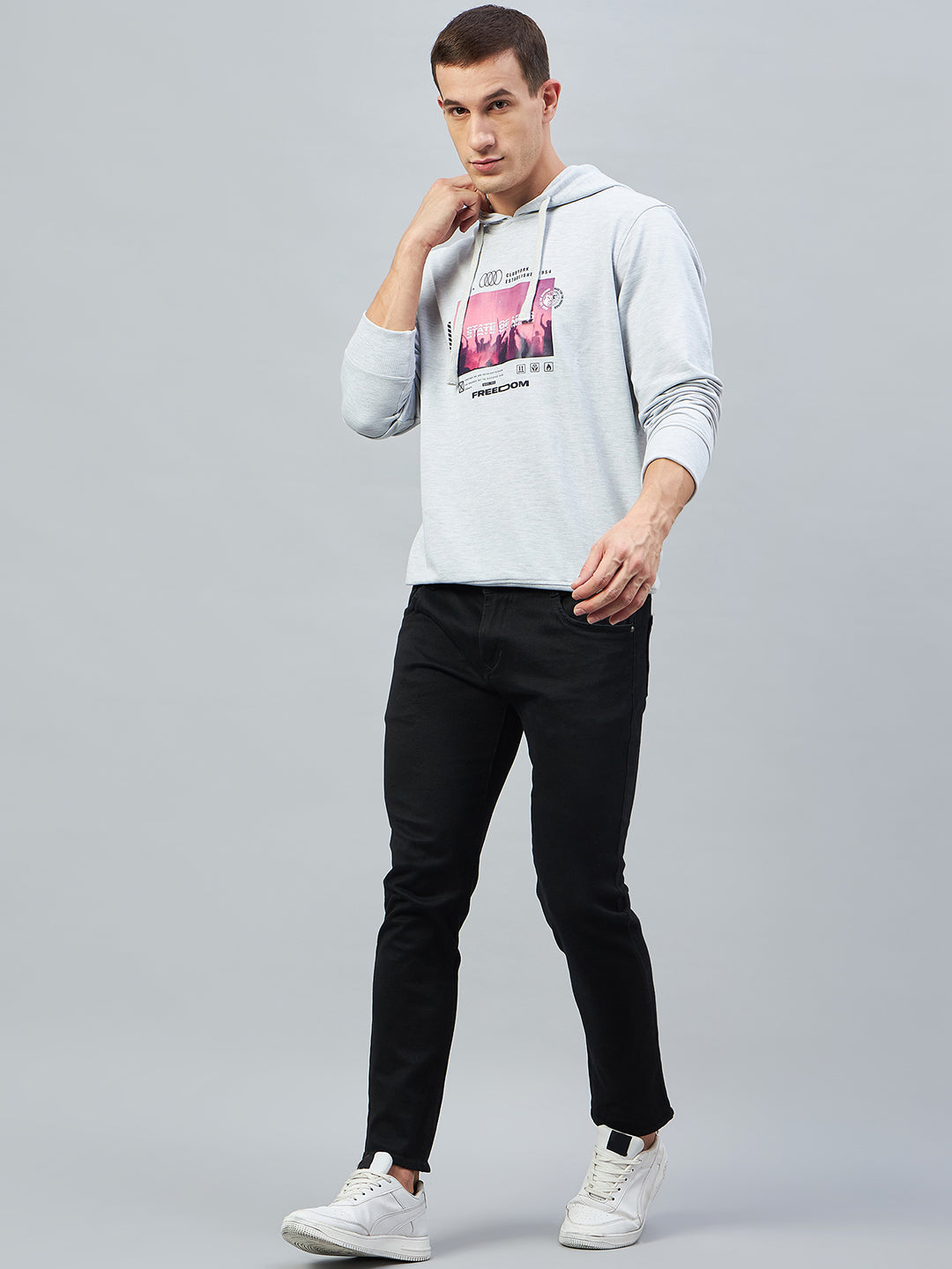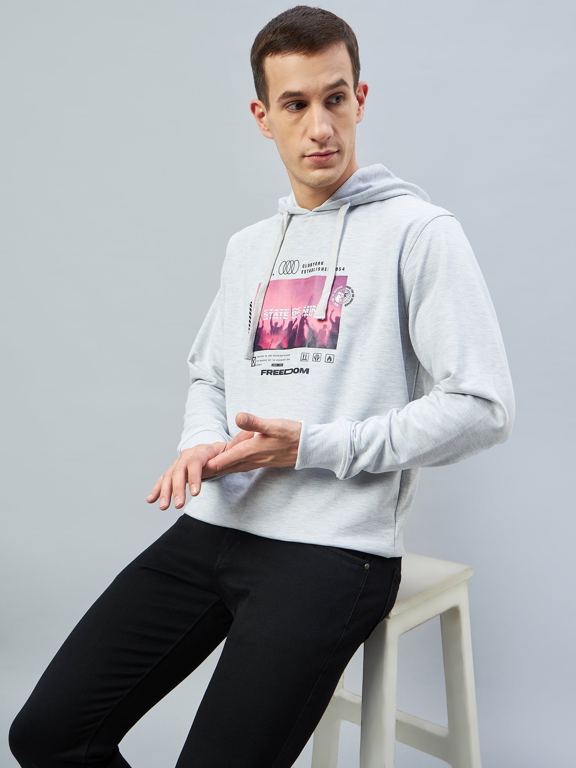 Ecru Melange Printed Full Sleeve Hooded Sweatshirt 6296