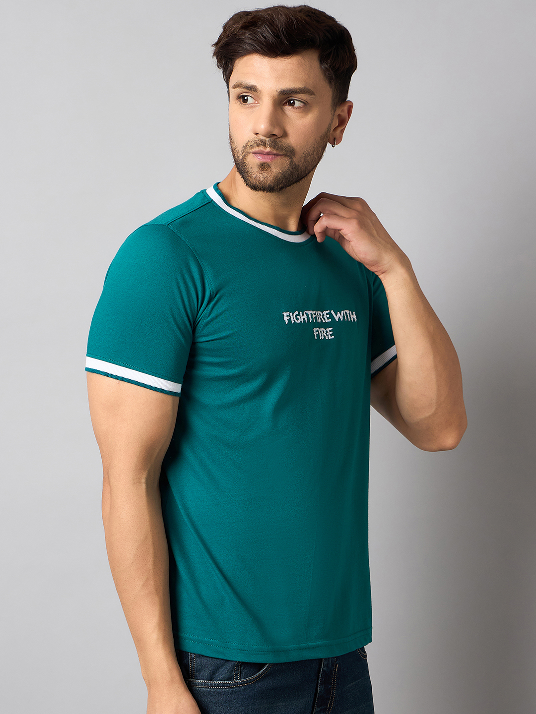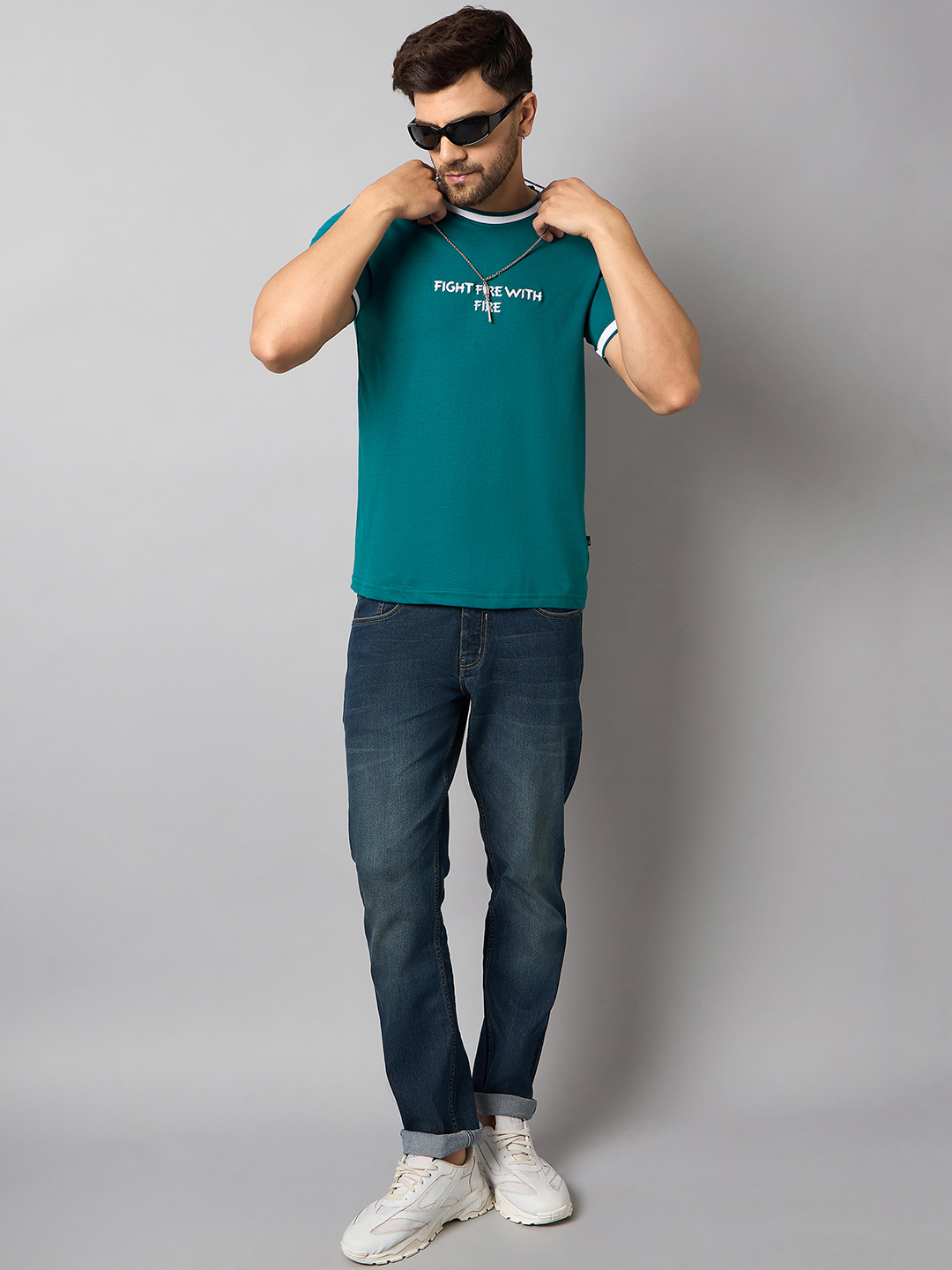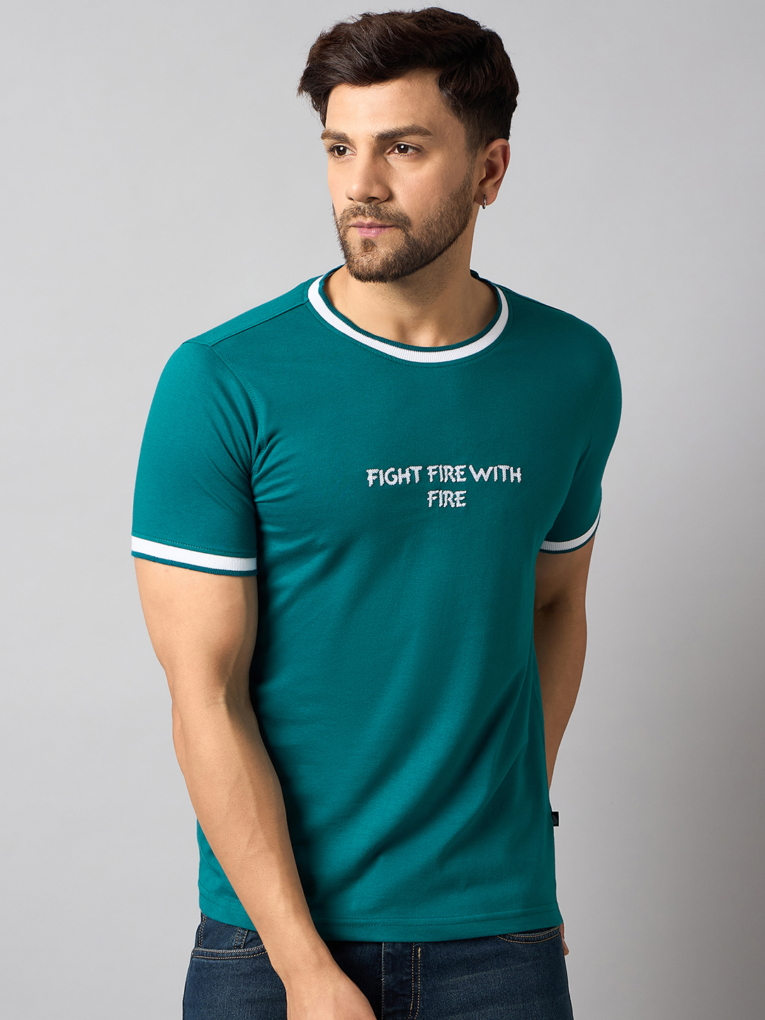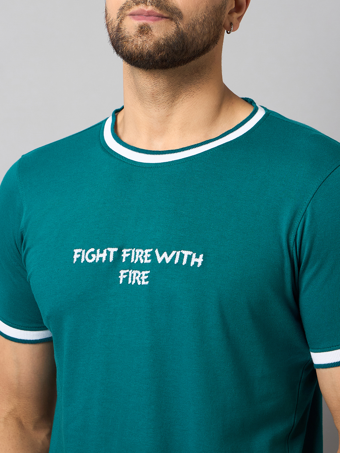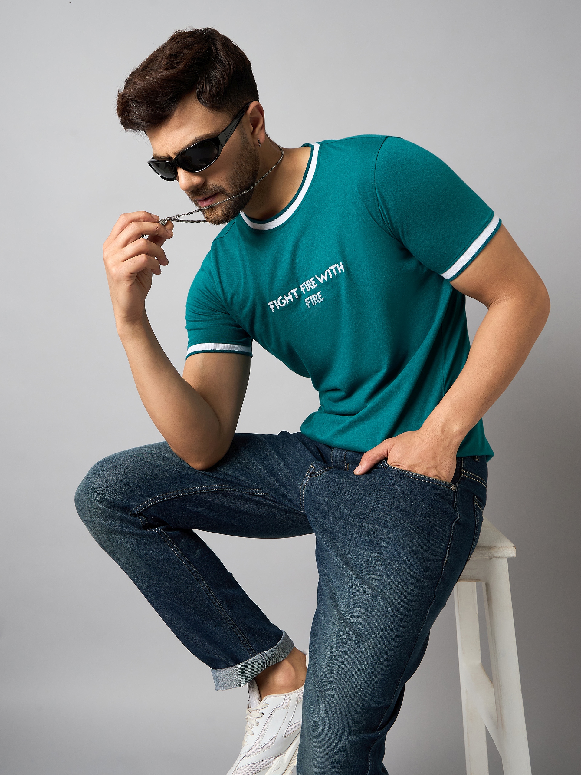 Olive Green Printed Round Neck Plus Size T-Shirt 6241