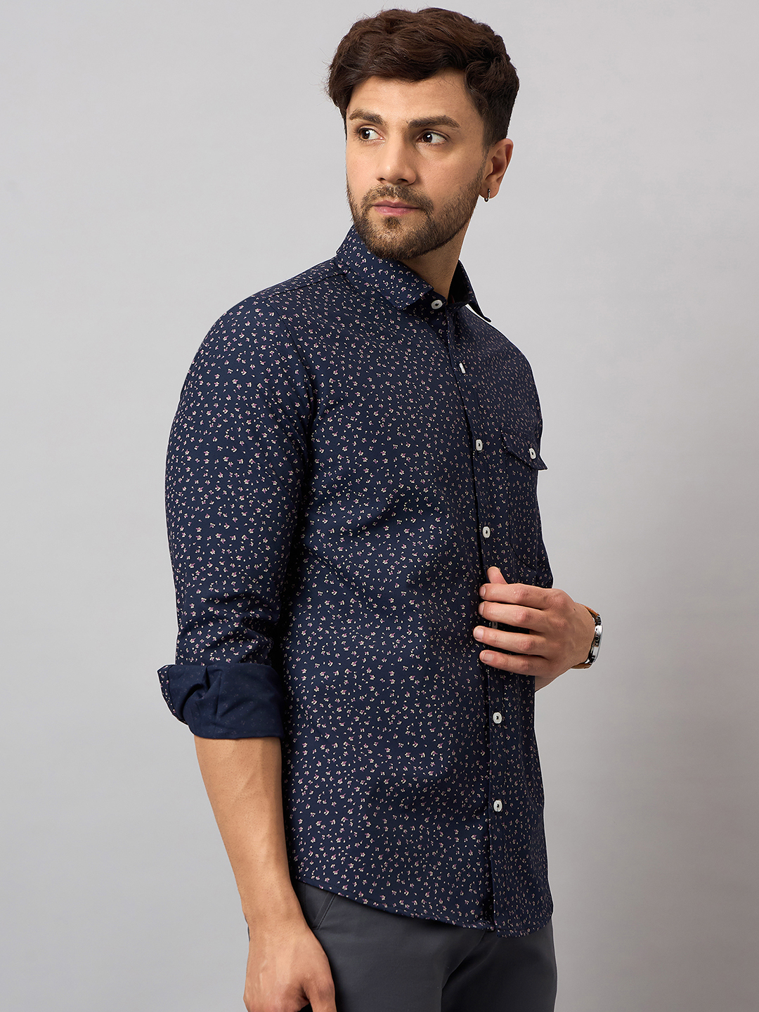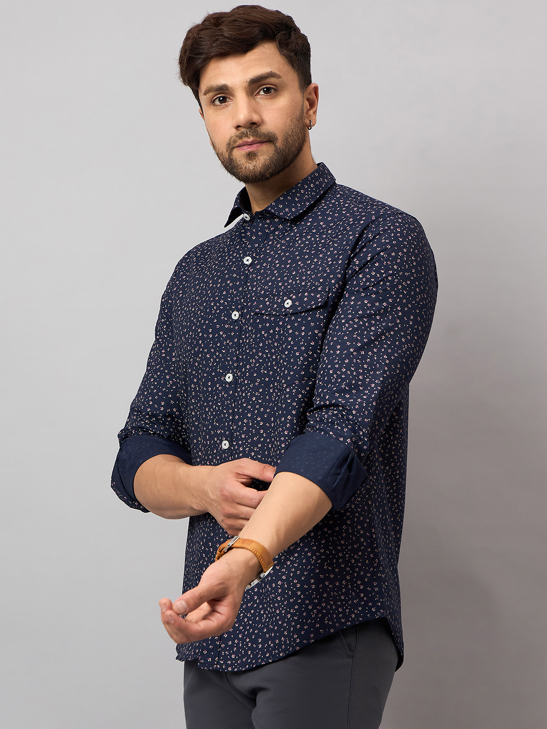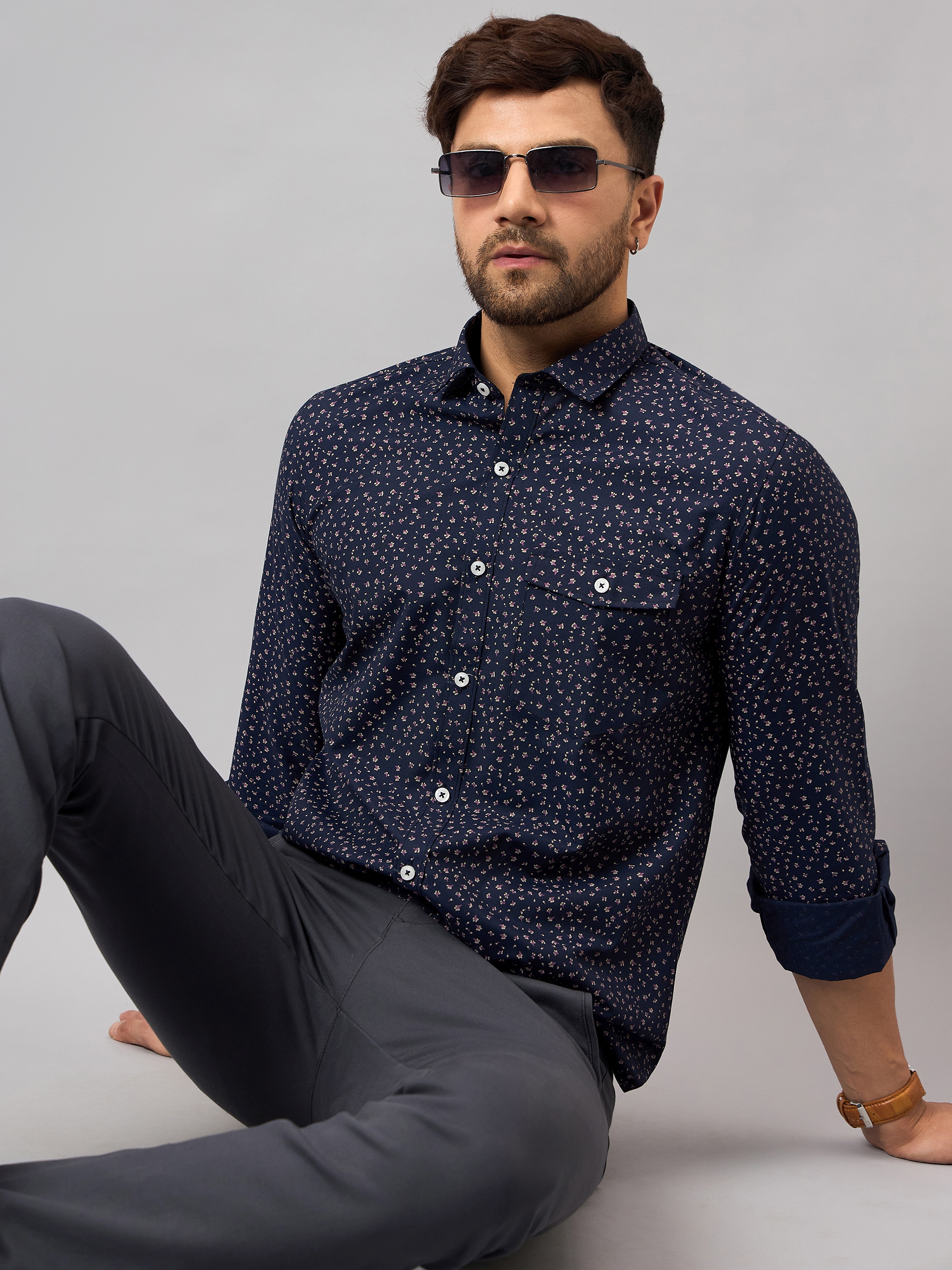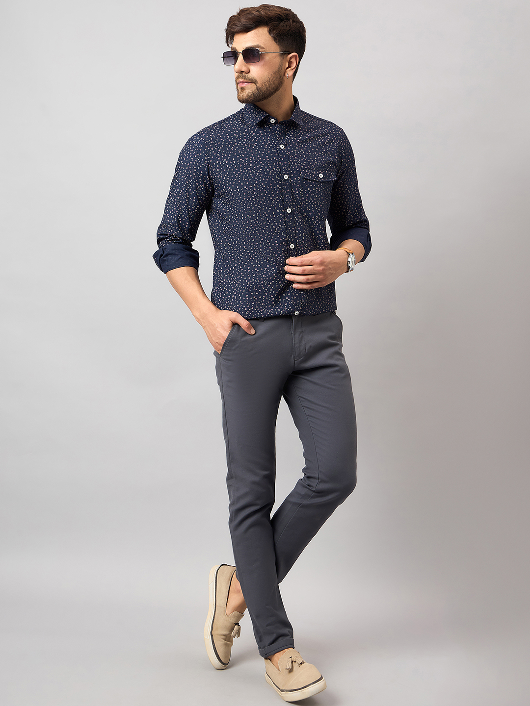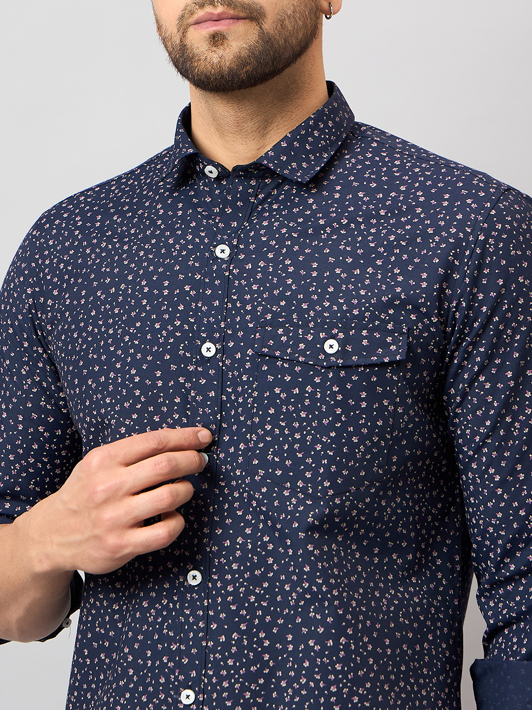 Men Slim Fit Vertical Striped Spread Collar Casual Shirt