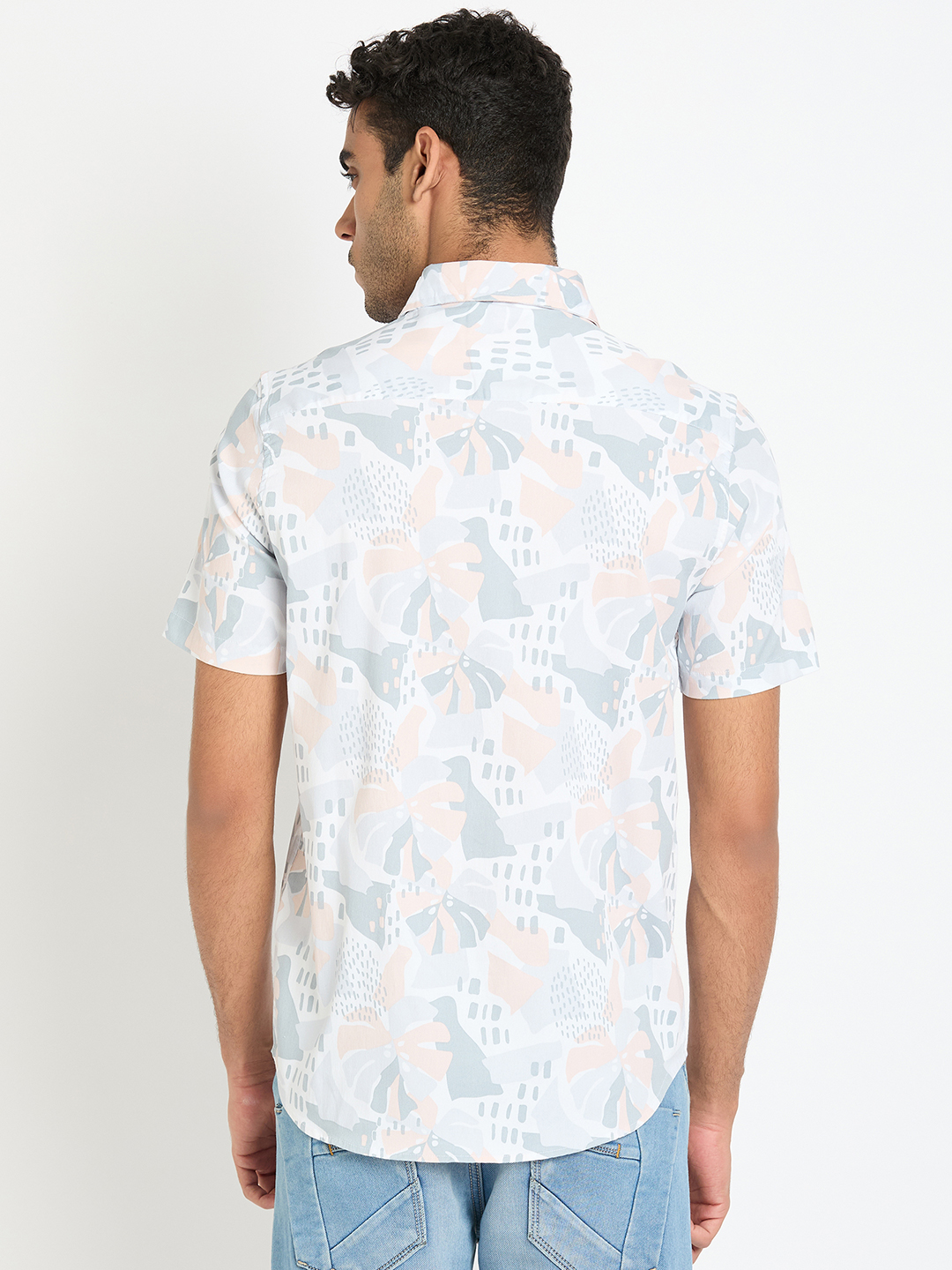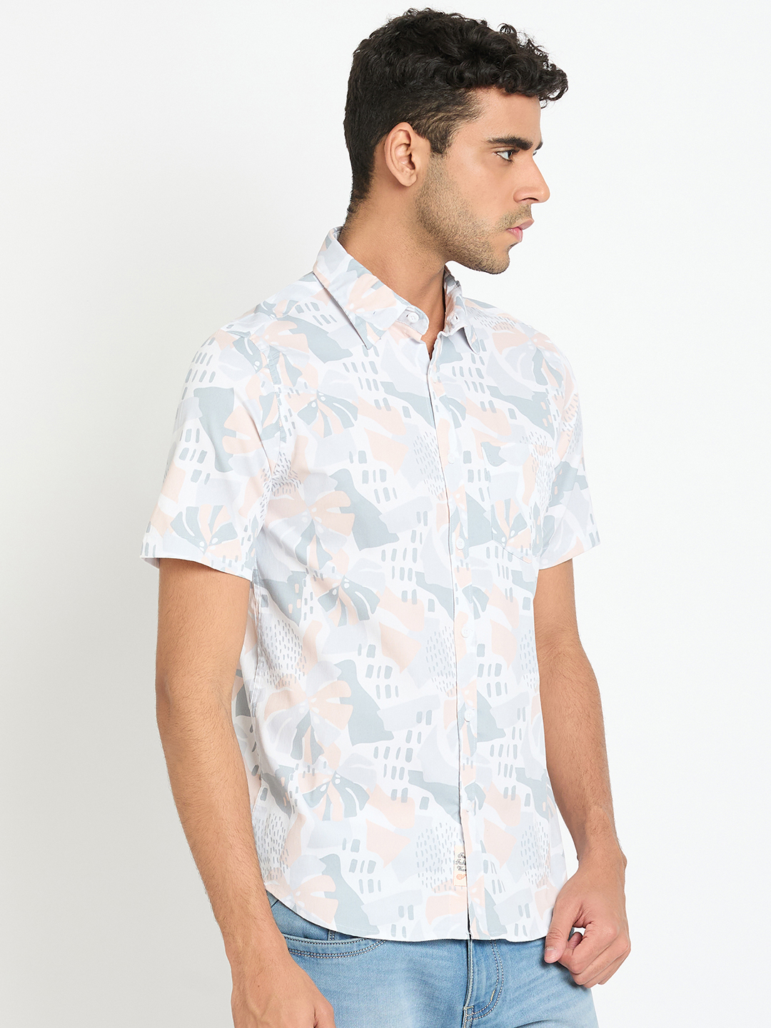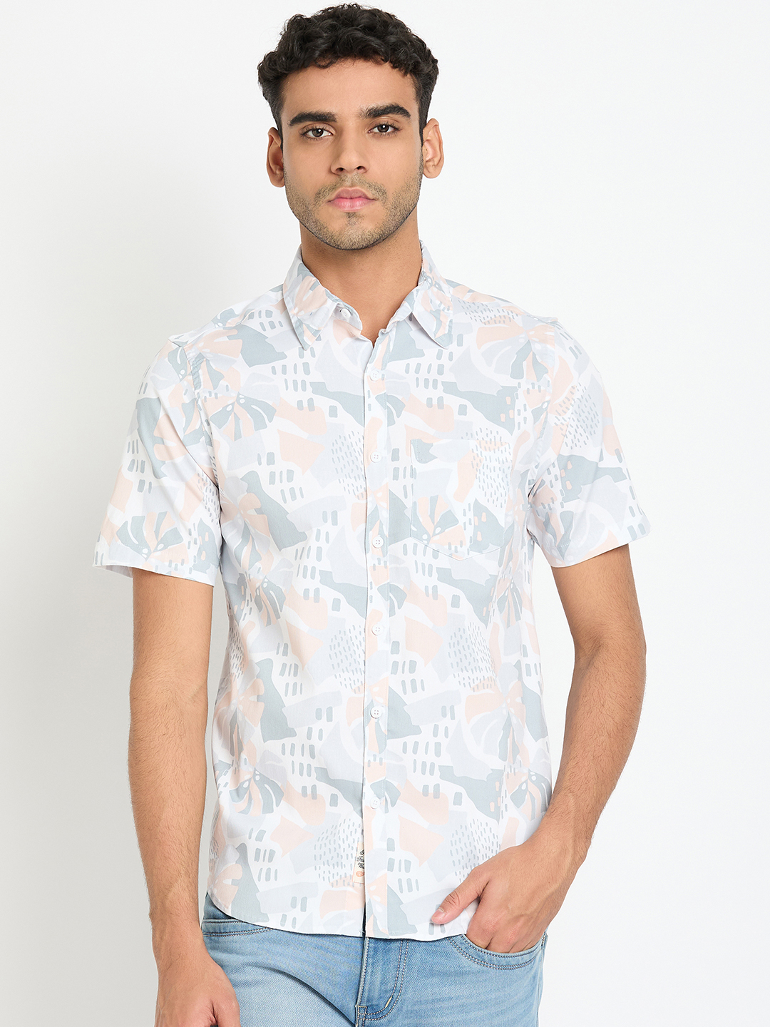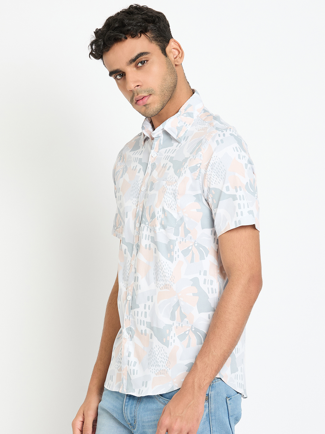 Floral Printed Light Peach Half Sleeves Shirt 1129