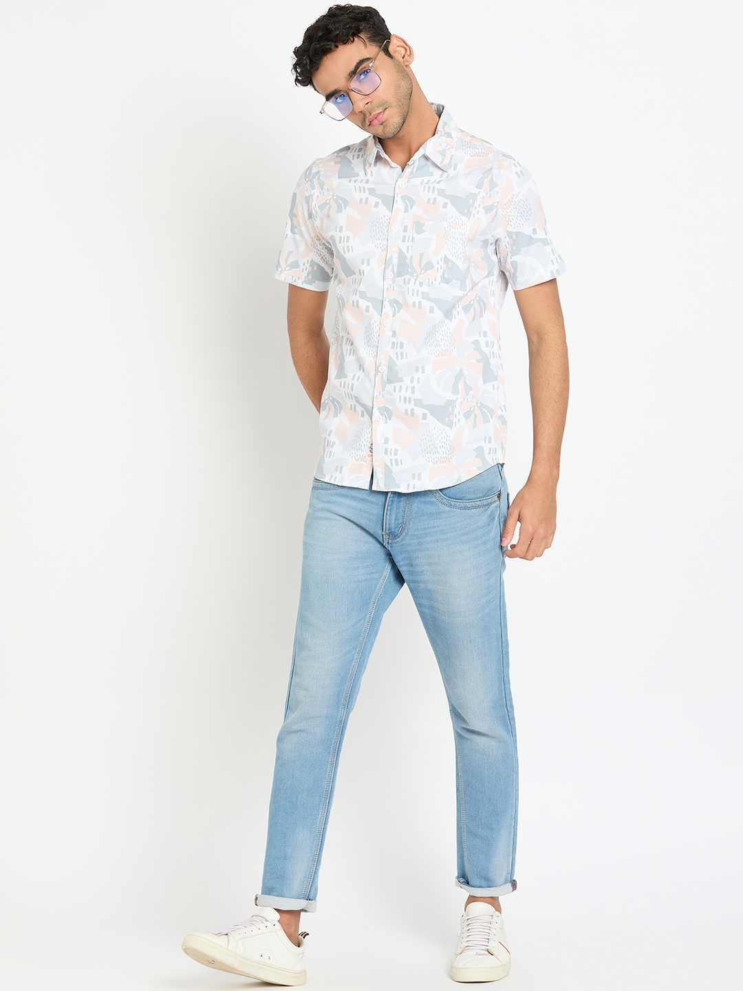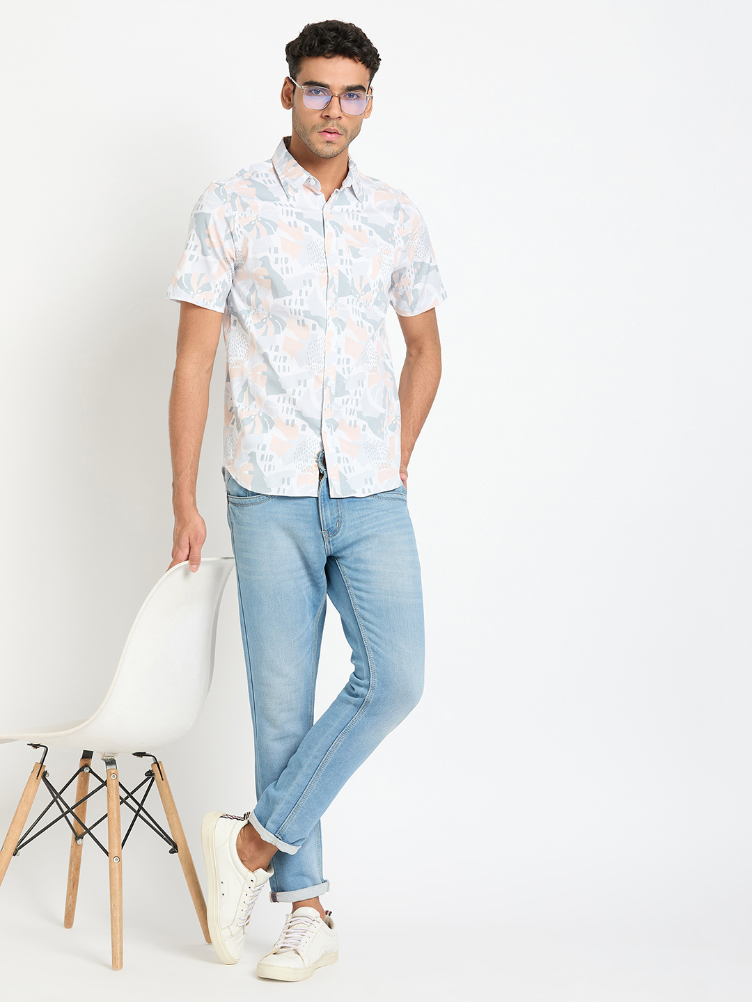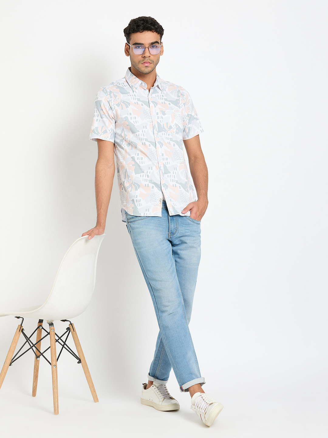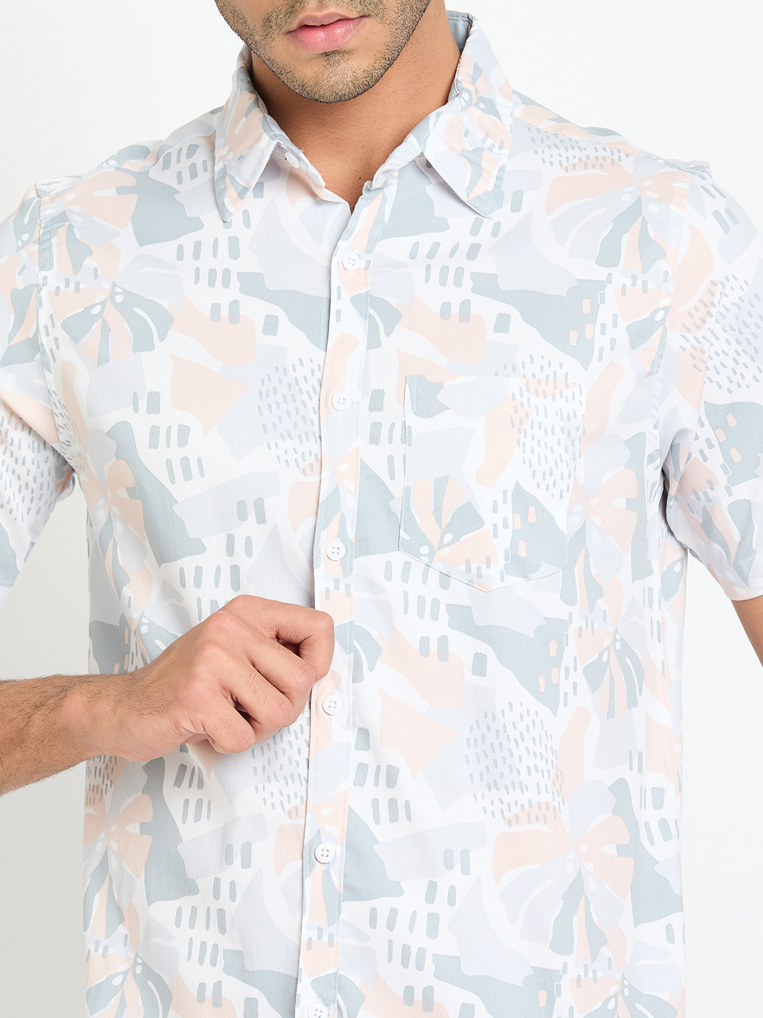 Floral Printed Light Peach Half Sleeves Shirt 1129