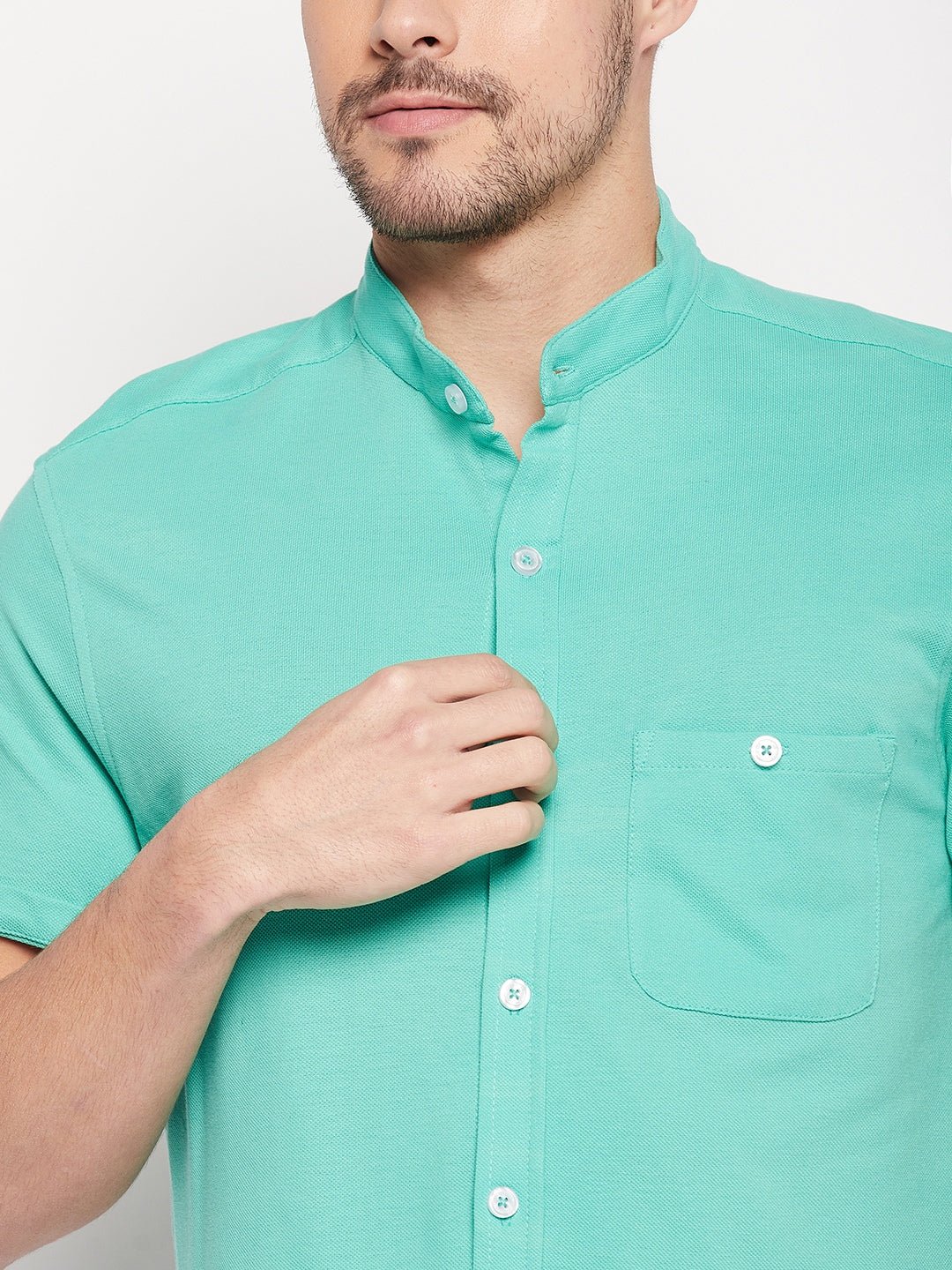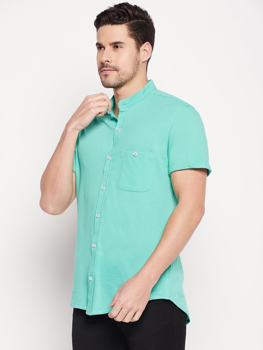 Lemon Yellow Solid Mandarin Collar Plus Size Shirt 2143