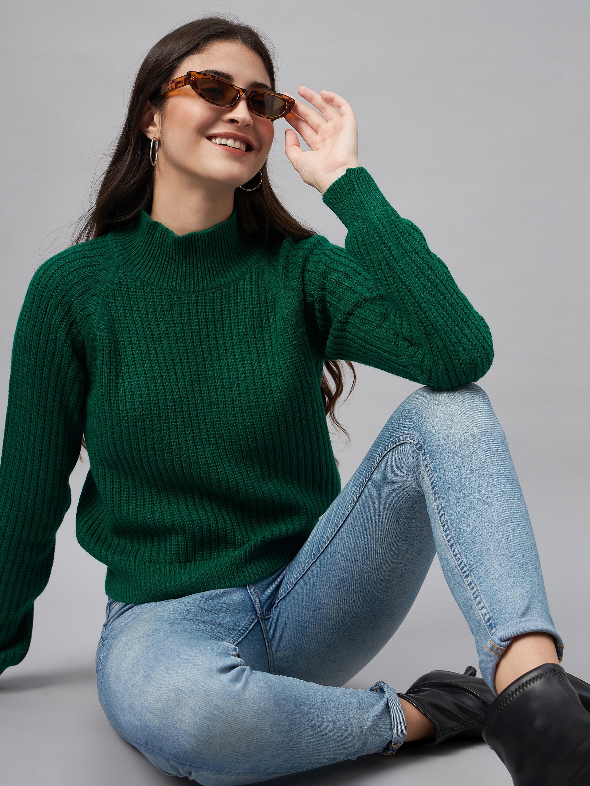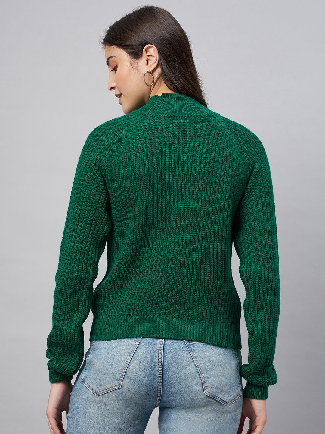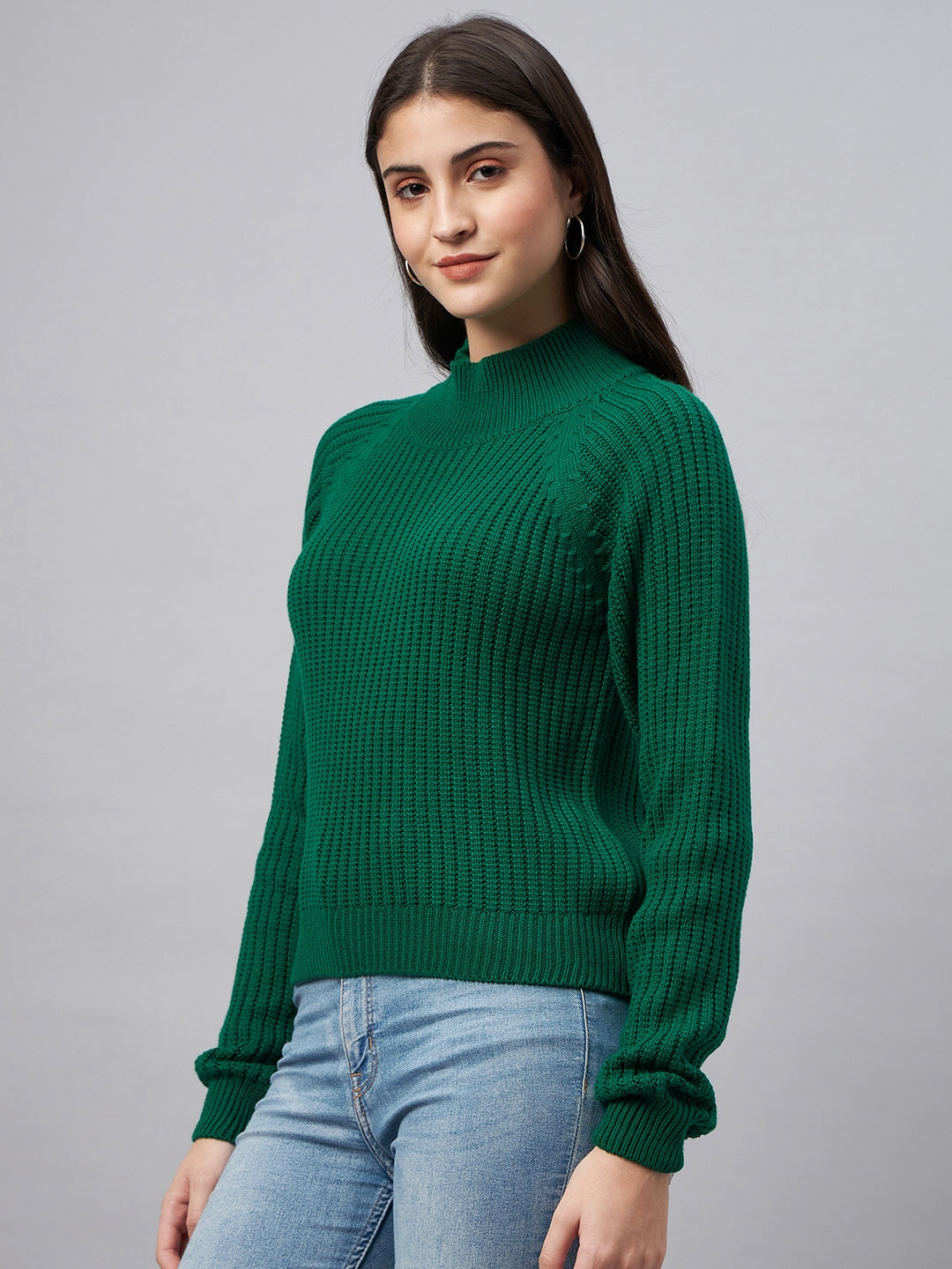 Ecru Melange High Neck Colorblocked Sweater 9647