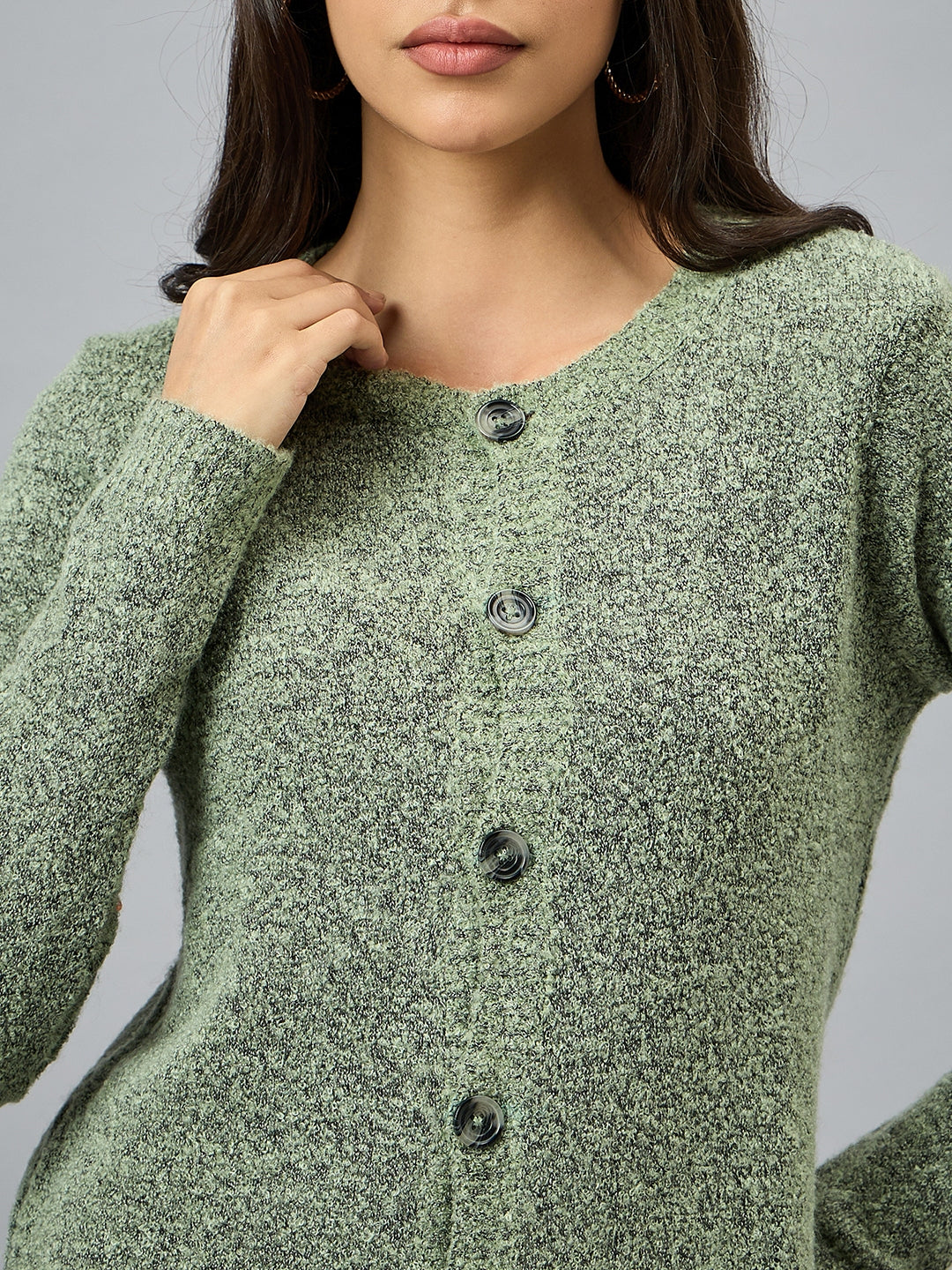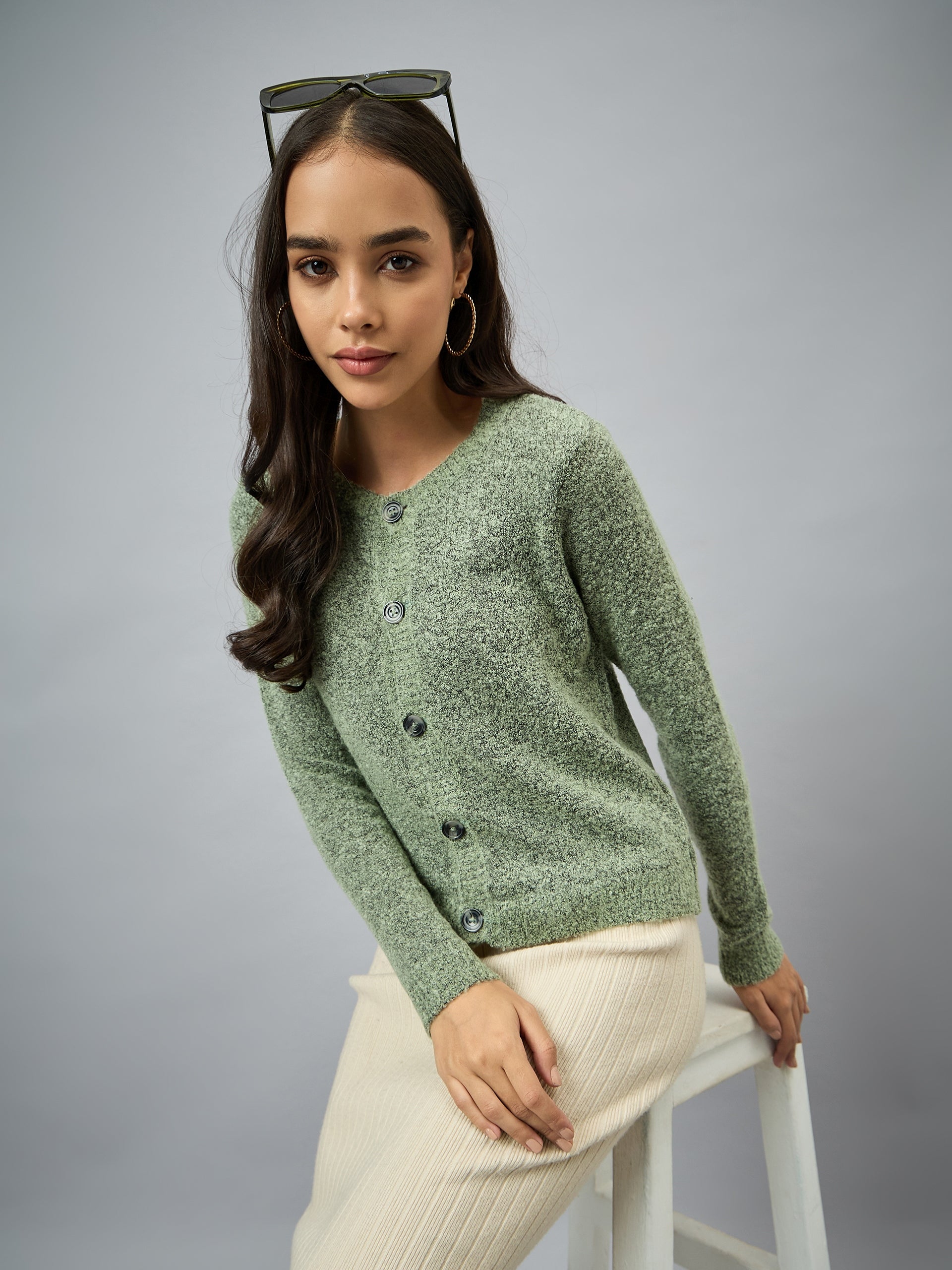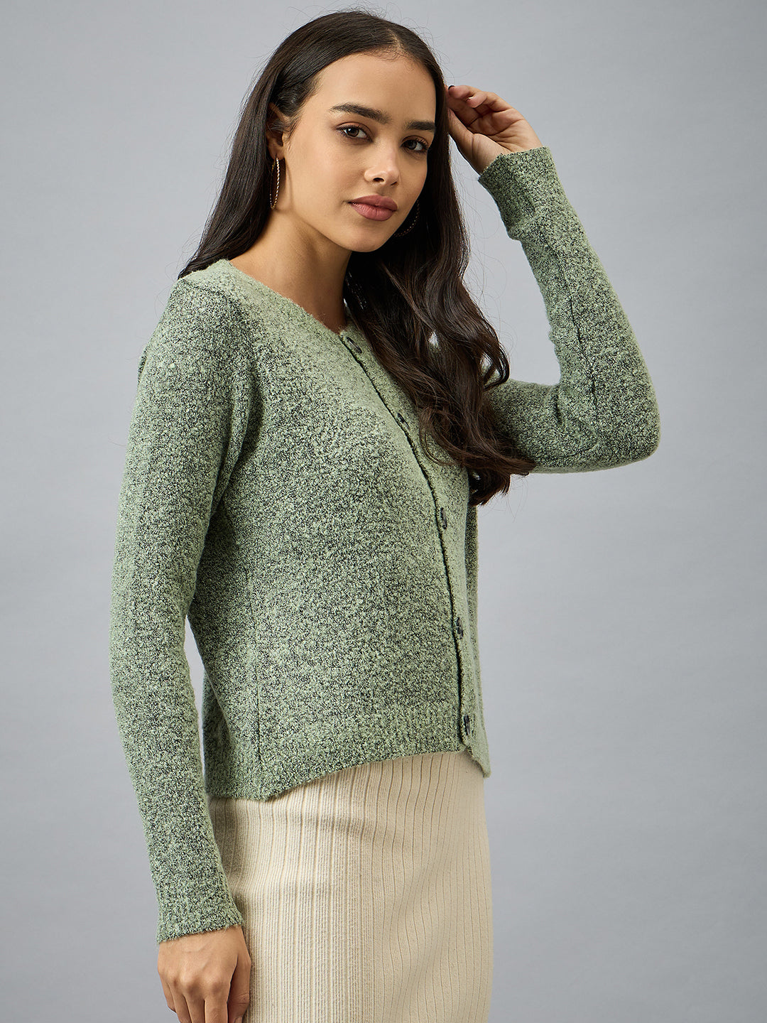 Pink Solid V-Neck Cardigan With Front Pocket 6056
