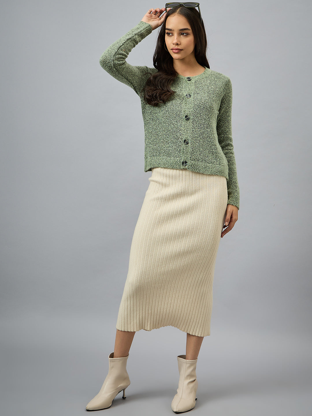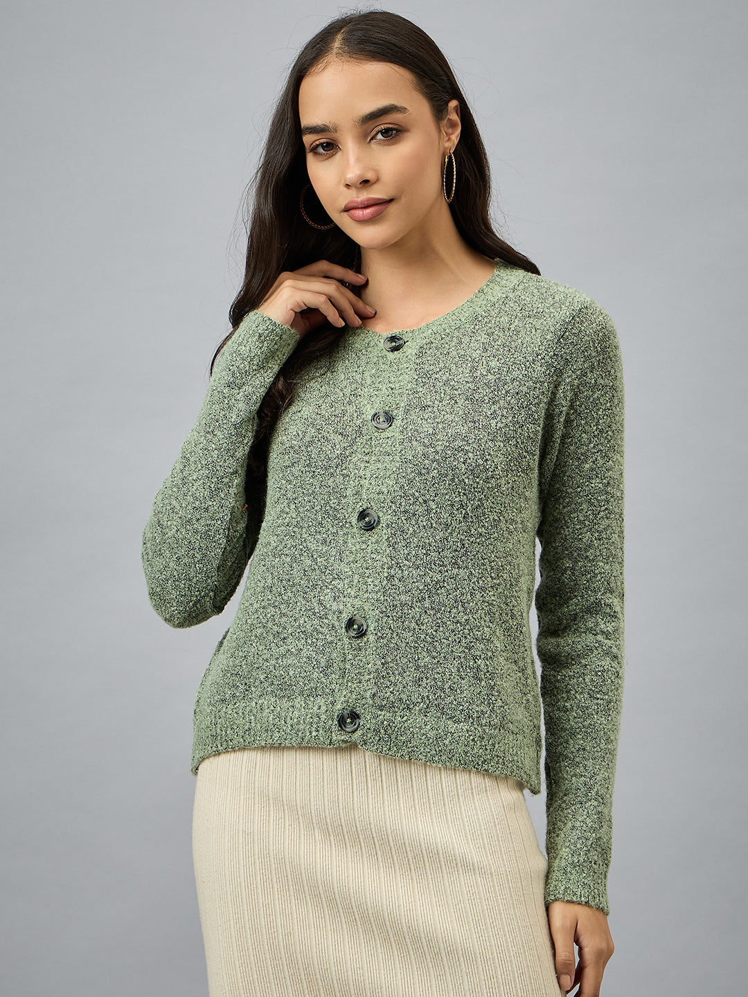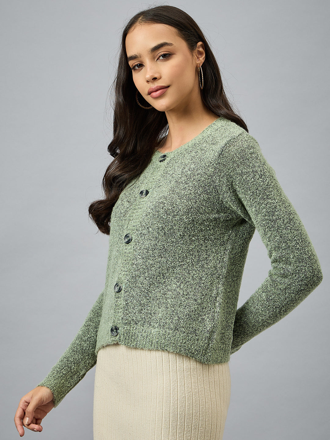Pink Solid V-Neck Cardigan With Front Pocket 6056