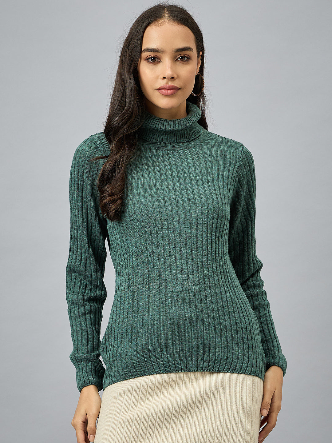 Teal Striped High Neck Sweater 3867