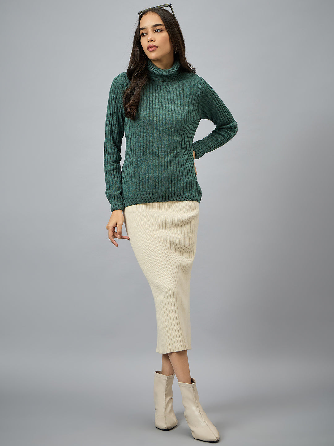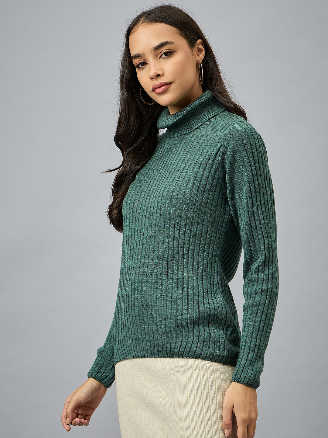 Green Solid Sweater Cycw692 1424