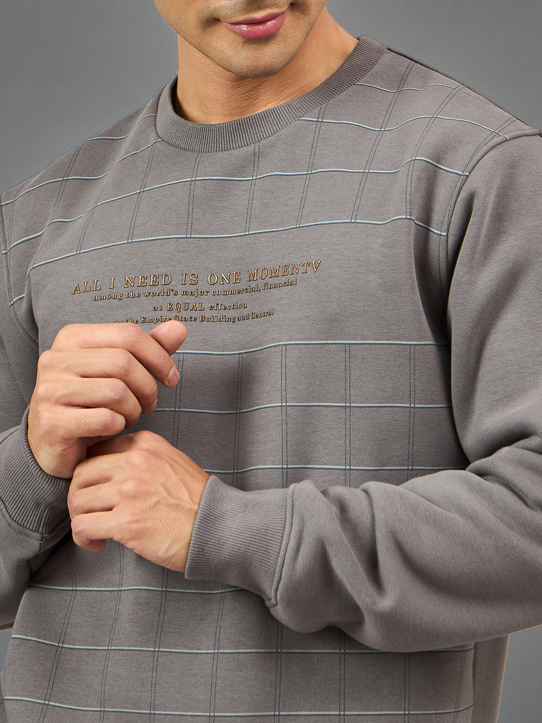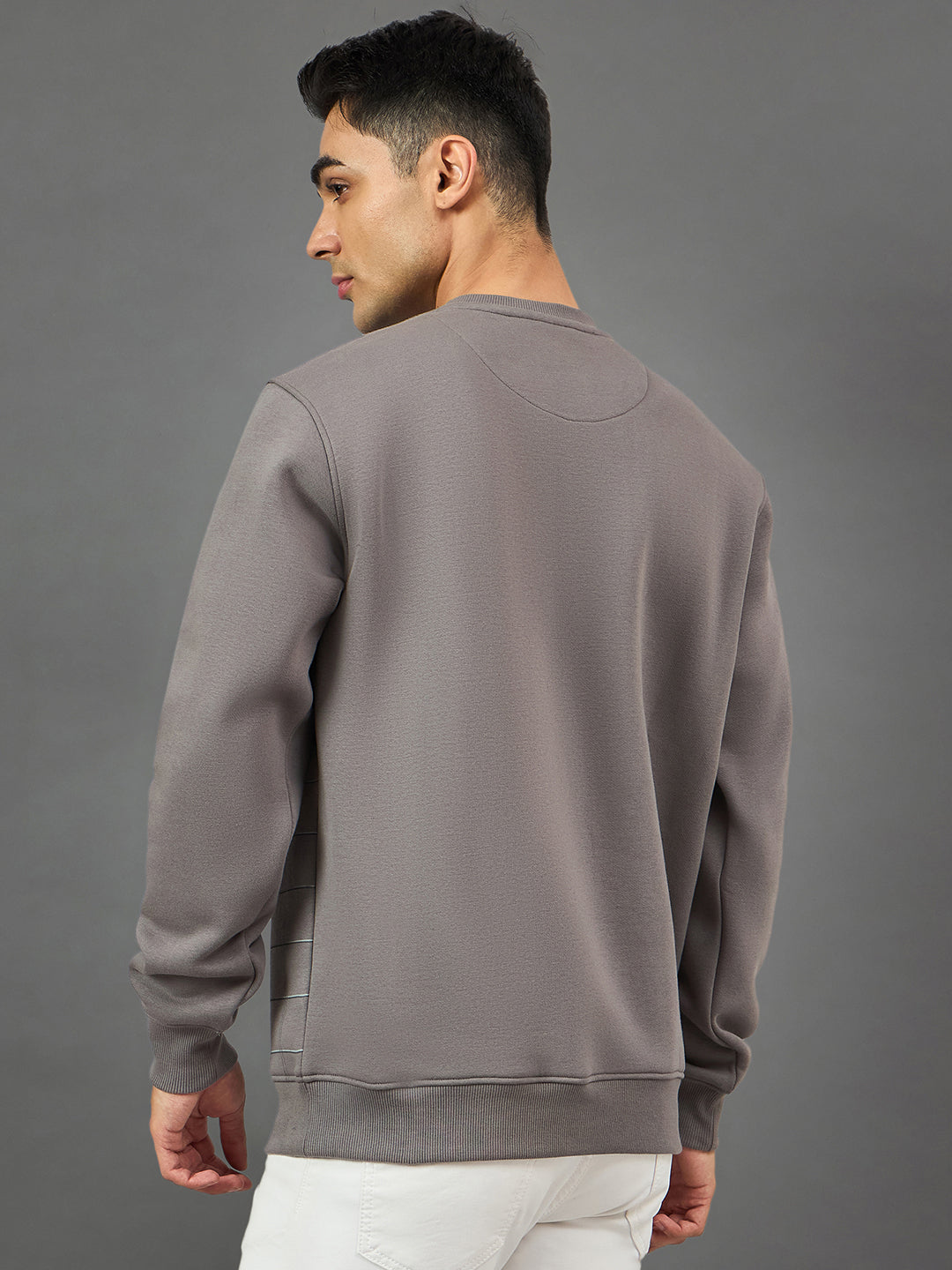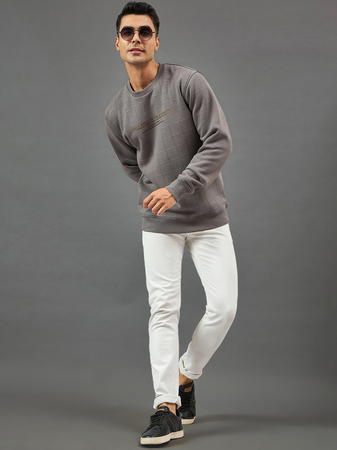 Light Grey Printed Full Sleeve Round Neck Sweatshirt 7453