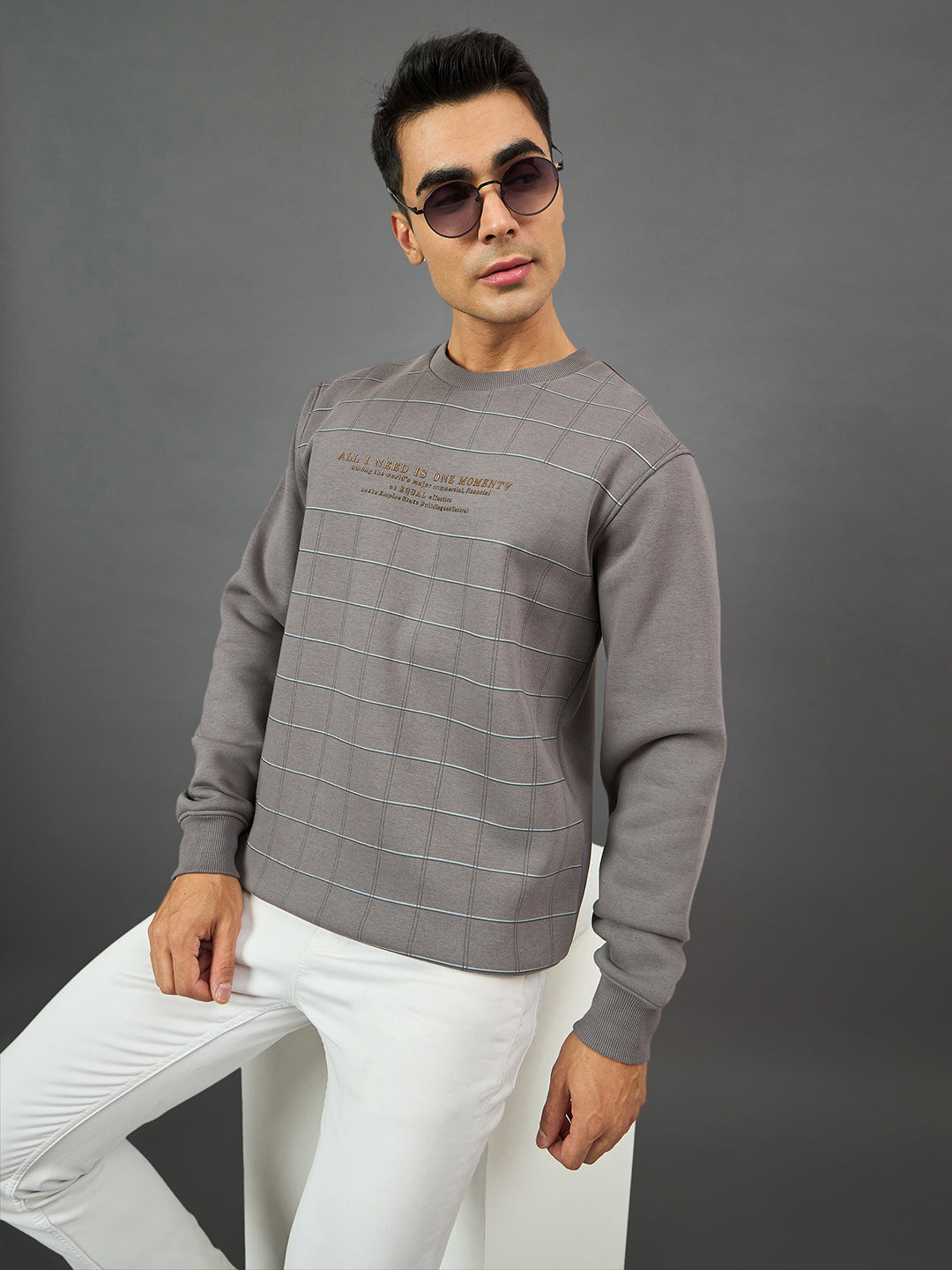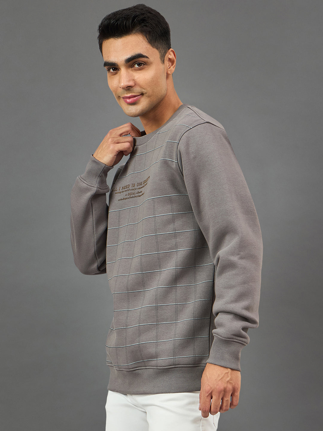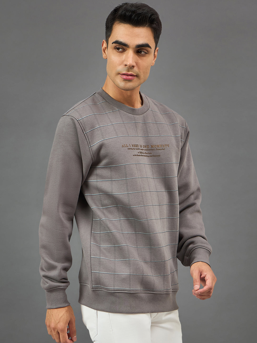 Light Grey Printed Full Sleeve Round Neck Sweatshirt 7453