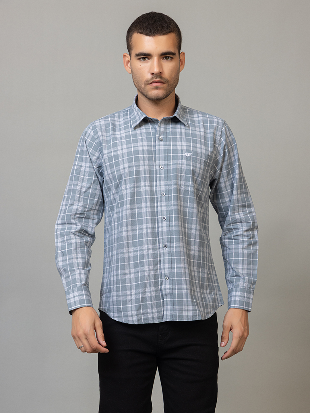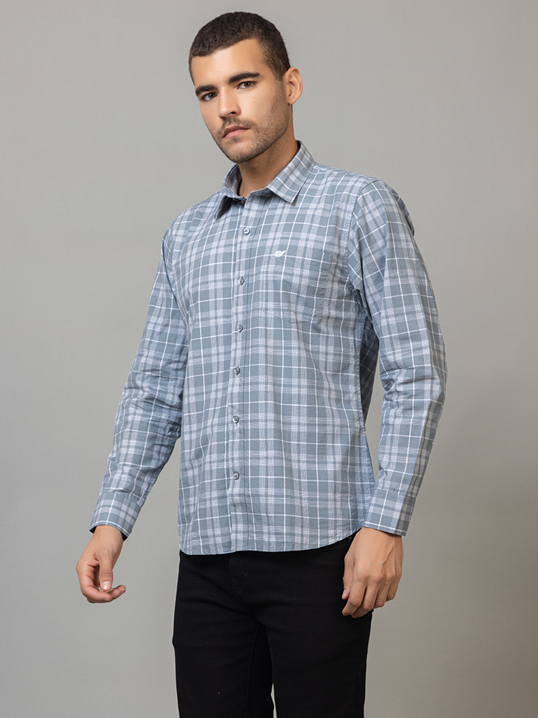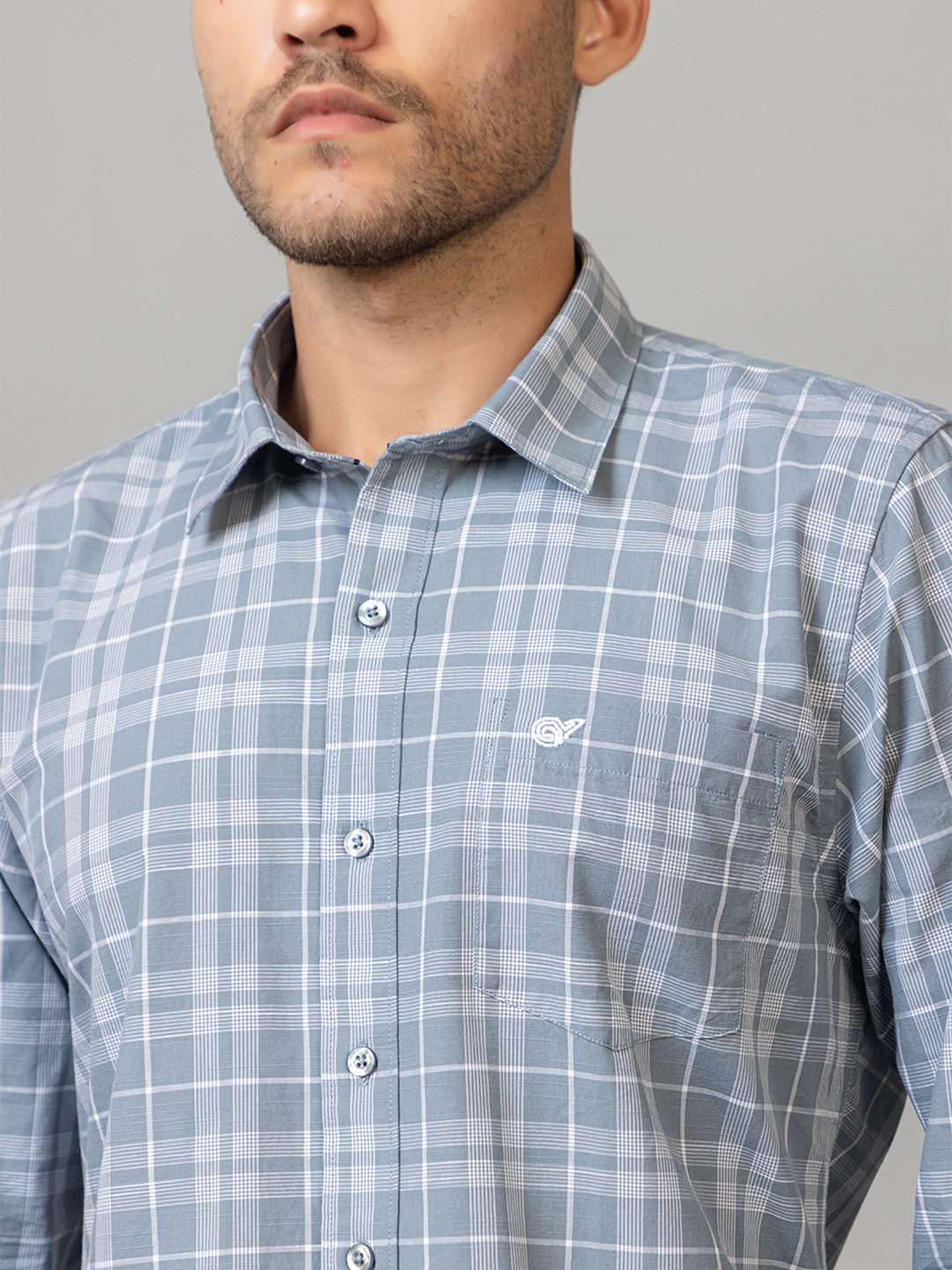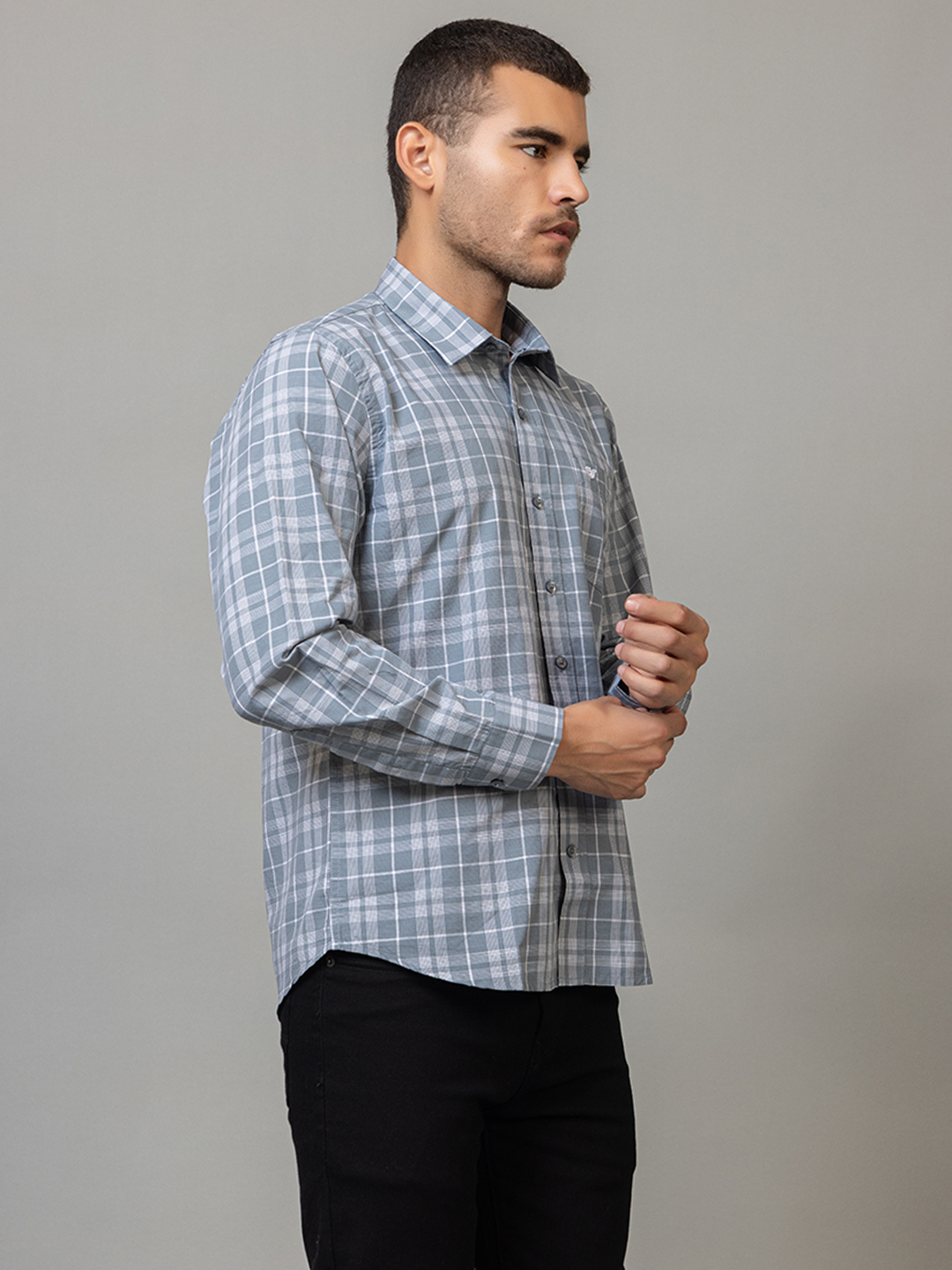 Men Slim Fit Vertical Striped Sky Blue Spread Collar Casual Shirt