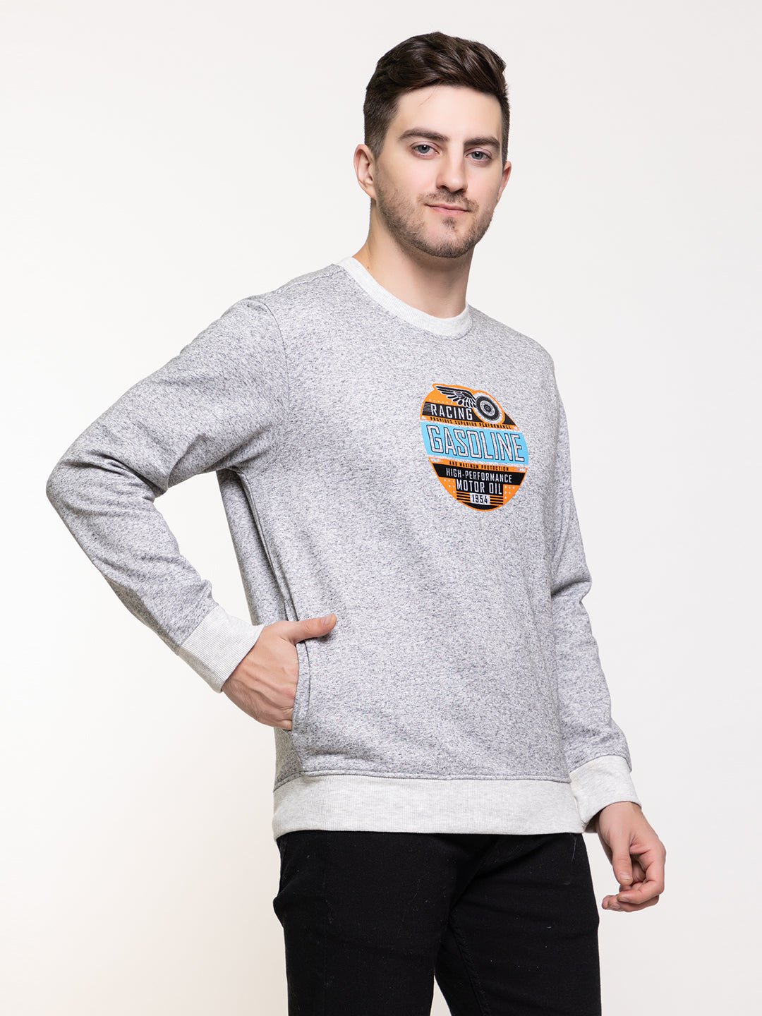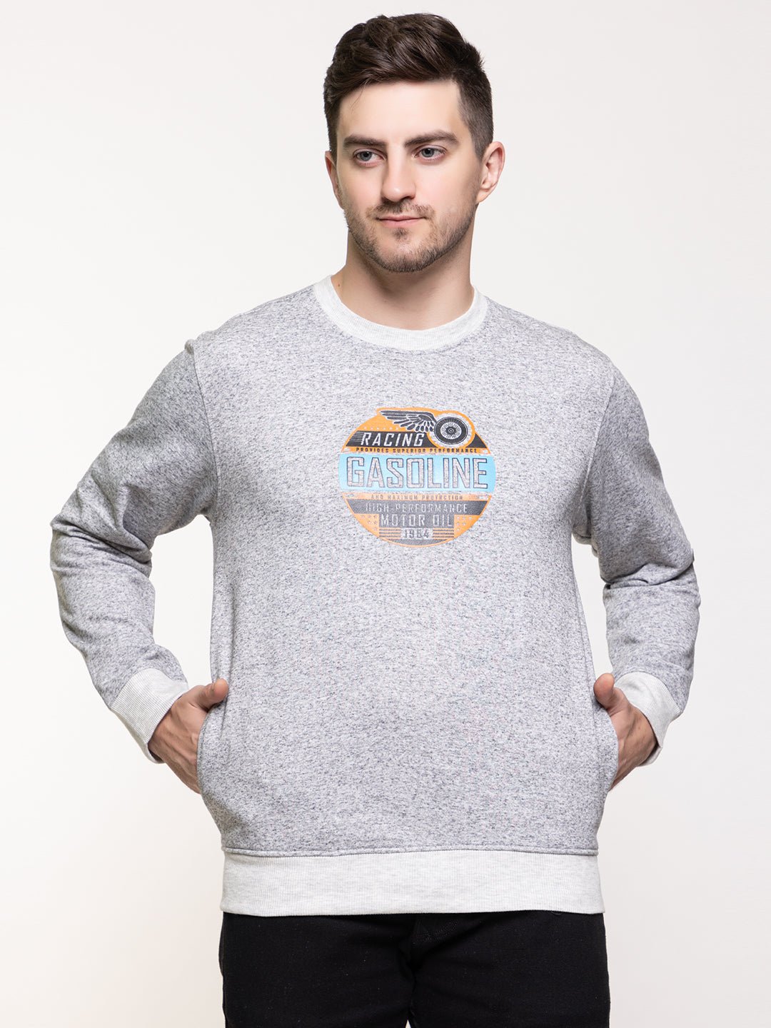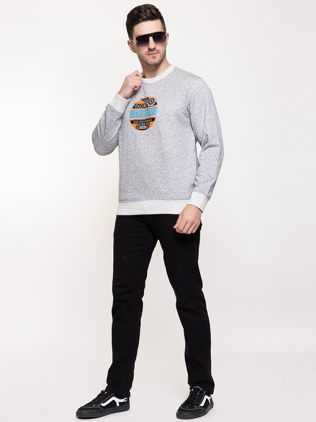 Grey Full Sleeve Fleece Printed Round Neck Sweatshirt Cy531 7896